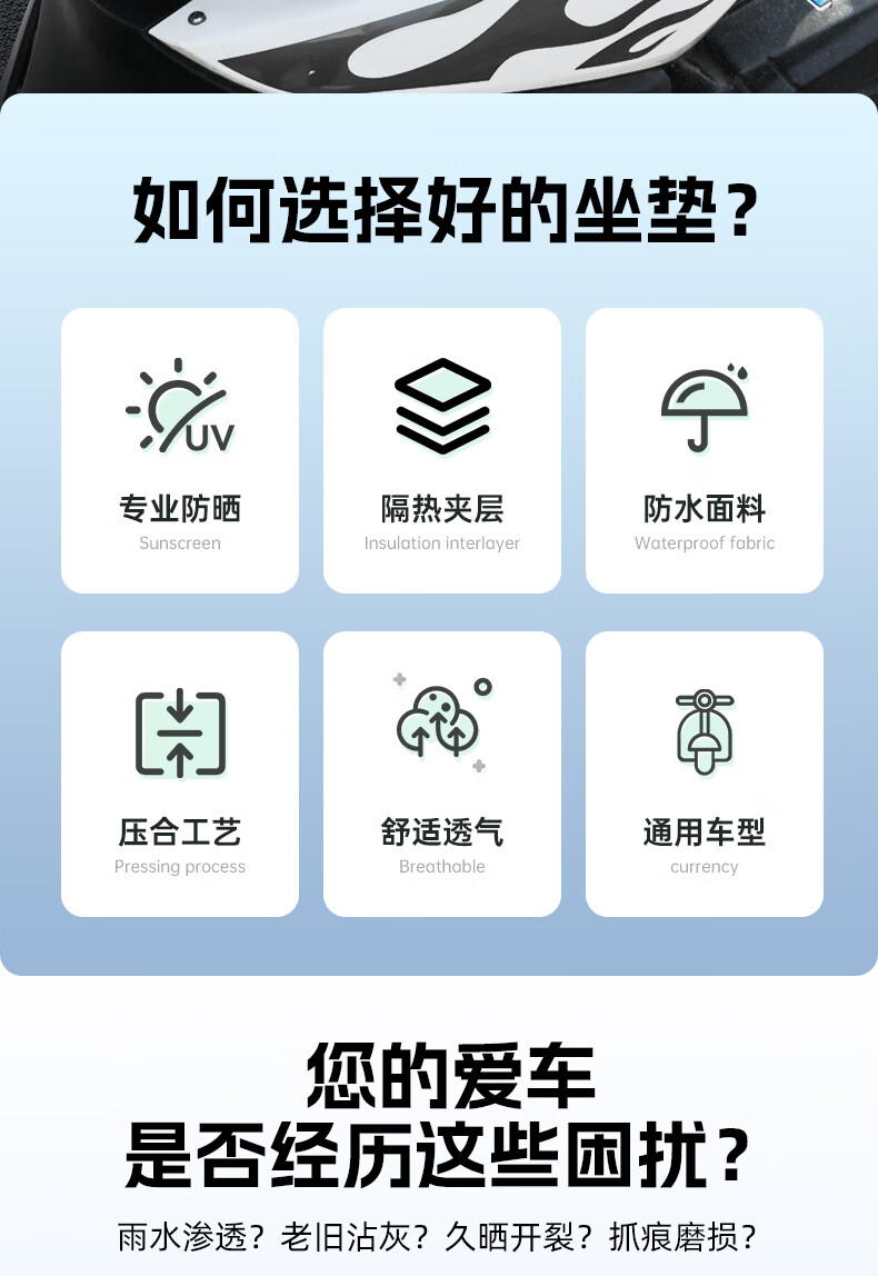 牧安宁电动车坐垫套电瓶座套防水防晒皮革四季通用自行代步踏板车隔热垫