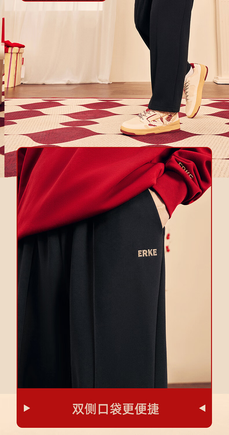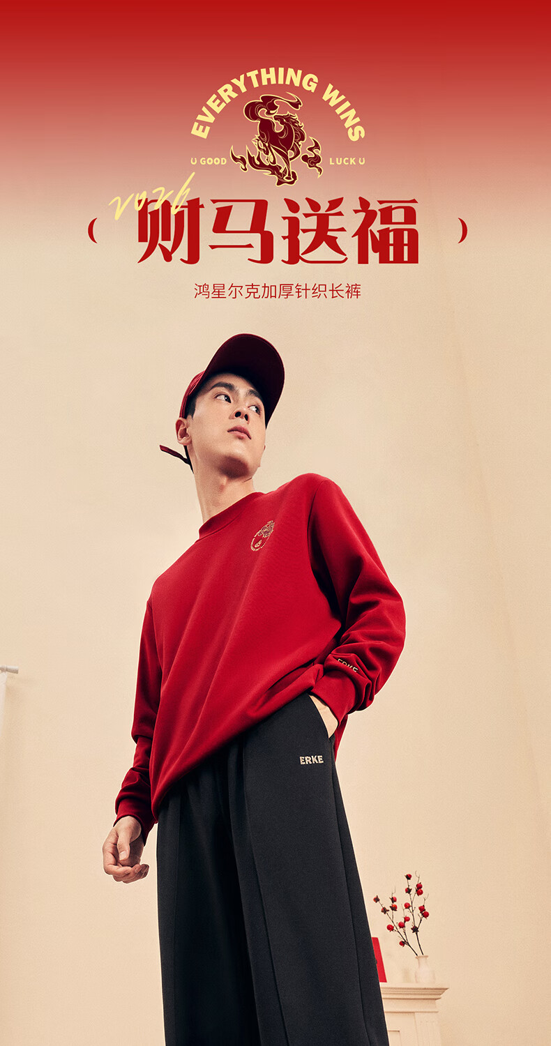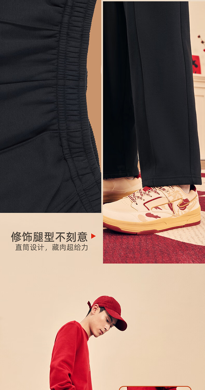 鸿星尔克加绒直筒长裤26年秋冬新品财马送福新年款保暖休闲简约运动裤