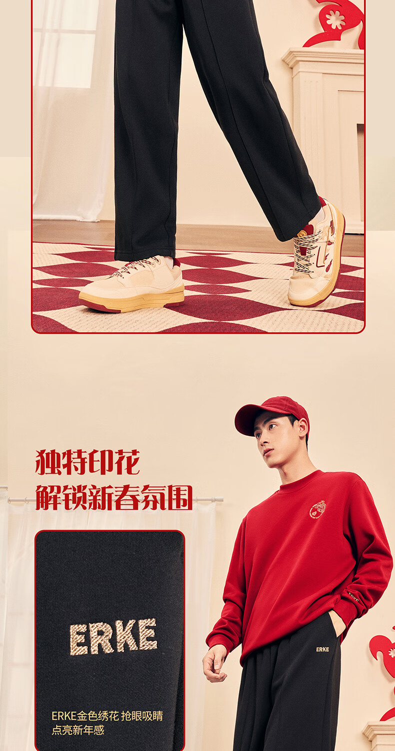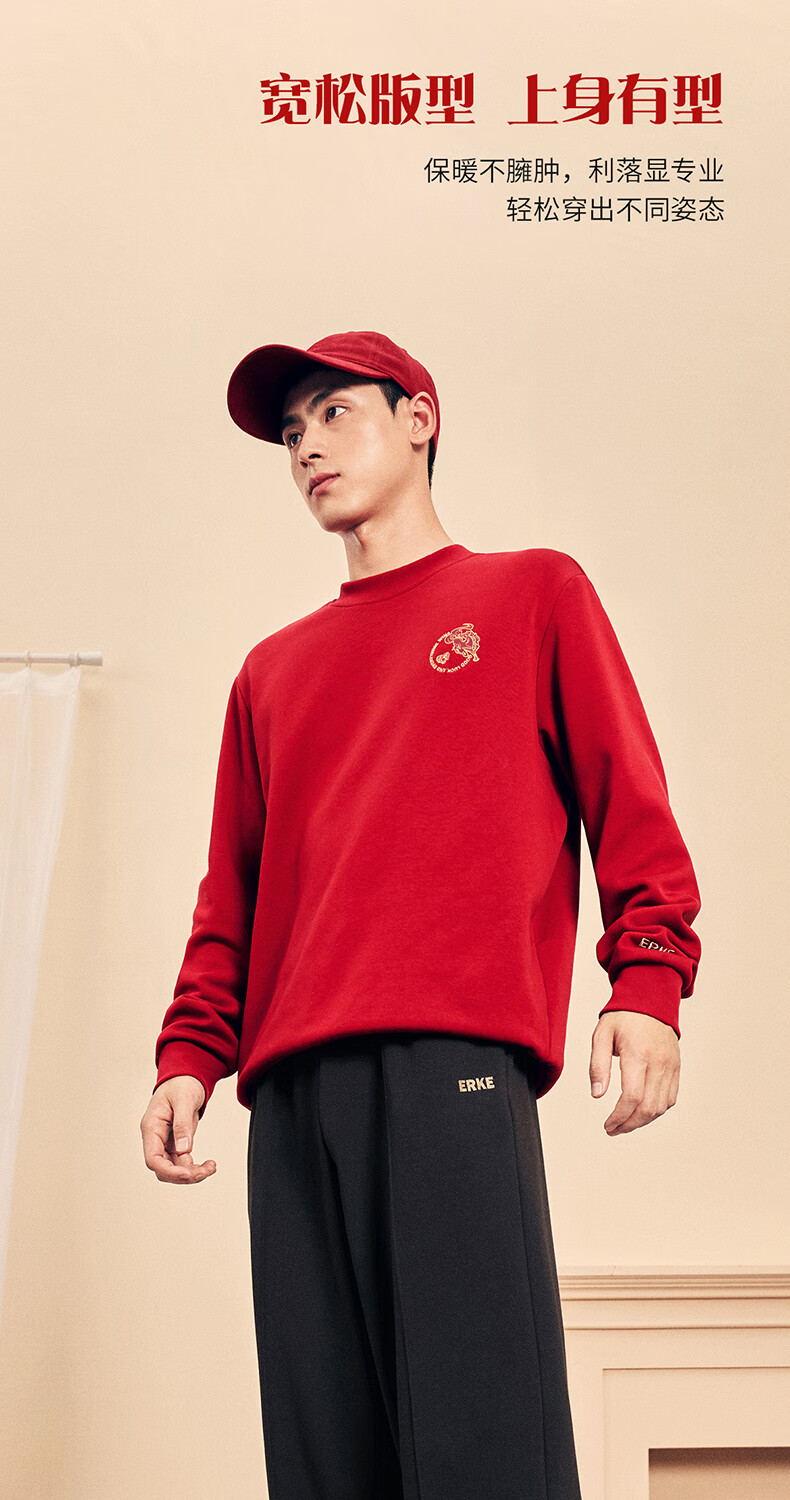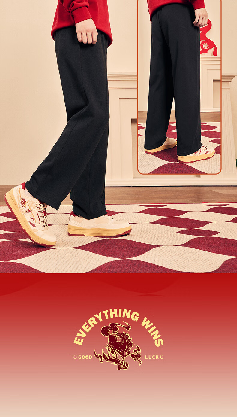 鸿星尔克加绒直筒长裤26年秋冬新品财马送福新年款保暖休闲简约运动裤