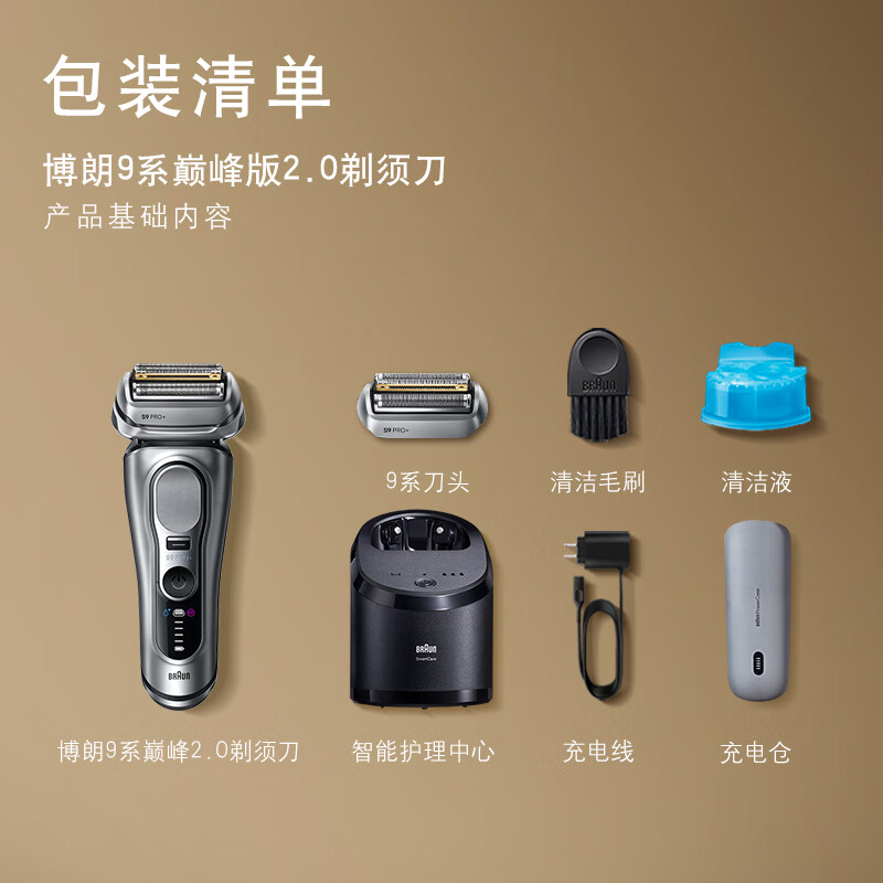 博朗9系巅峰版2.0清洁护理中心便携无忧多配一个刀头电动剃须刀刮胡刀往复式送老公男朋友生日礼物