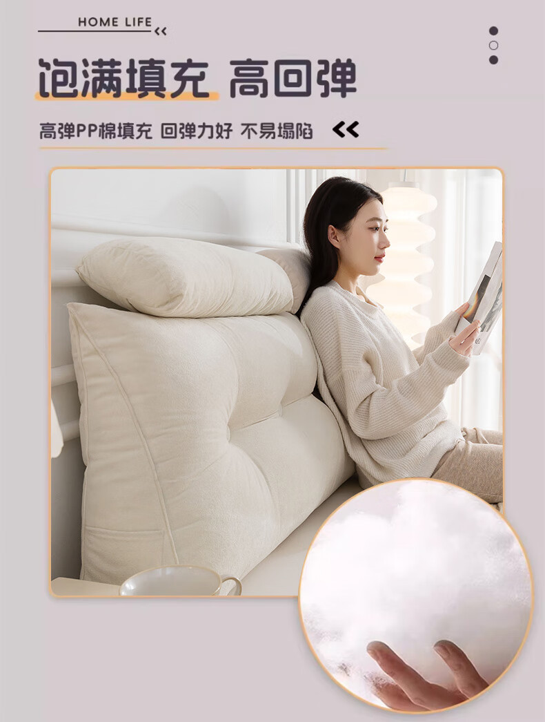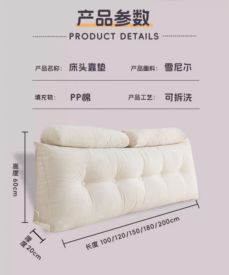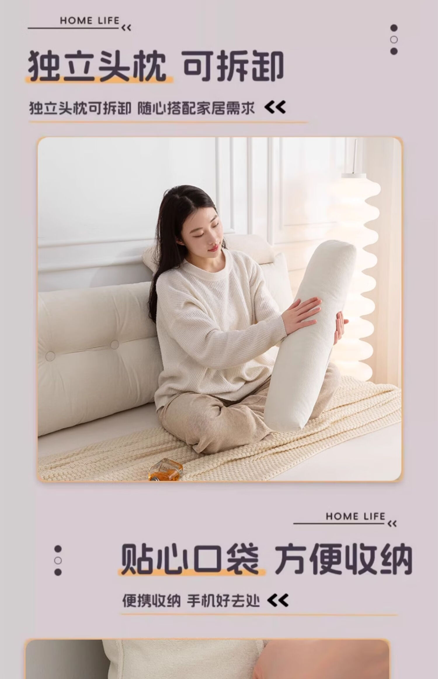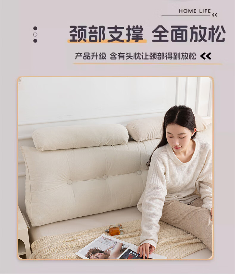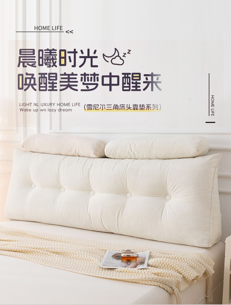 名创优品床头软包靠背靠枕床上沙发靠垫护腰榻榻米飘窗宿舍可拆洗2025新款 中灰【含头枕】雪尼绒材质 150cm*50cm*20cm 含枕芯