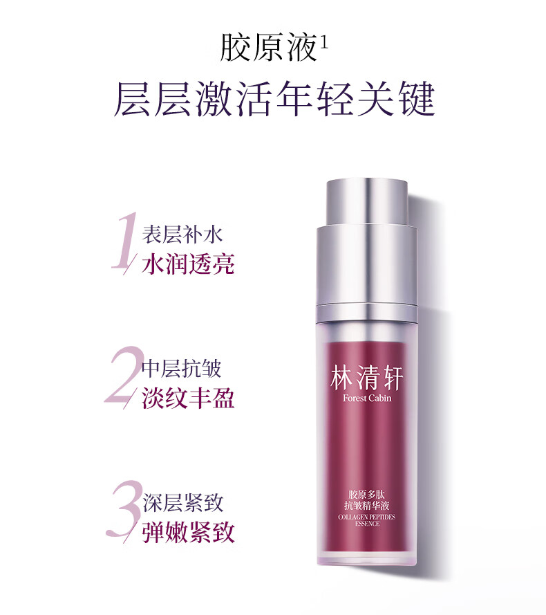 林清轩胶原多肽抗皱精华胶原液保湿淡纹抗皱紧致舒缓面部精华 胶原精华液30ml
