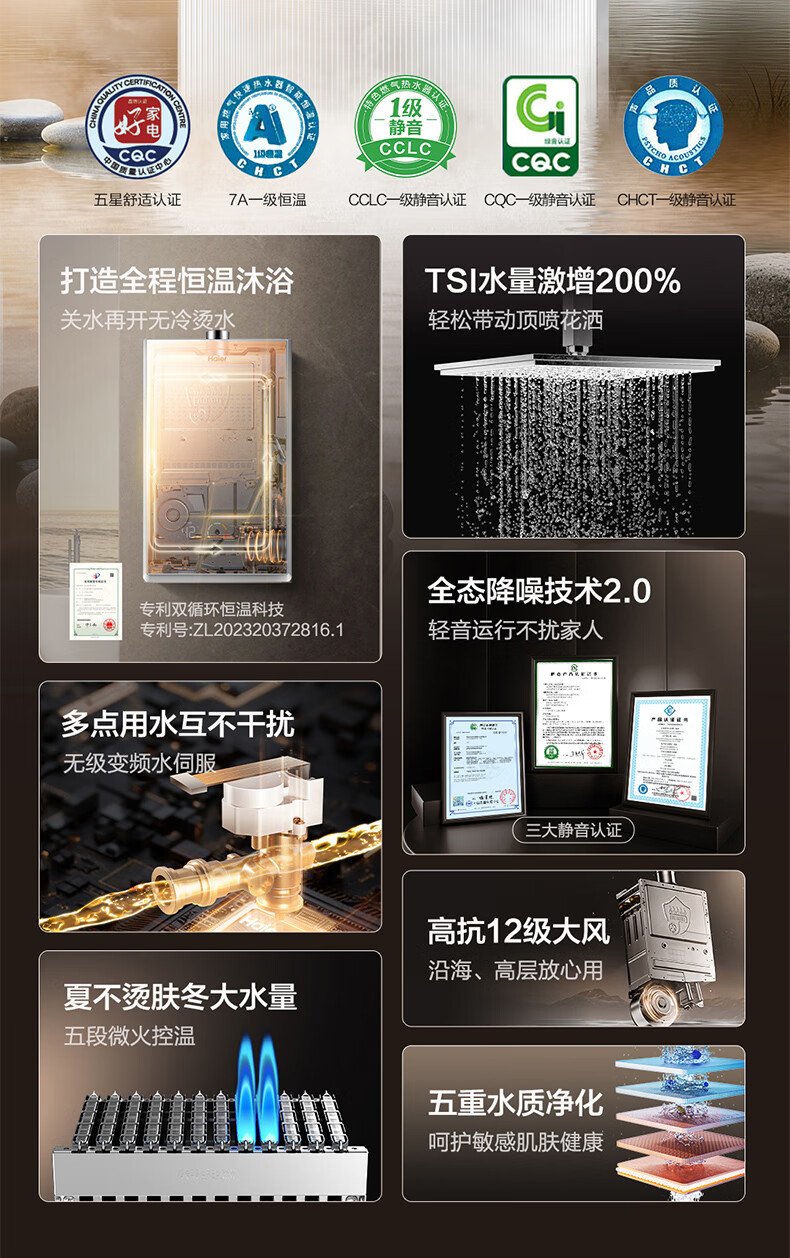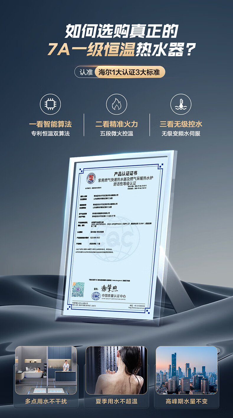 海尔(Haier)燃气热水器16升【恒星KL7S】天然气双循环恒温无级变频水伺服五段微火密闭稳燃舱一级静音恒星KL7S 16L 【KL7S】恒温一级静音