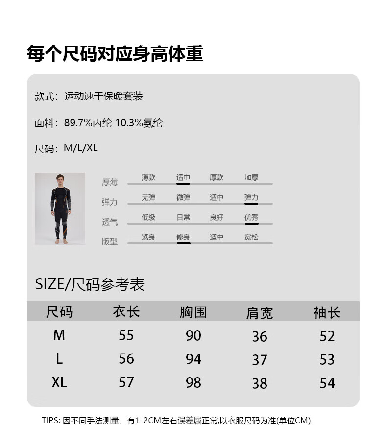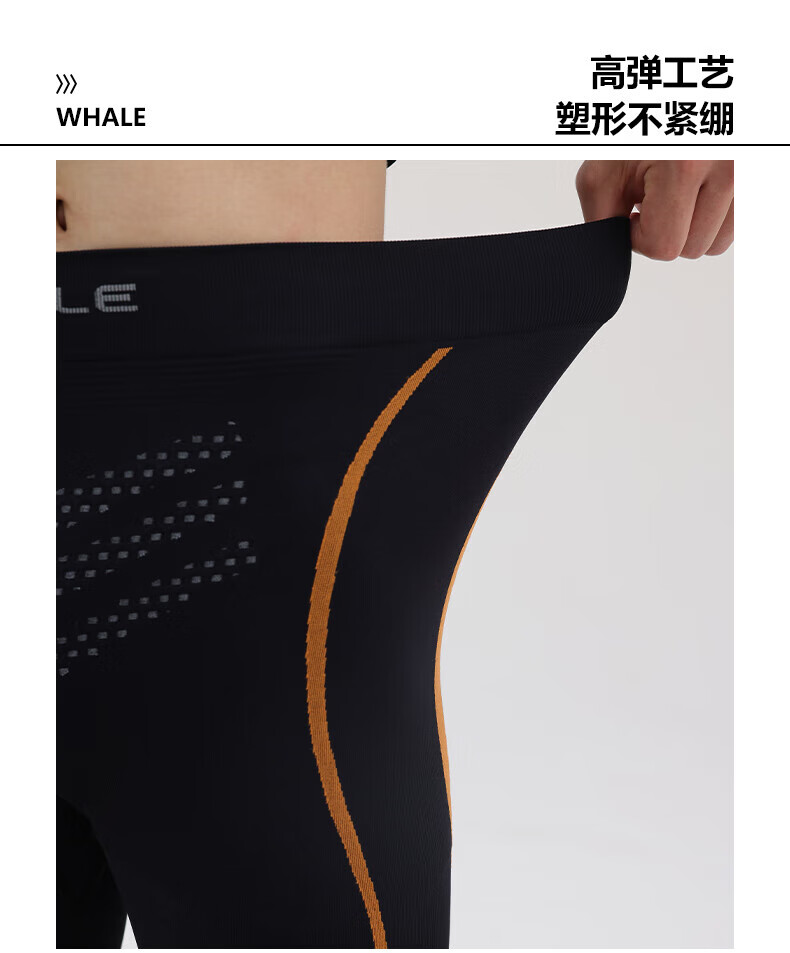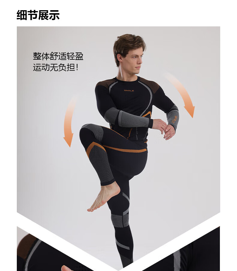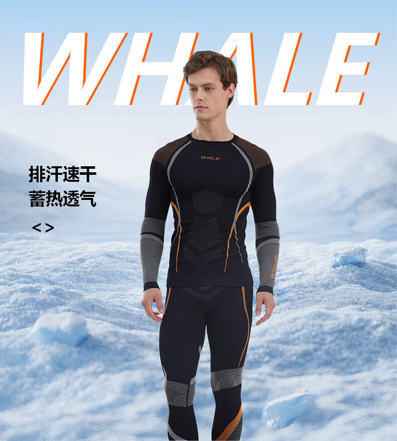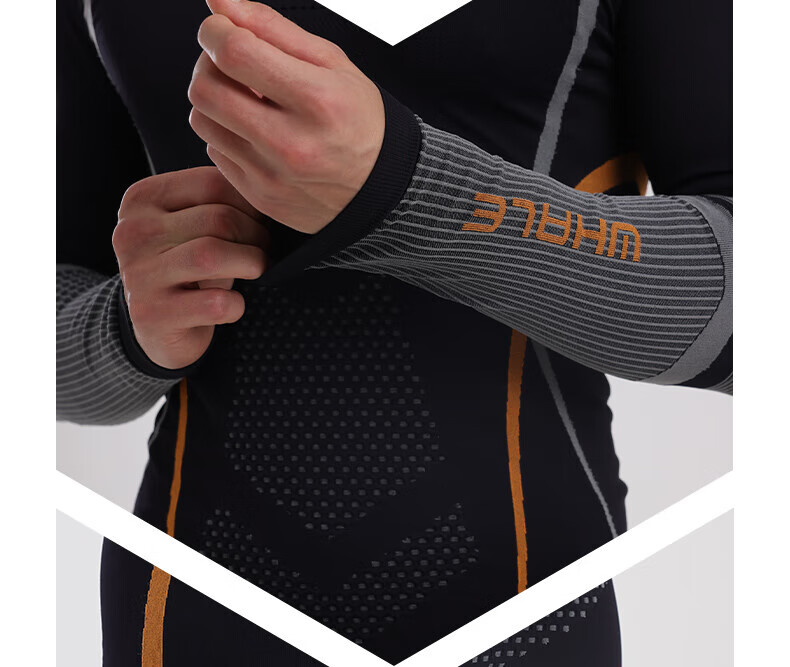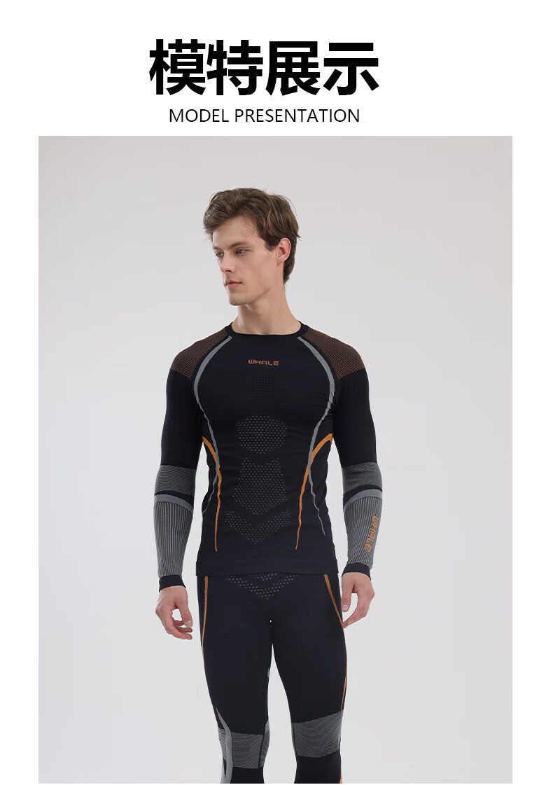 鲸鱼男士速干衣保暖内衣户外运动滑雪保暖套装冬季修身舒适防寒 男款速干保暖衣-黑橙色 M
