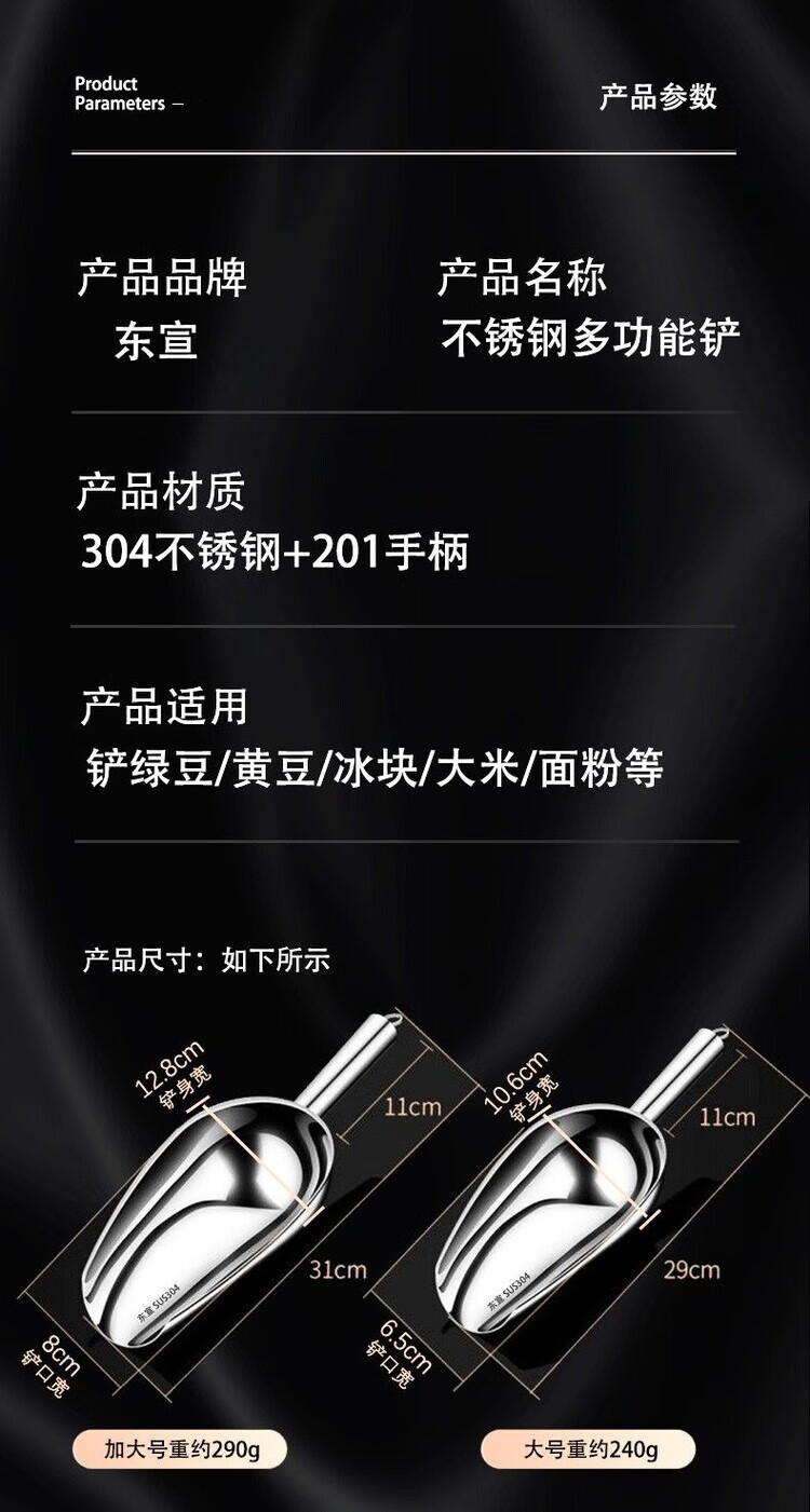 DEATKN304铲加厚铲子不锈钢多用铲面粉粮食杂粮茶叶食品瓜子201冰勺米铲 急清仓#升级款【特厚满焊一体】用不坏 食品级【加厚SUS201】特大号-多用途