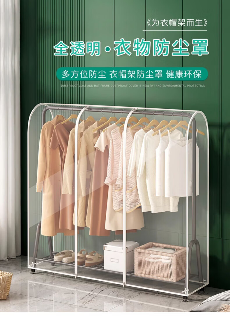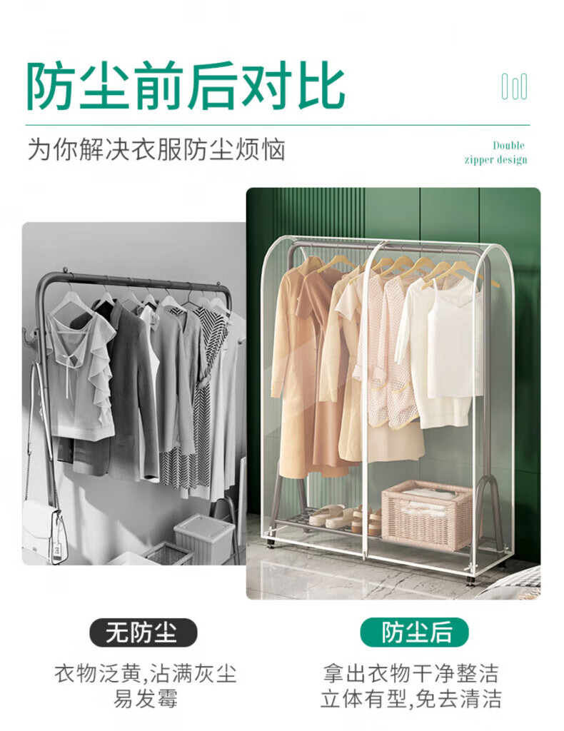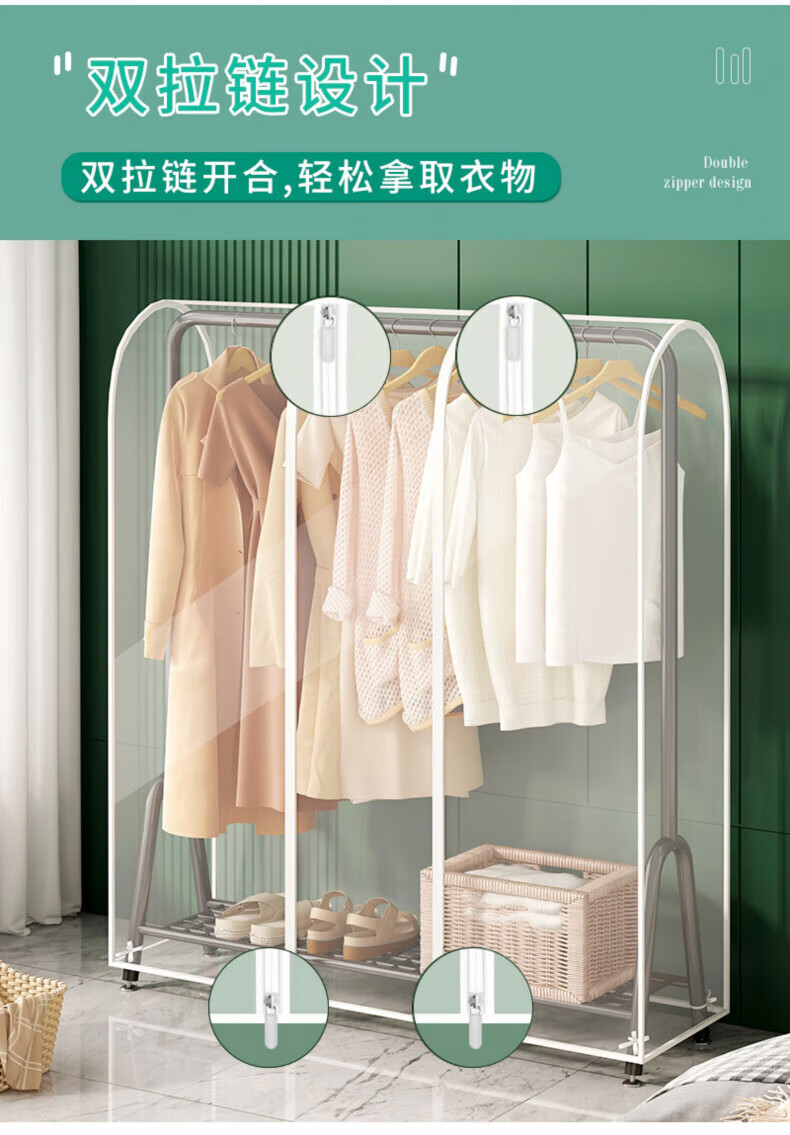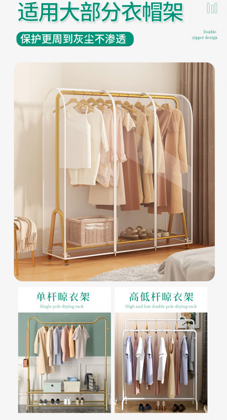 WCZ德国衣架防尘罩家用遮灰尘衣帽间大衣防尘袋落地式双杆衣服收纳防 [EVA磨砂衣架罩] 90*50cm 高150cm