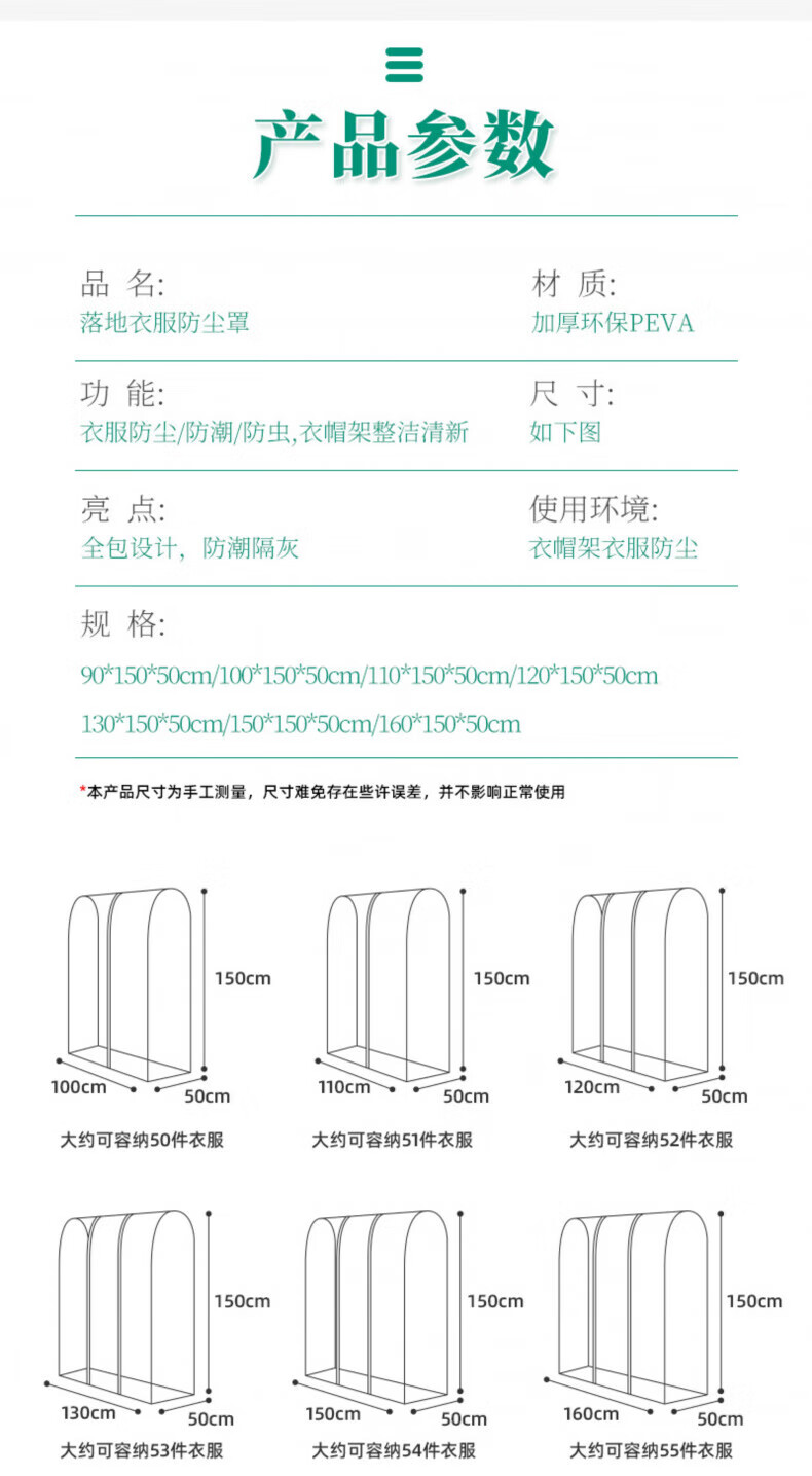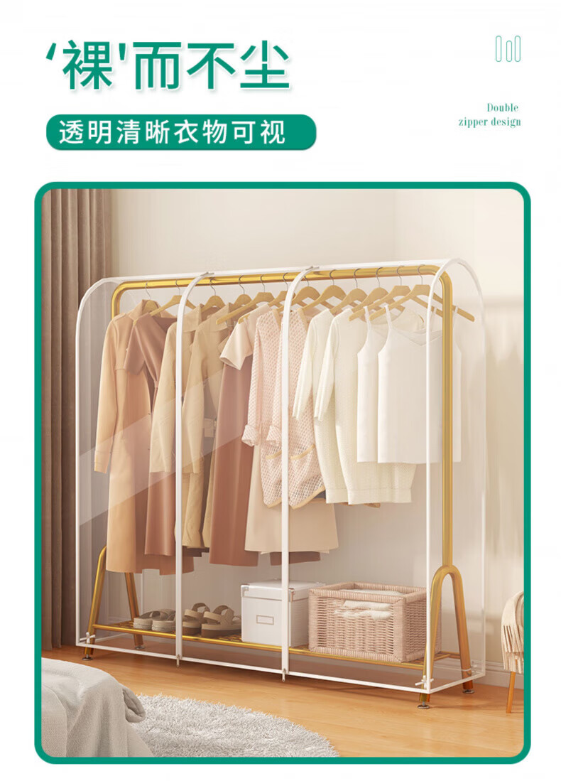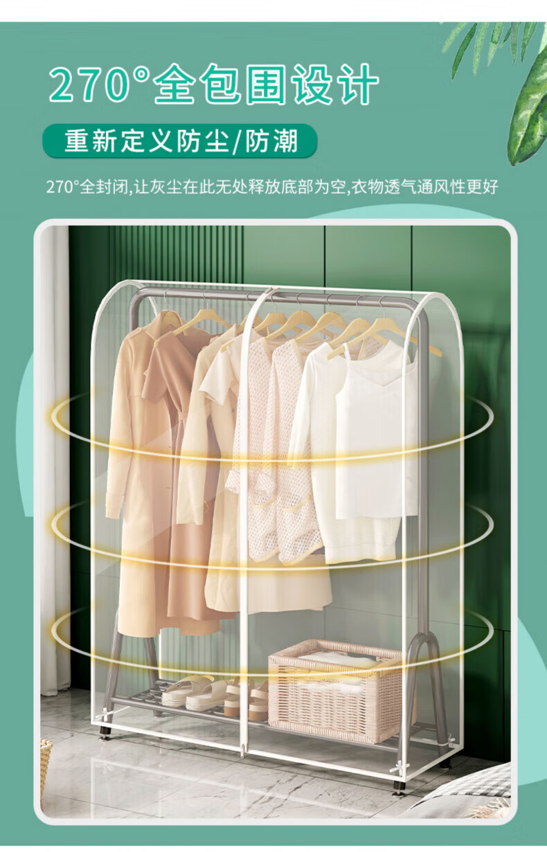 WCZ德国衣架防尘罩家用遮灰尘衣帽间大衣防尘袋落地式双杆衣服收纳防 [EVA磨砂衣架罩] 90*50cm 高150cm