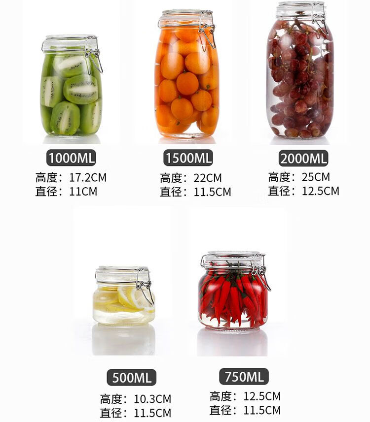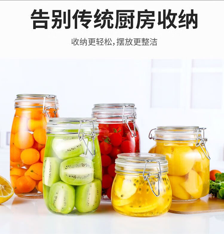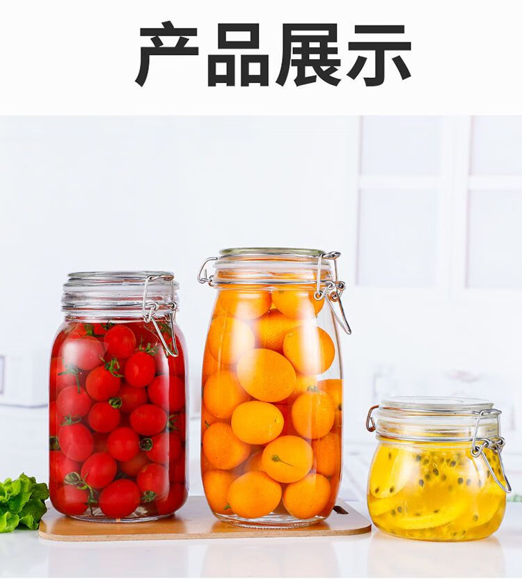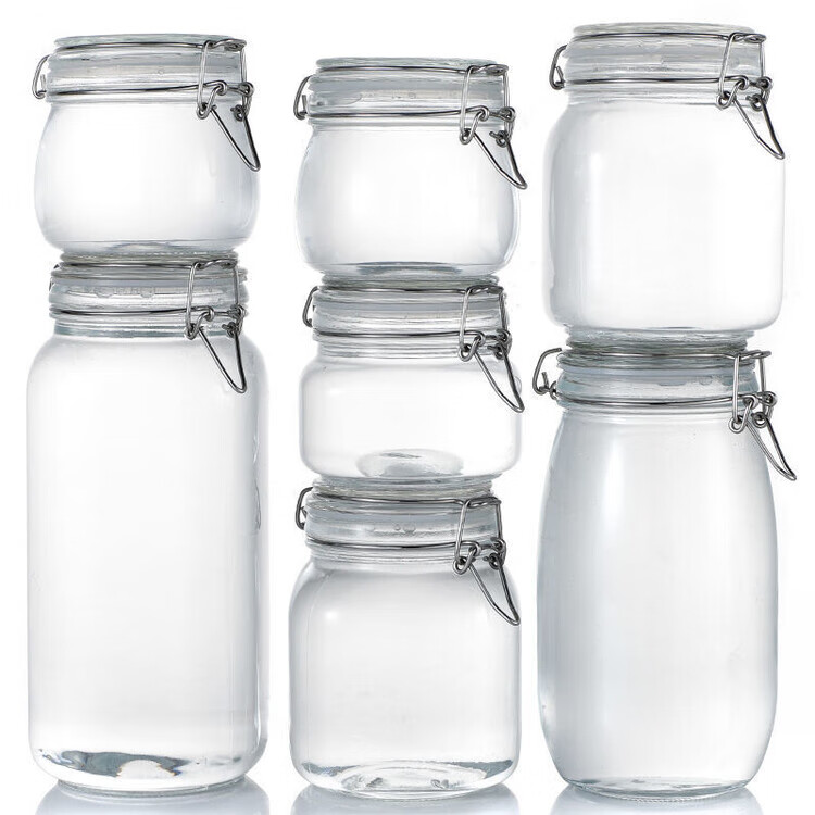 DEATKN德国玻璃瓶密封罐子食品罐带盖透明罐头家用腌制柠檬百香果蜂蜜储 圆形【新客朴贴】 500毫升三只装+卡扣盖+密封圈+泡沫盒