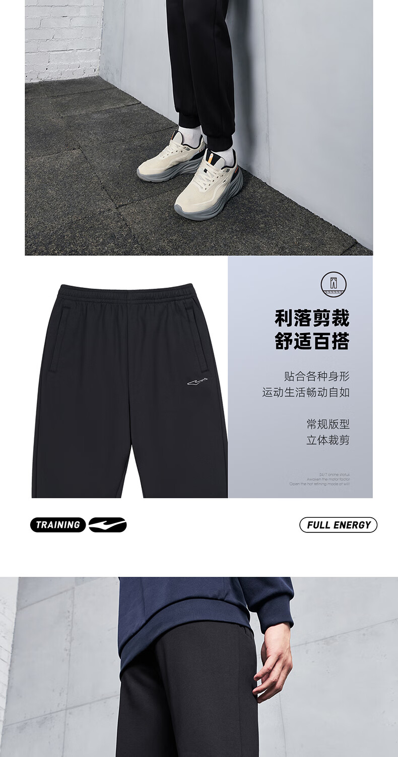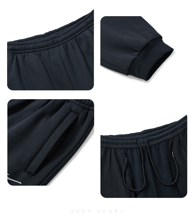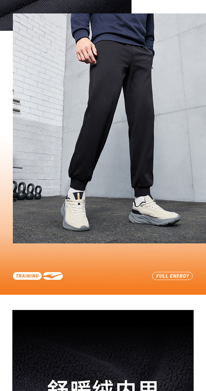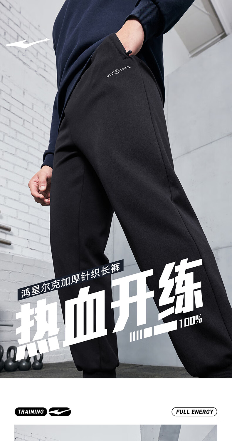 鸿星尔克运动裤男秋冬季新款加绒休闲针织束口长裤九分裤男士裤子卫裤男裤 正黑-1026-加绒针织 XL