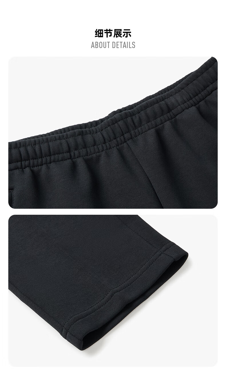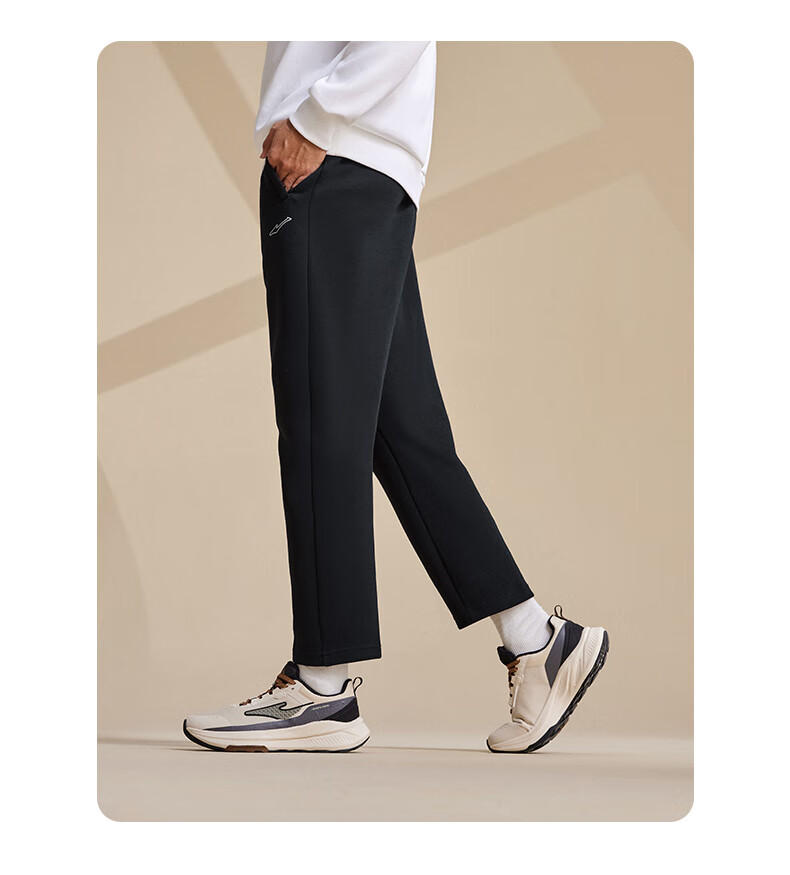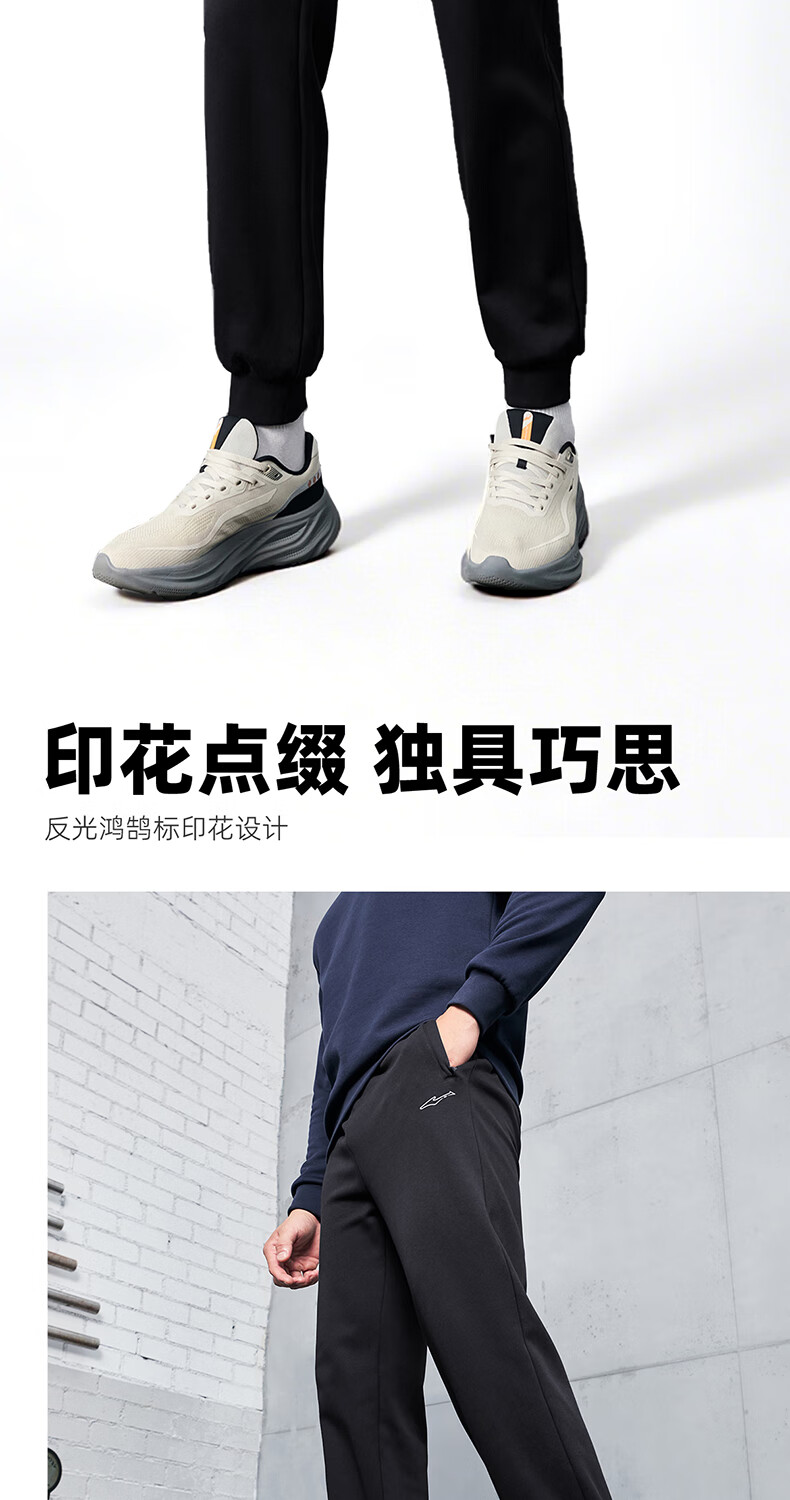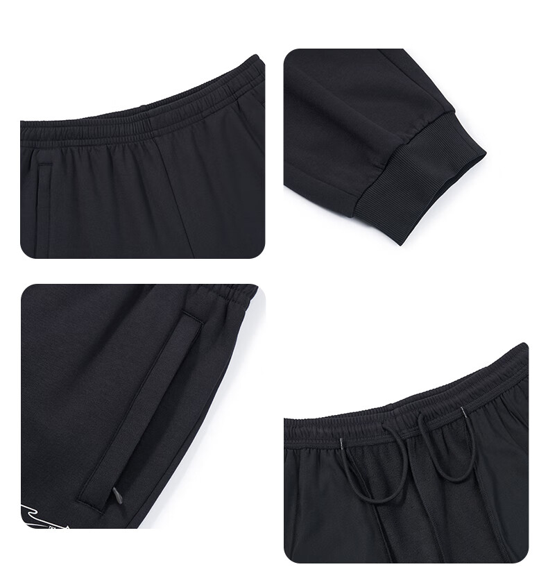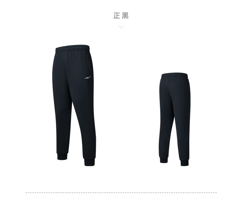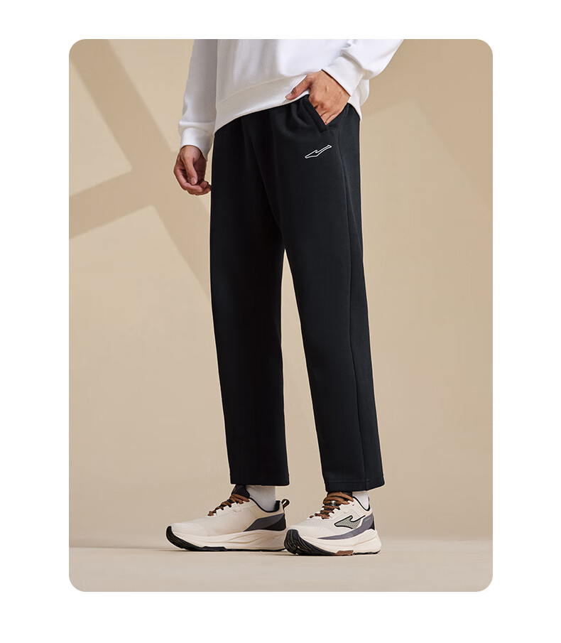 鸿星尔克运动裤男秋冬季新款加绒休闲针织束口长裤九分裤男士裤子卫裤男裤 正黑-1026-加绒针织 XL
