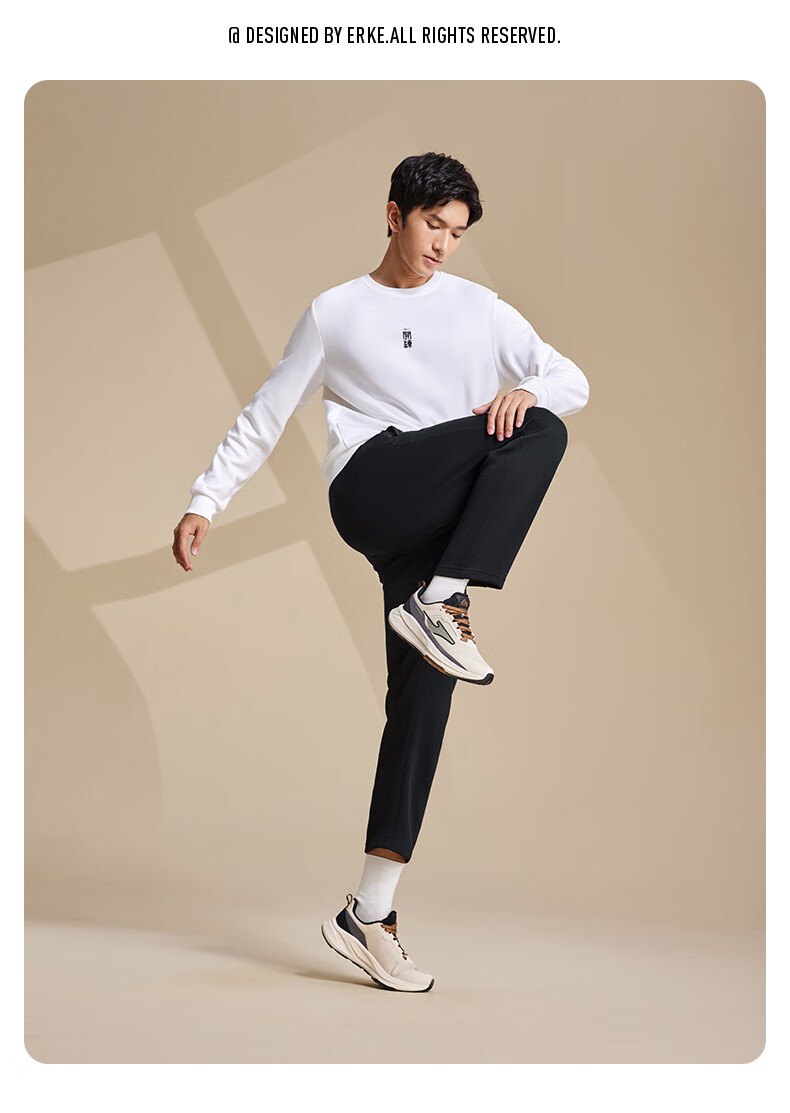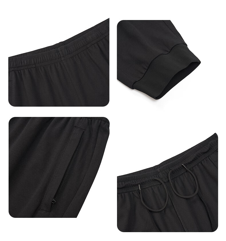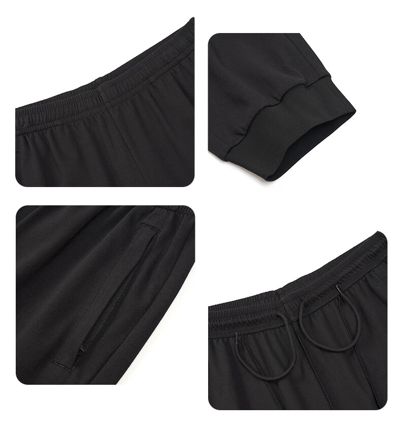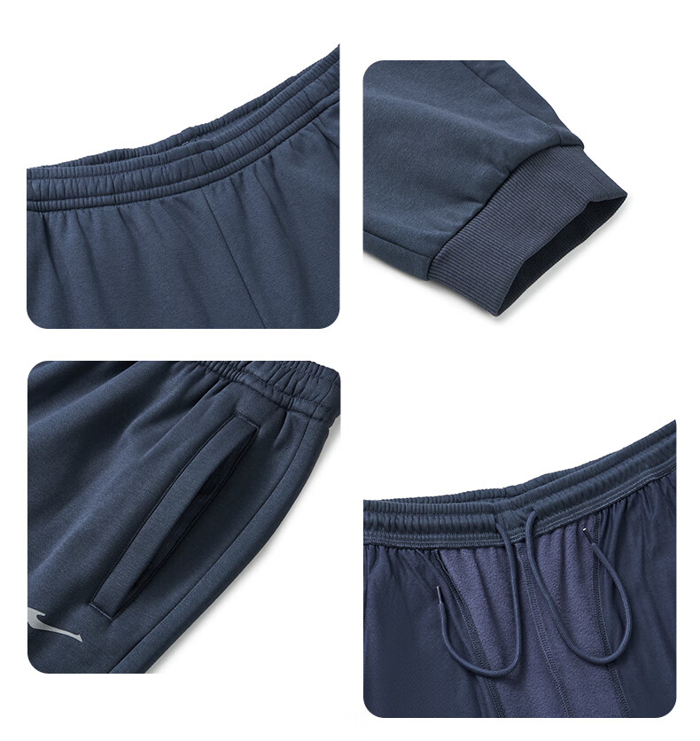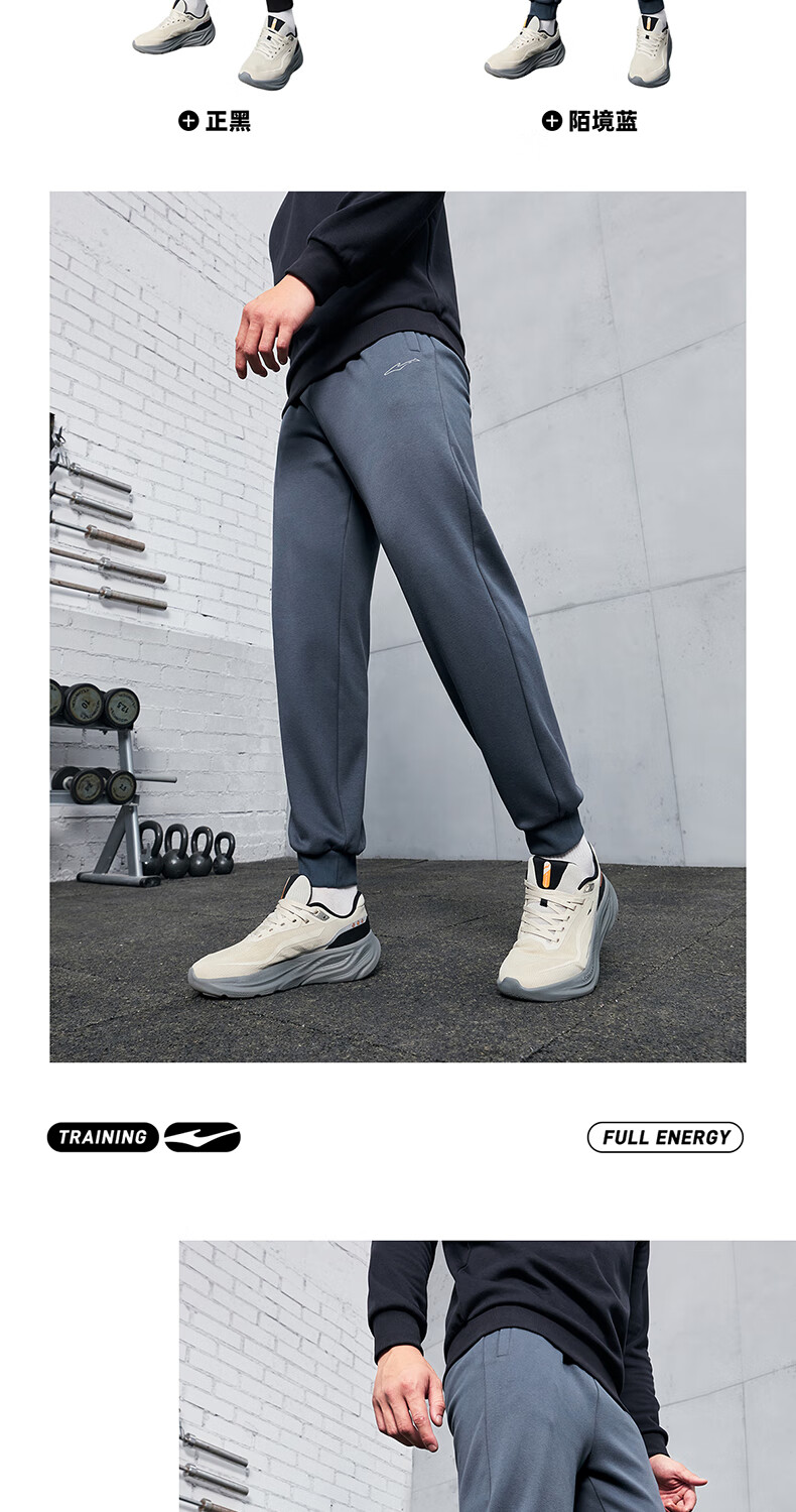 鸿星尔克运动裤男秋冬季新款加绒休闲针织束口长裤九分裤男士裤子卫裤男裤 正黑-1026-加绒针织 XL