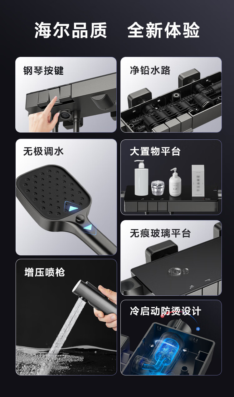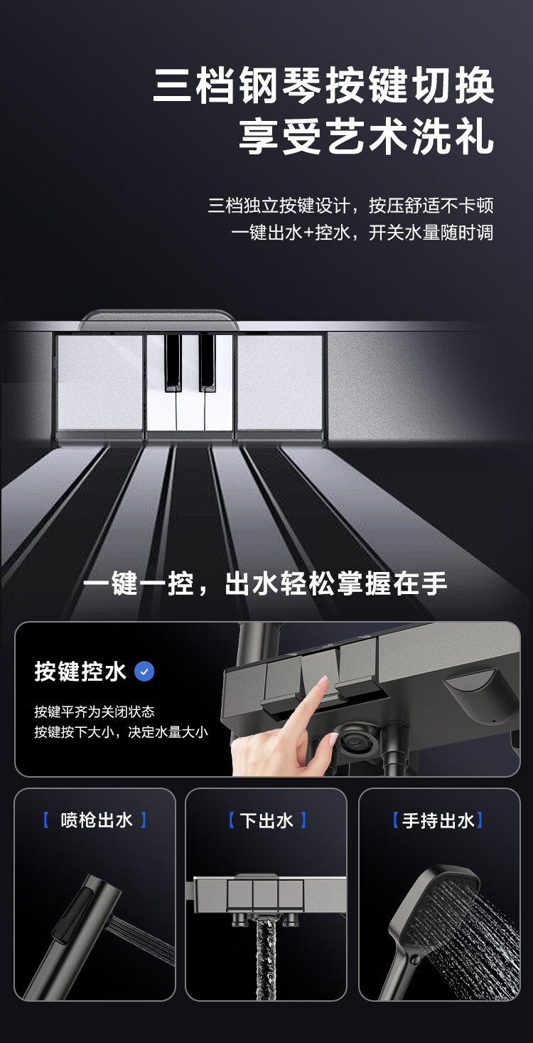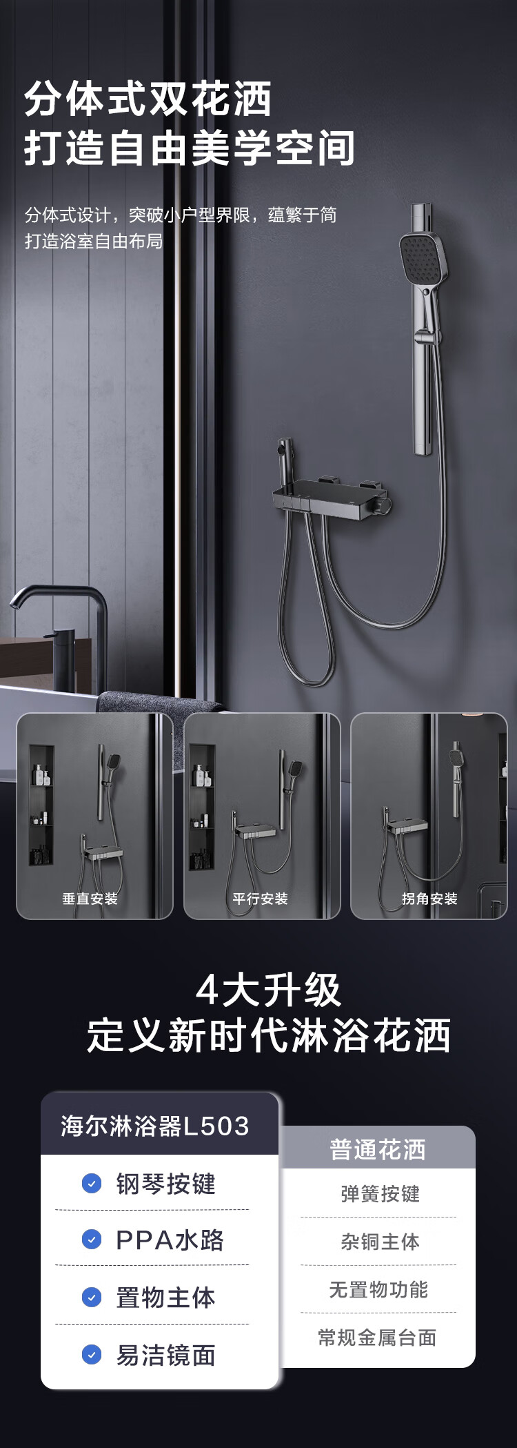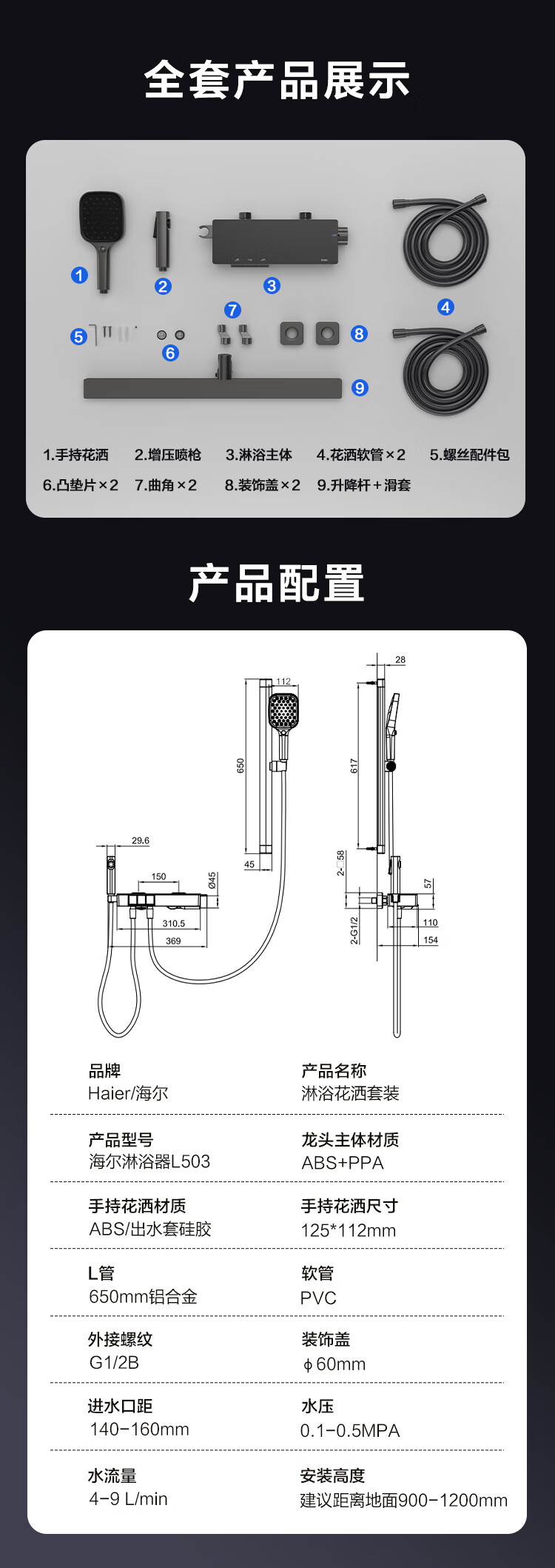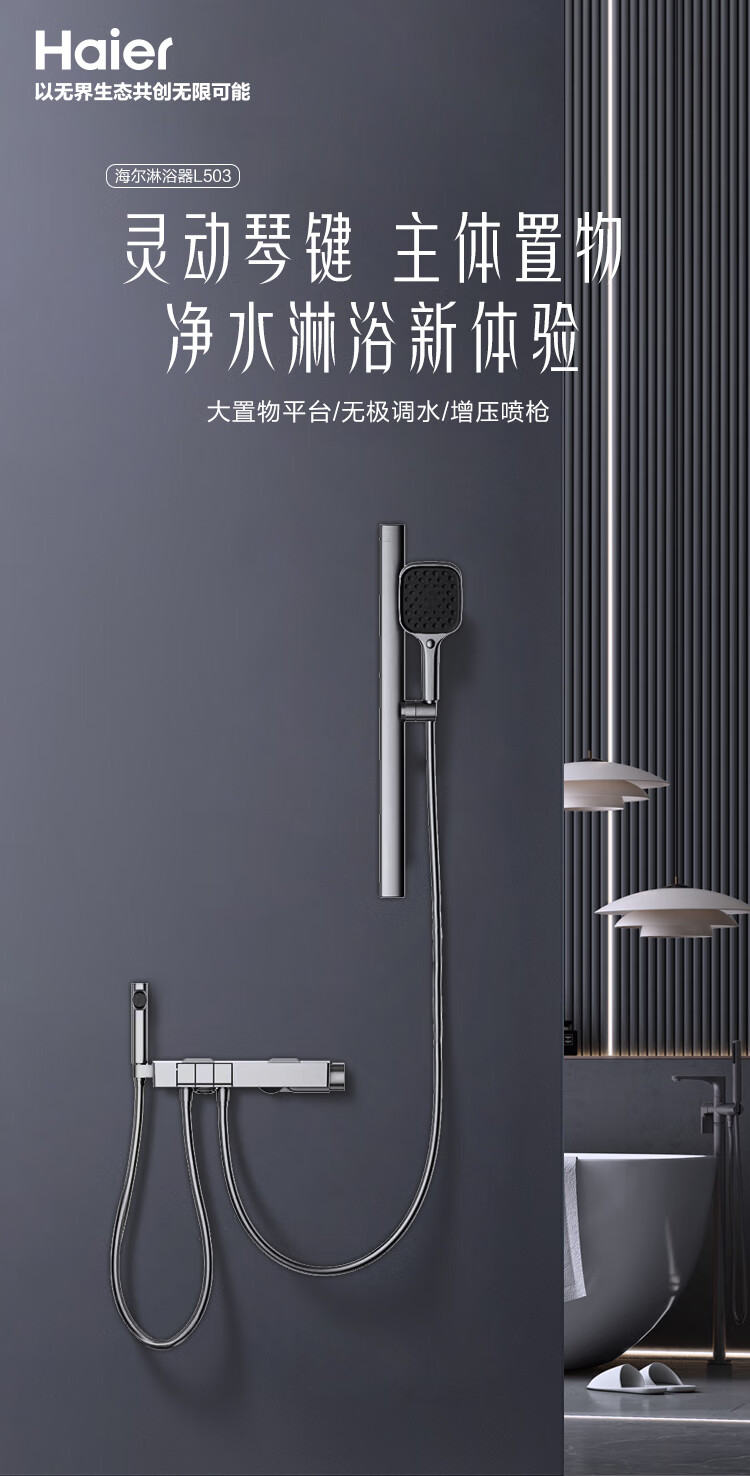 海尔淋浴花洒全套装家用简易卫生间分体式浴室花洒钢琴按键增压喷枪 【L503奶白】滑轨升降+钢琴按键
