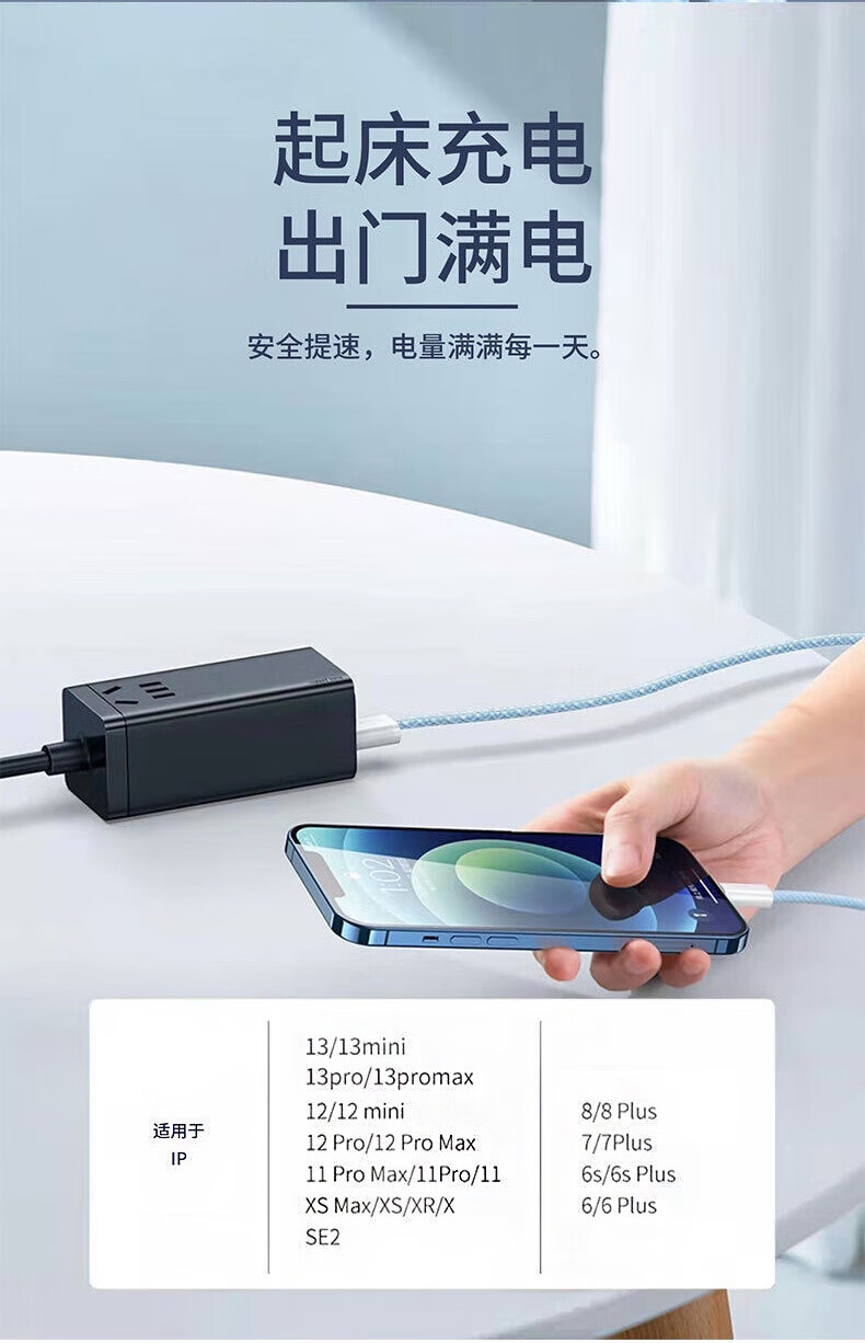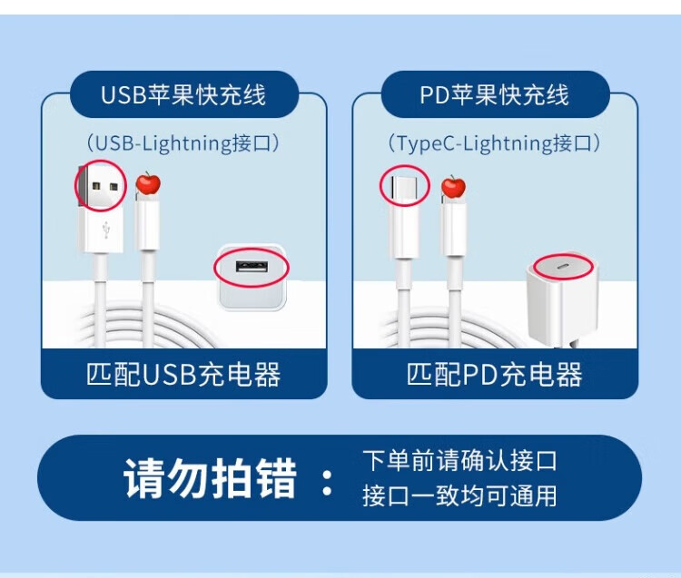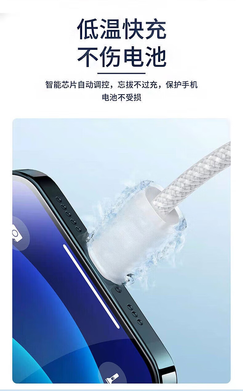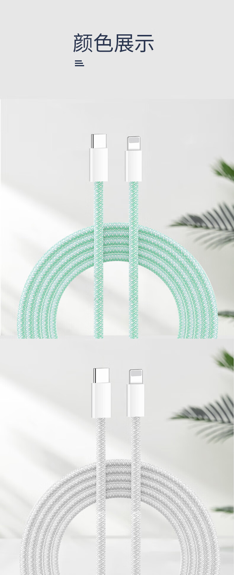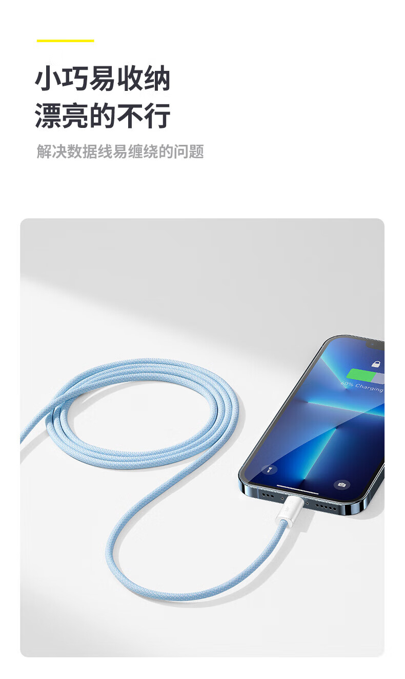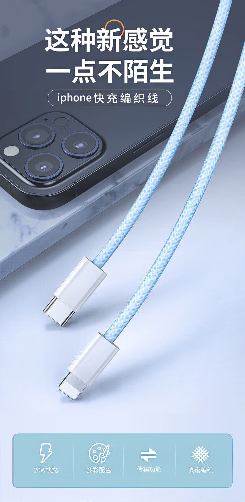摩力小象适用于苹果手机快充 数据线 充电线 1米 蓝色 c to 苹果PD快充