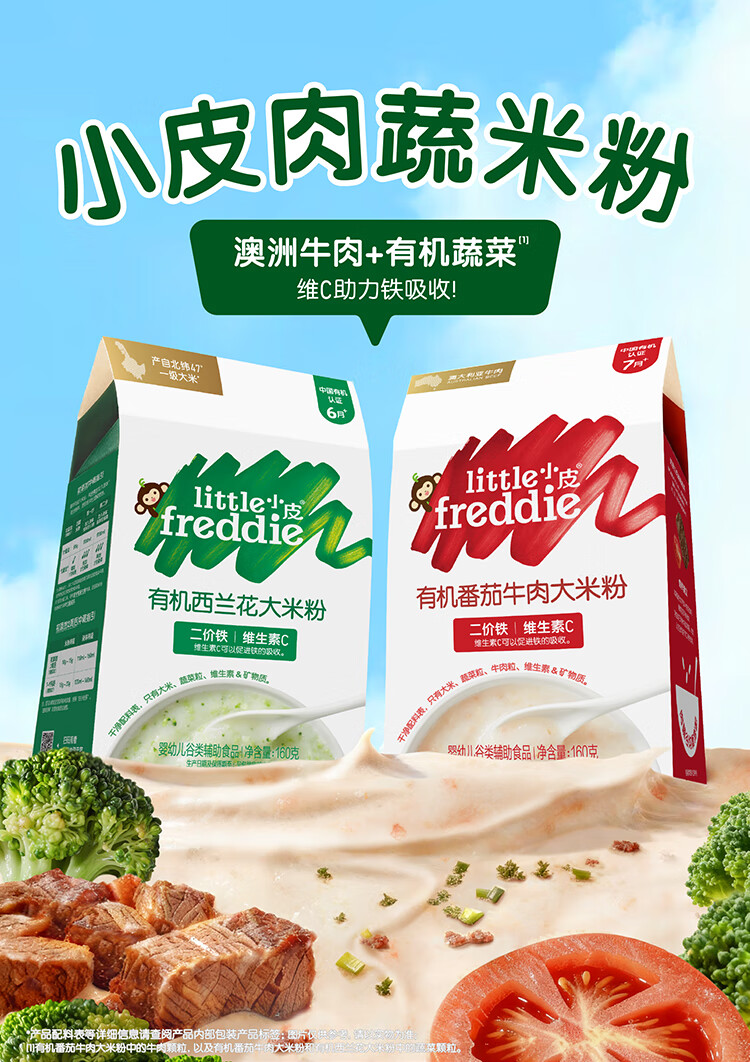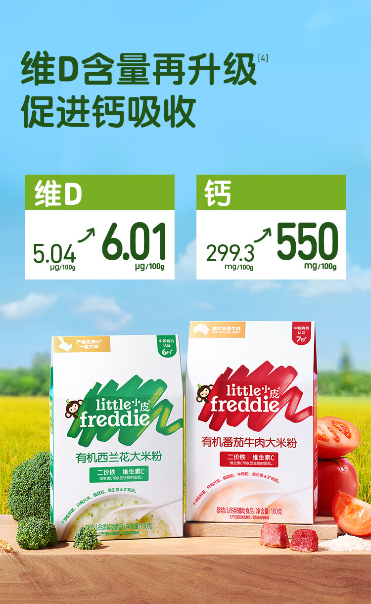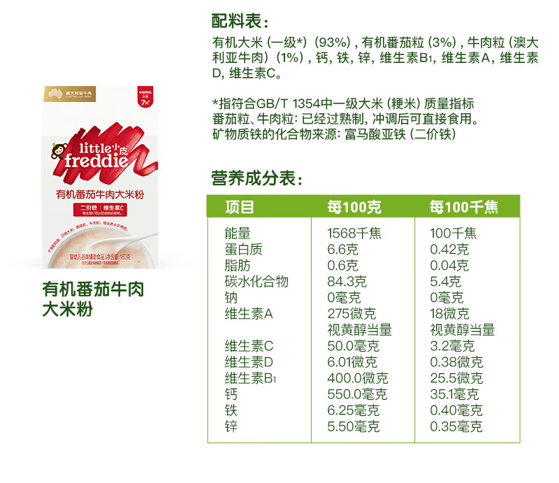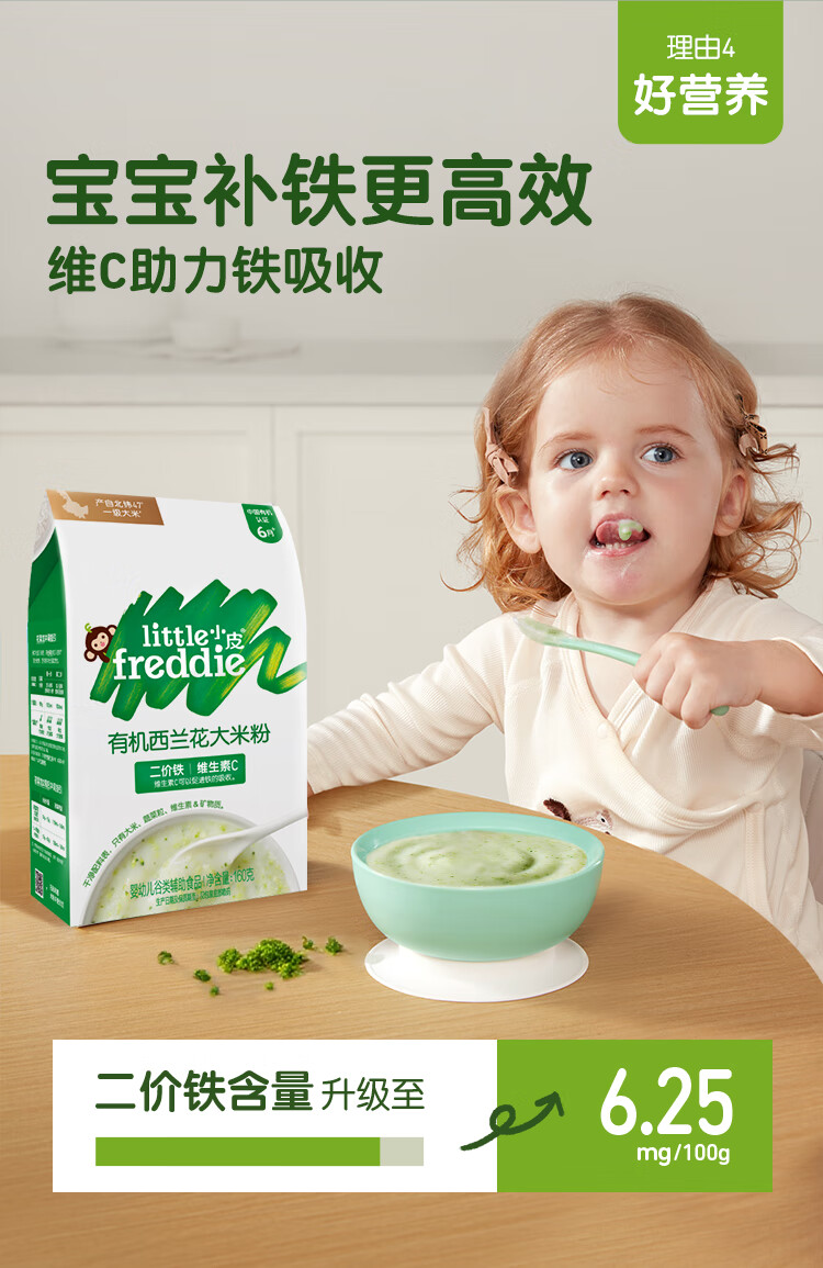 little freddie有机西兰花大米粉160g*1盒宝宝辅食婴儿营养低敏米糊米粉6个月