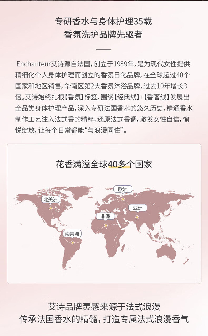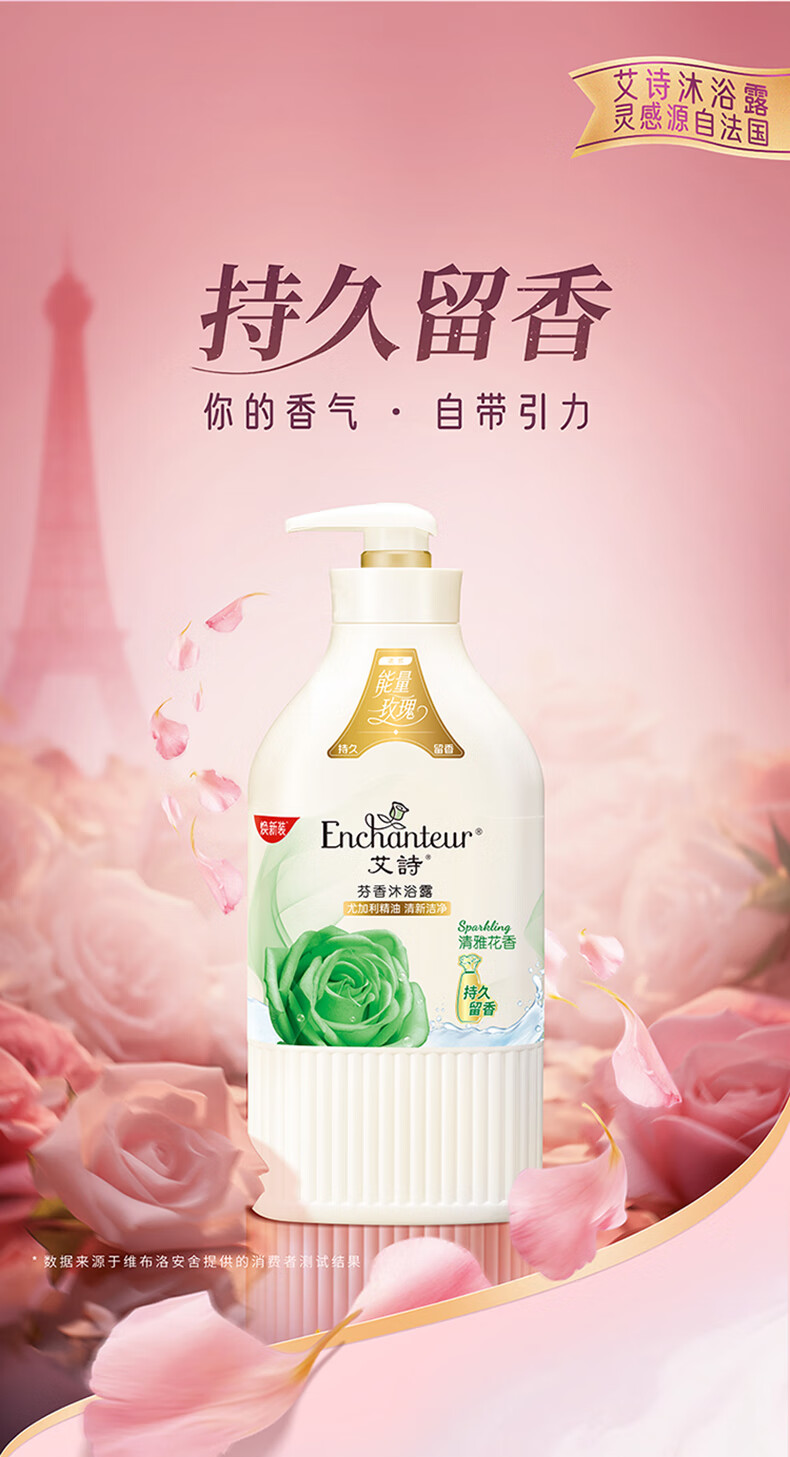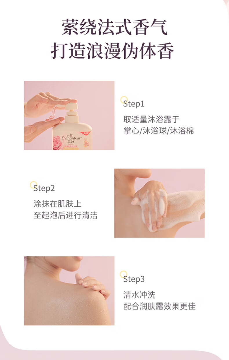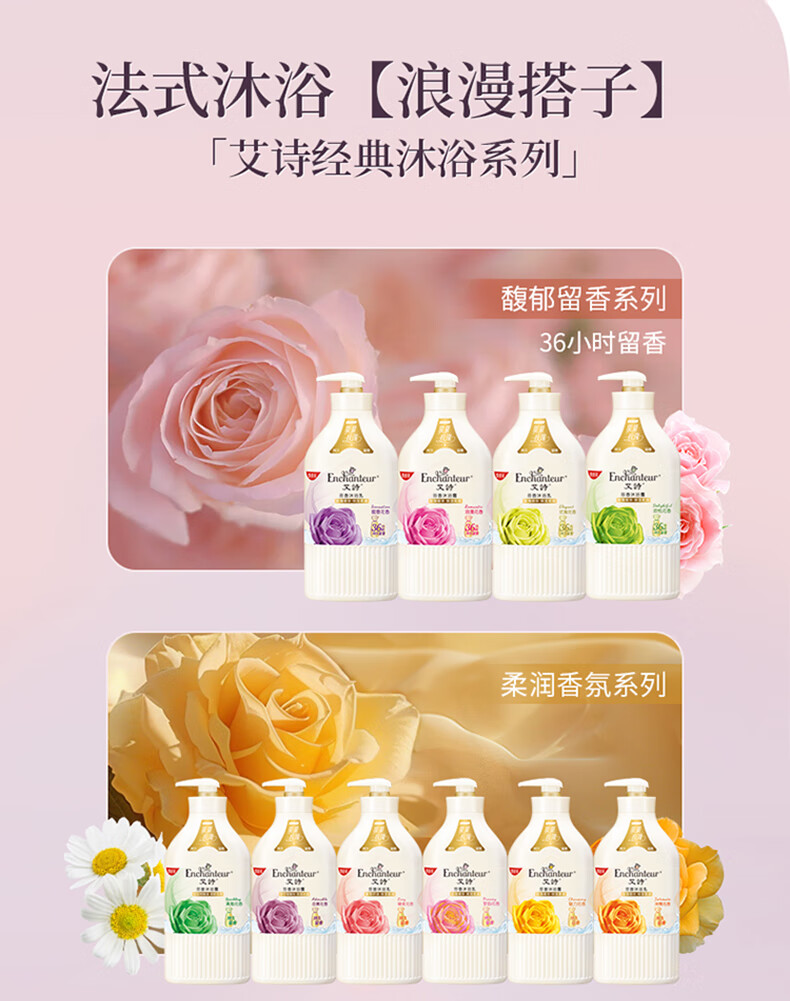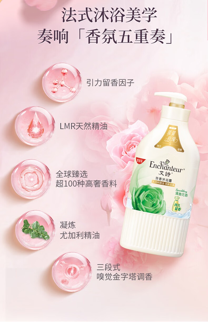 艾诗(Enchanteur)沐浴露 健肤尤加利精油香水沐浴乳女 清雅花香650ml