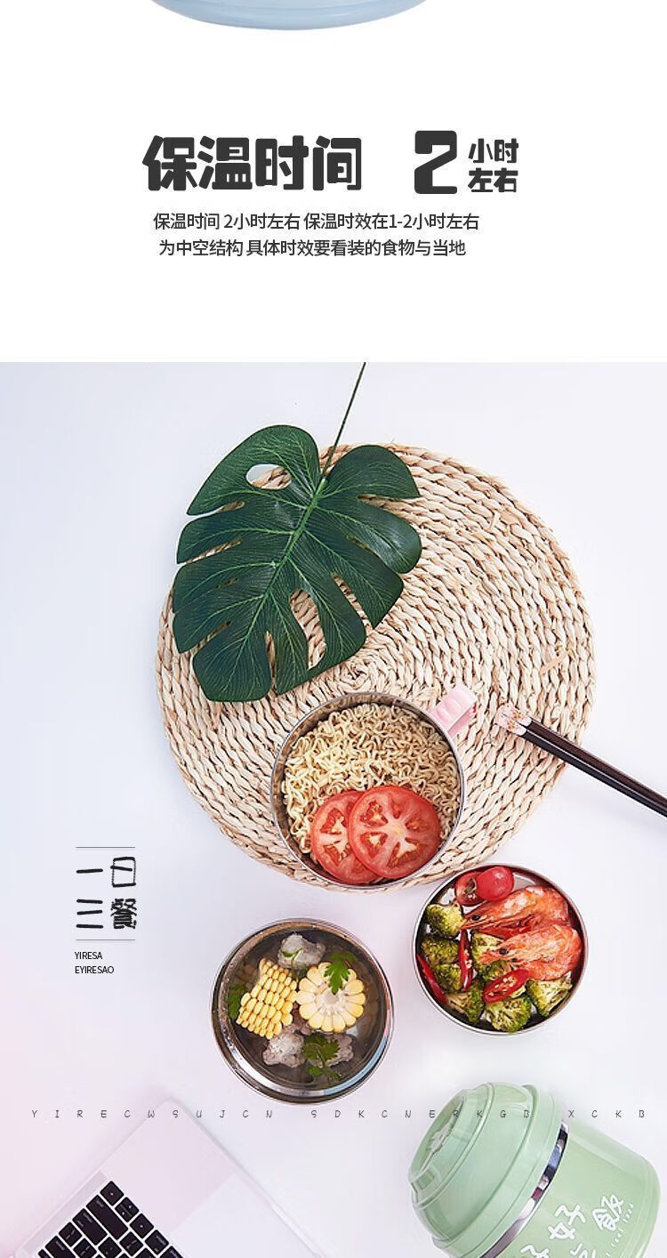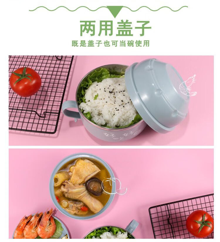 DEATKN不锈钢快餐杯泡面碗带盖大号学生饭盒上班族宿舍碗筷套装成人餐盒 旗舰品质【北欧蓝】 拧紧增强款【全内胆不锈钢】无赠品