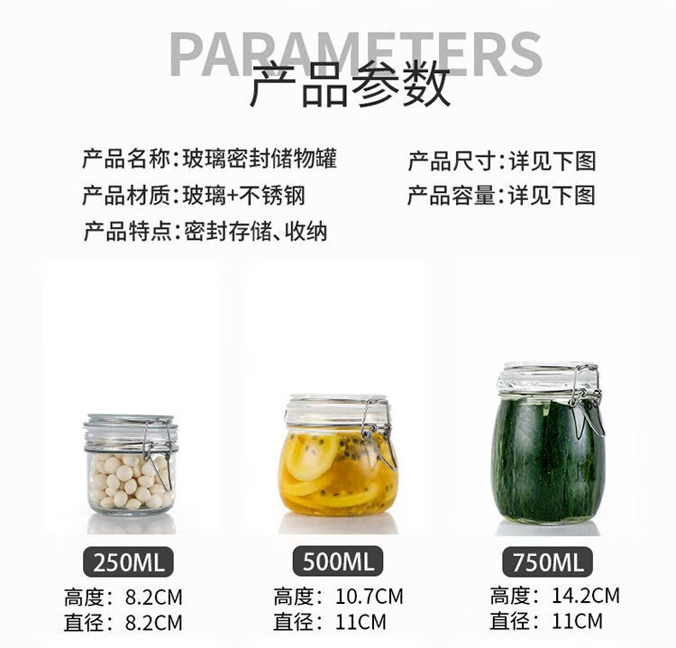 DEATKN德国玻璃瓶密封罐子食品罐带盖透明罐头家用腌制柠檬百香果蜂蜜储 圆形【新客朴贴】 500毫升三只装+卡扣盖+密封圈+泡沫盒