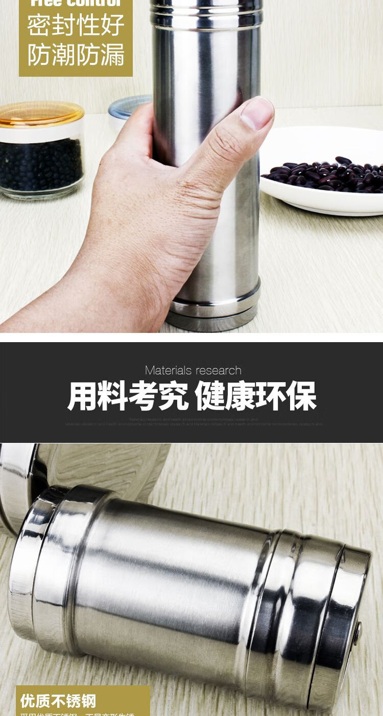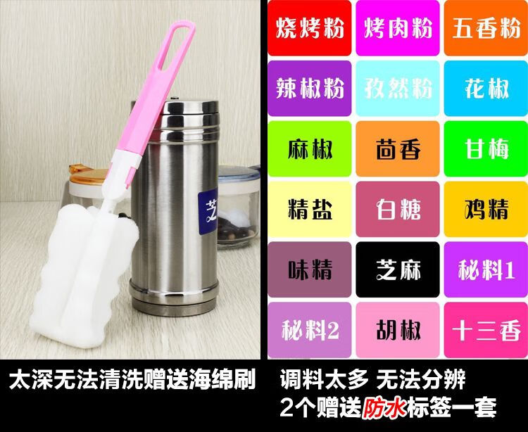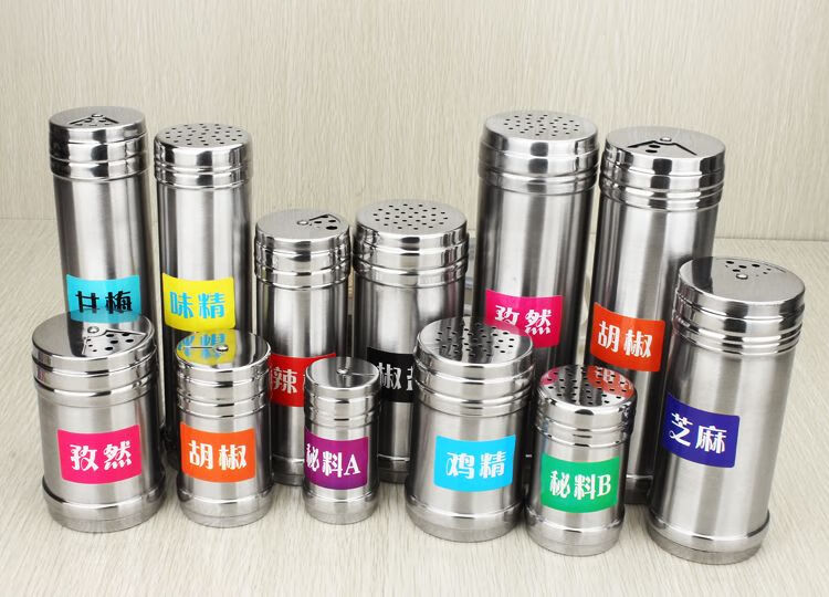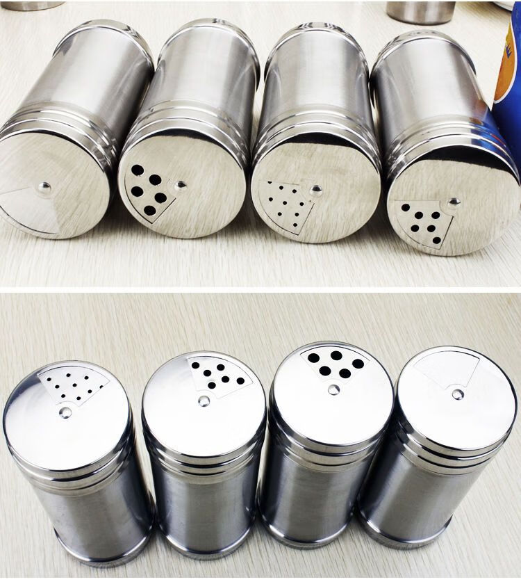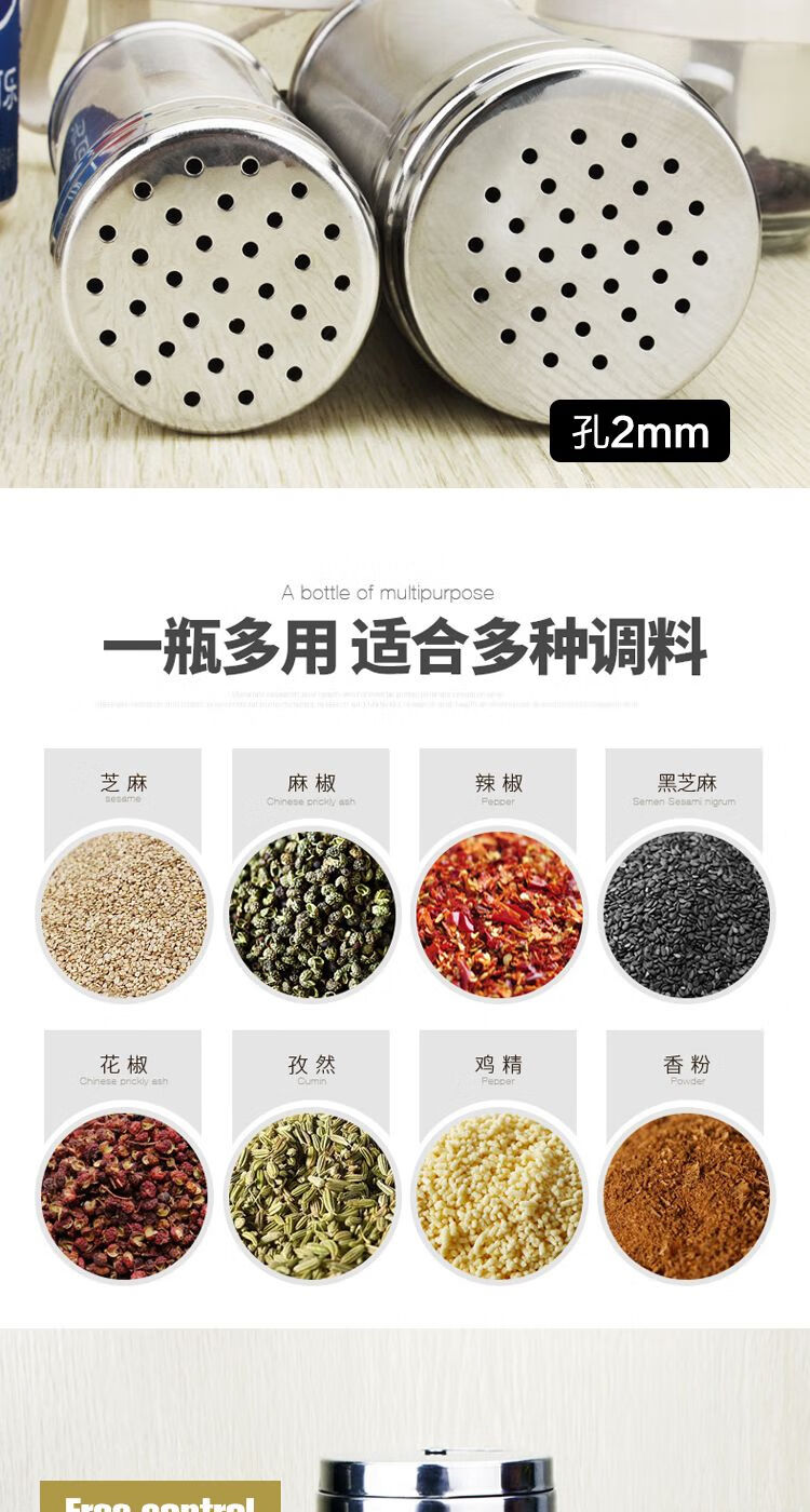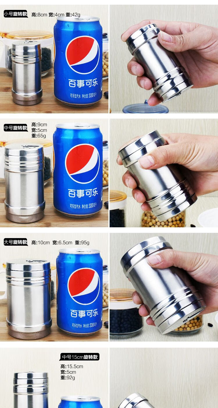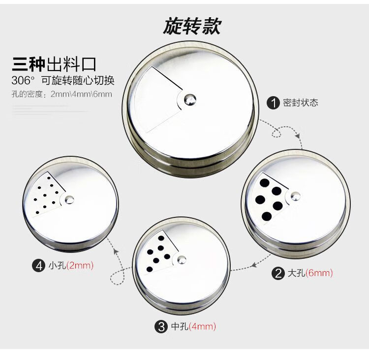 DEATKN德国不锈钢组合套装调料瓶罐子厨房佐烧烤撒料盒芝麻辣椒粉味精盐 说明:旋转款(旋转盖有3种孔径)
