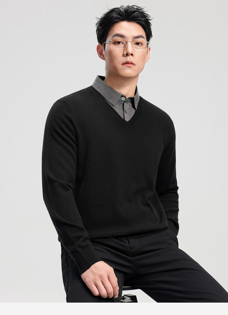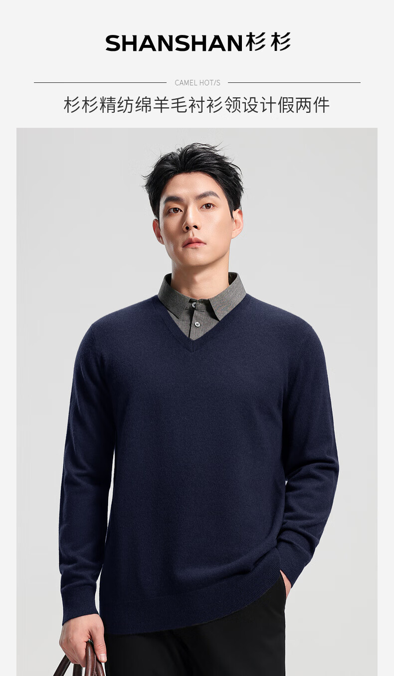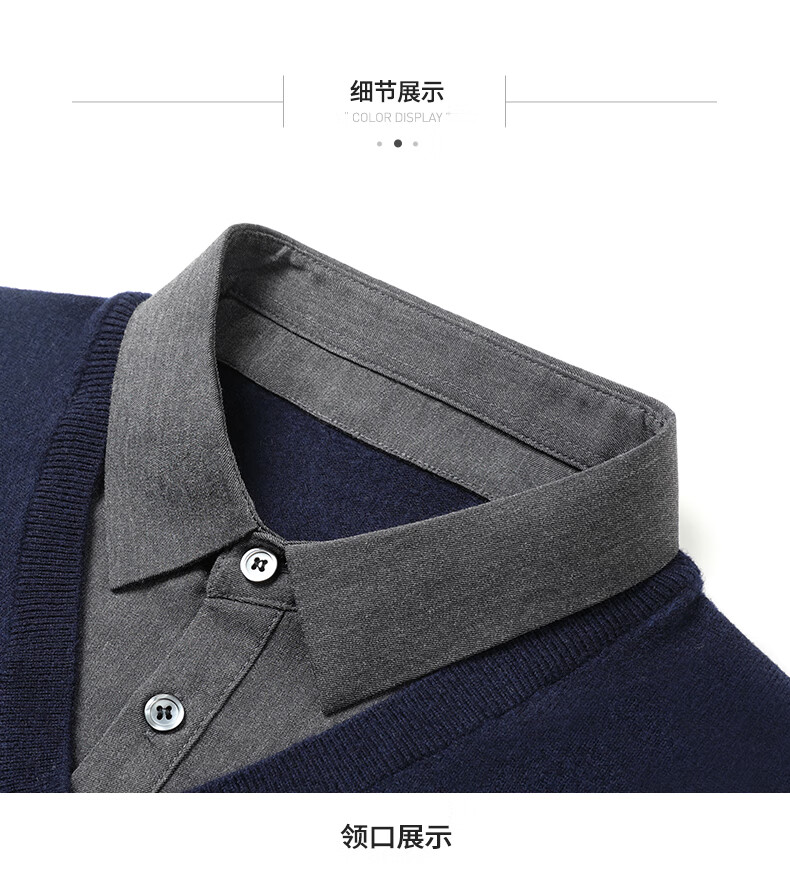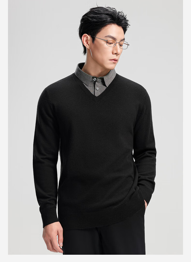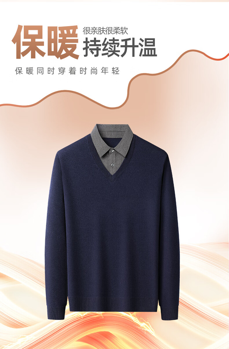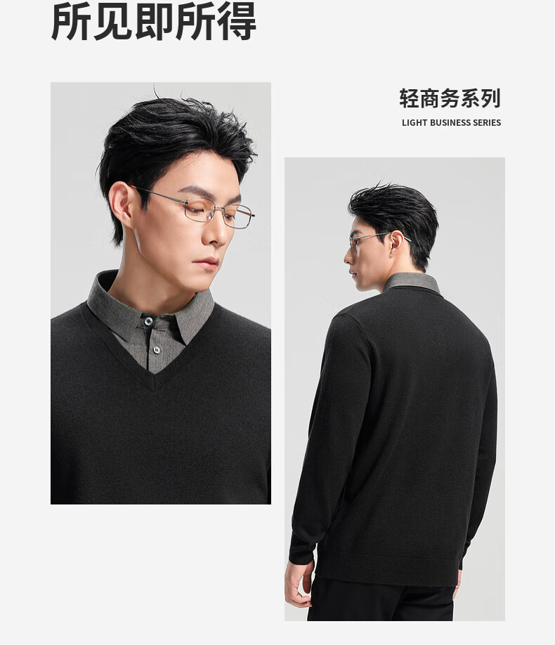 SHANSHAN杉杉【可机洗】绵羊毛衫男秋冬厚款假两件翻领针织衫男士毛衣 黑色 XL /180