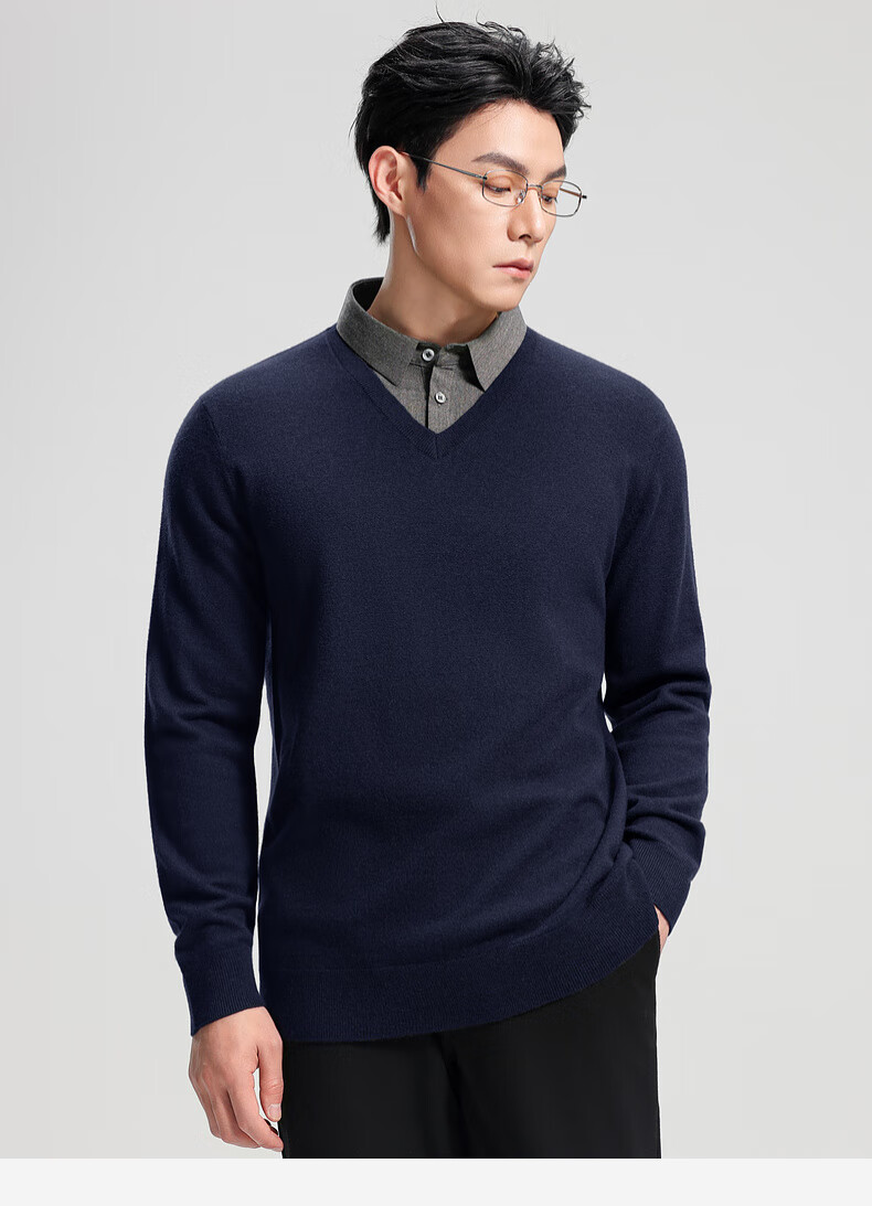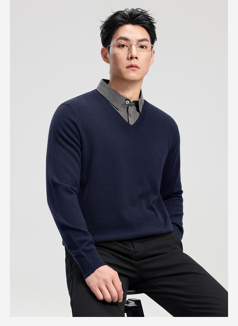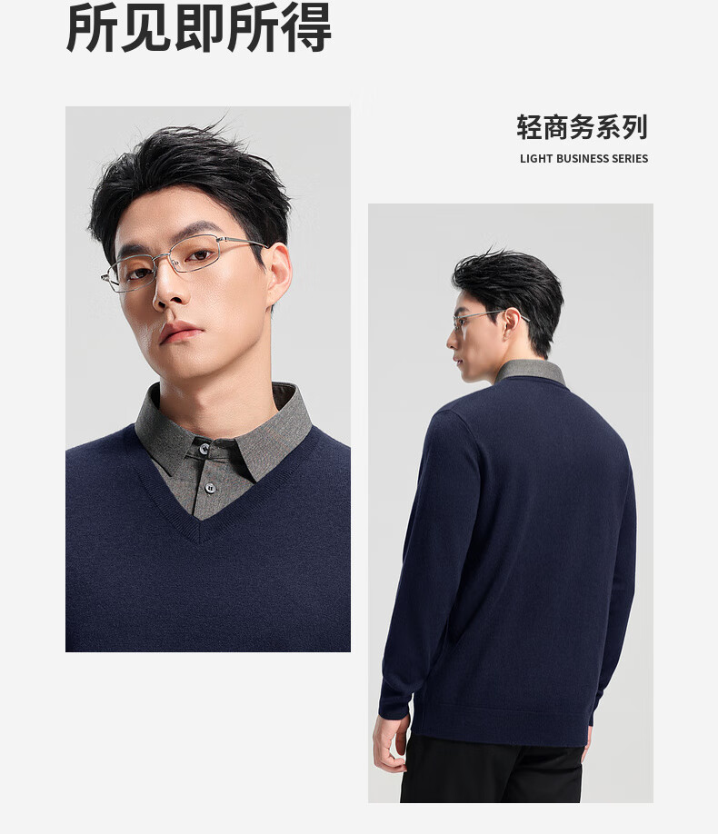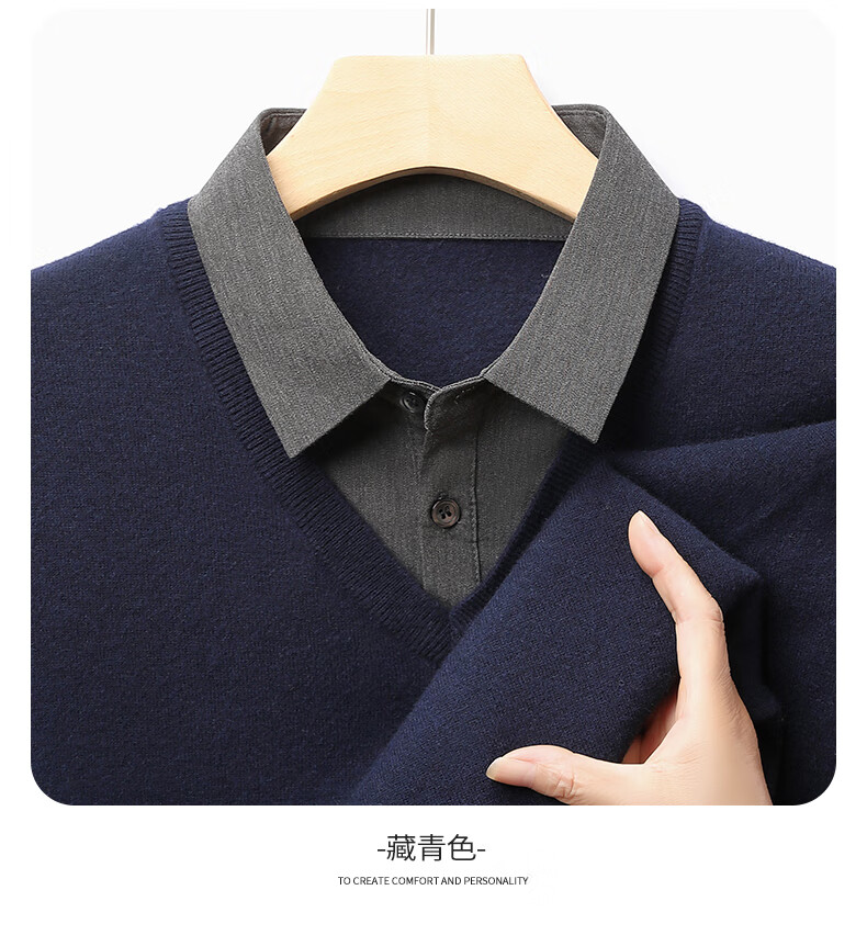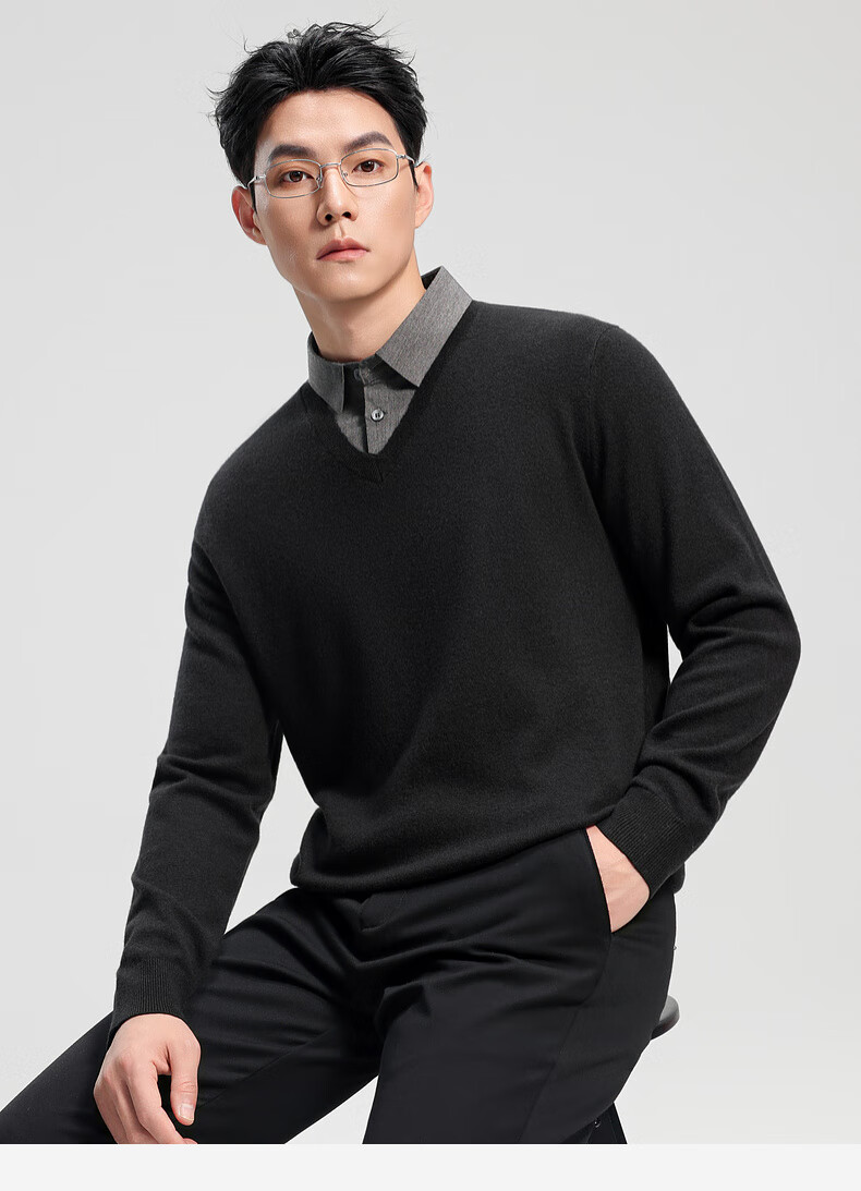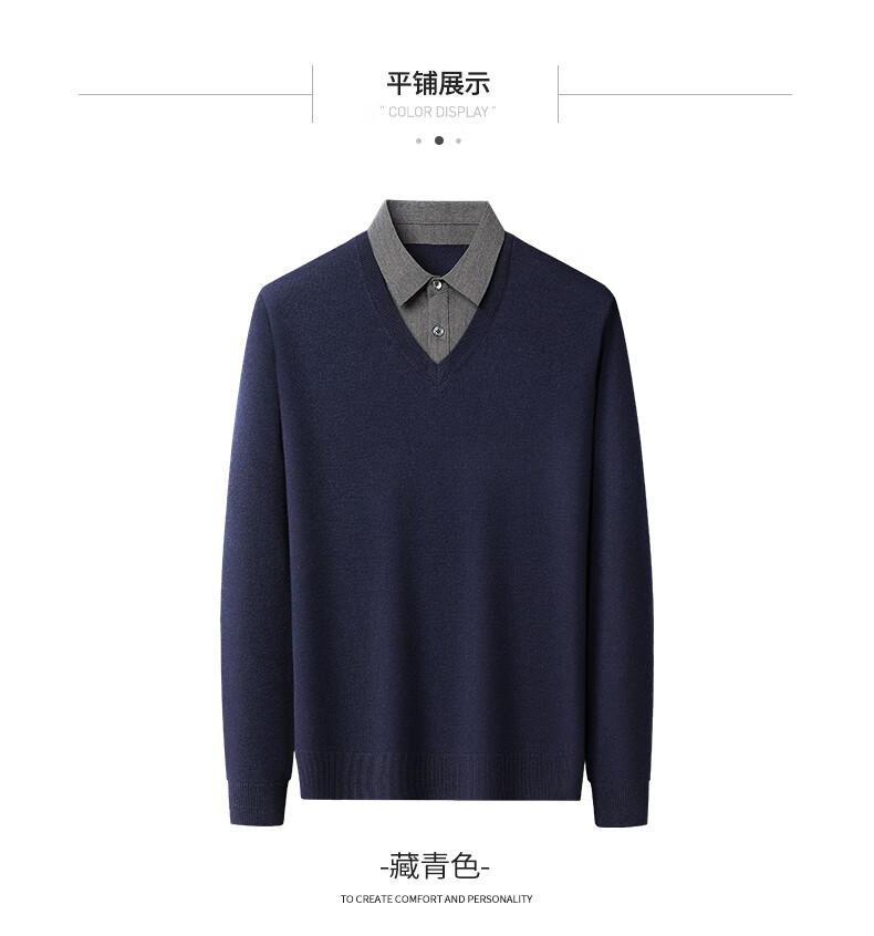SHANSHAN杉杉【可机洗】绵羊毛衫男秋冬厚款假两件翻领针织衫男士毛衣 黑色 XL /180