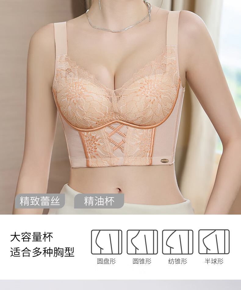 爱戴院线级调整型聚拢显大内衣女马甲收腹薄款透气无钢圈收副乳文胸 奶杏色 75B