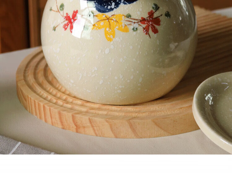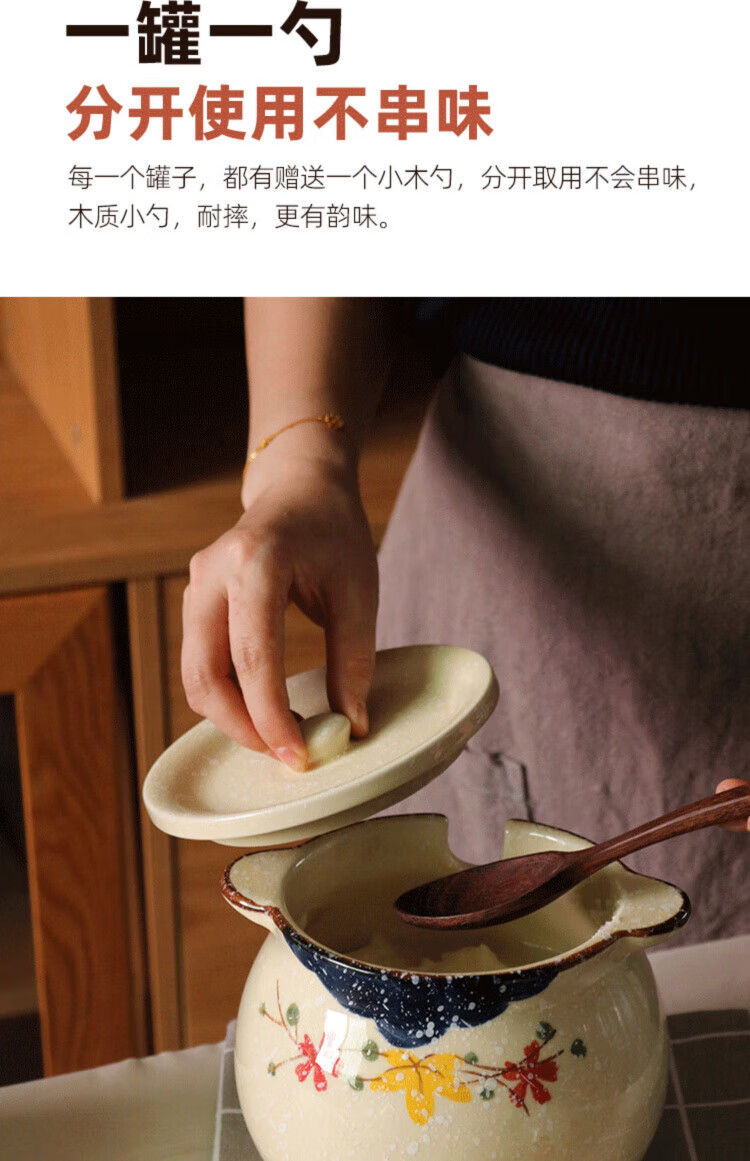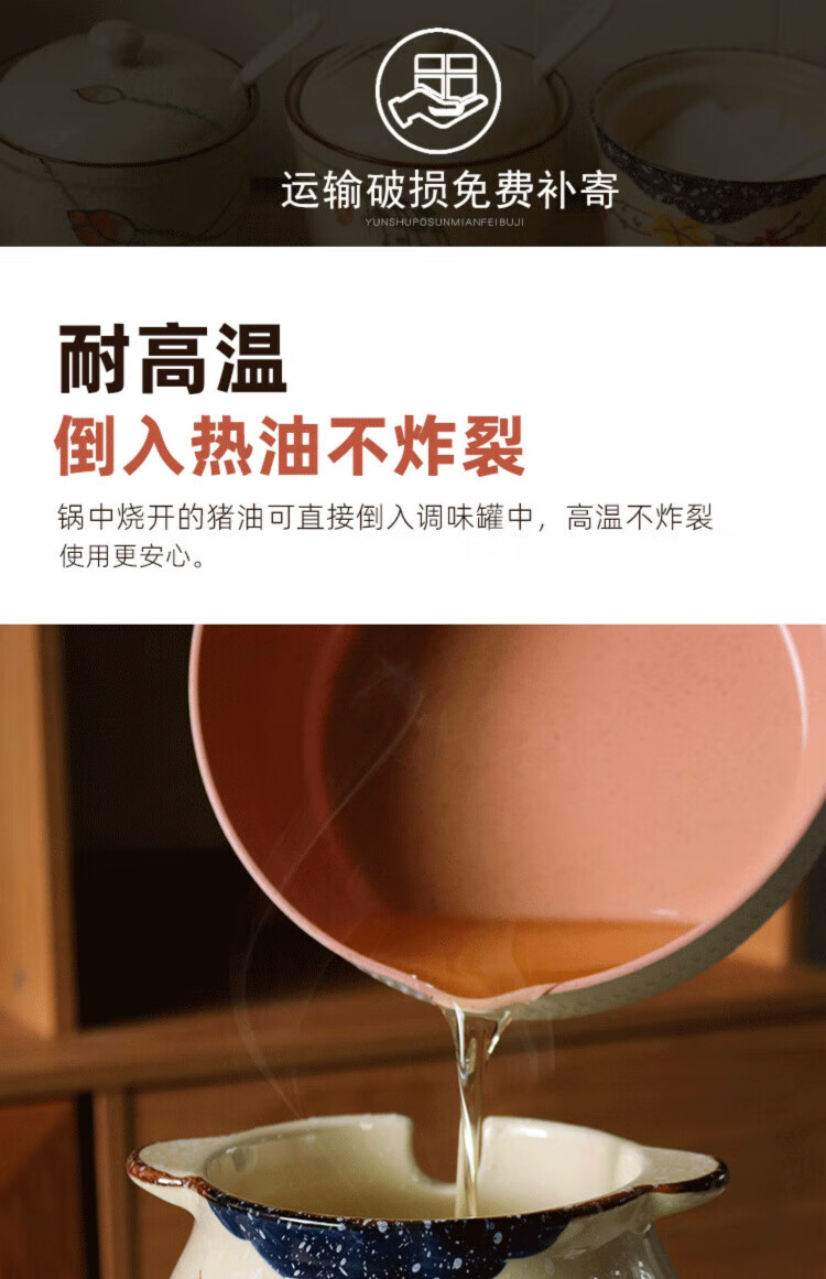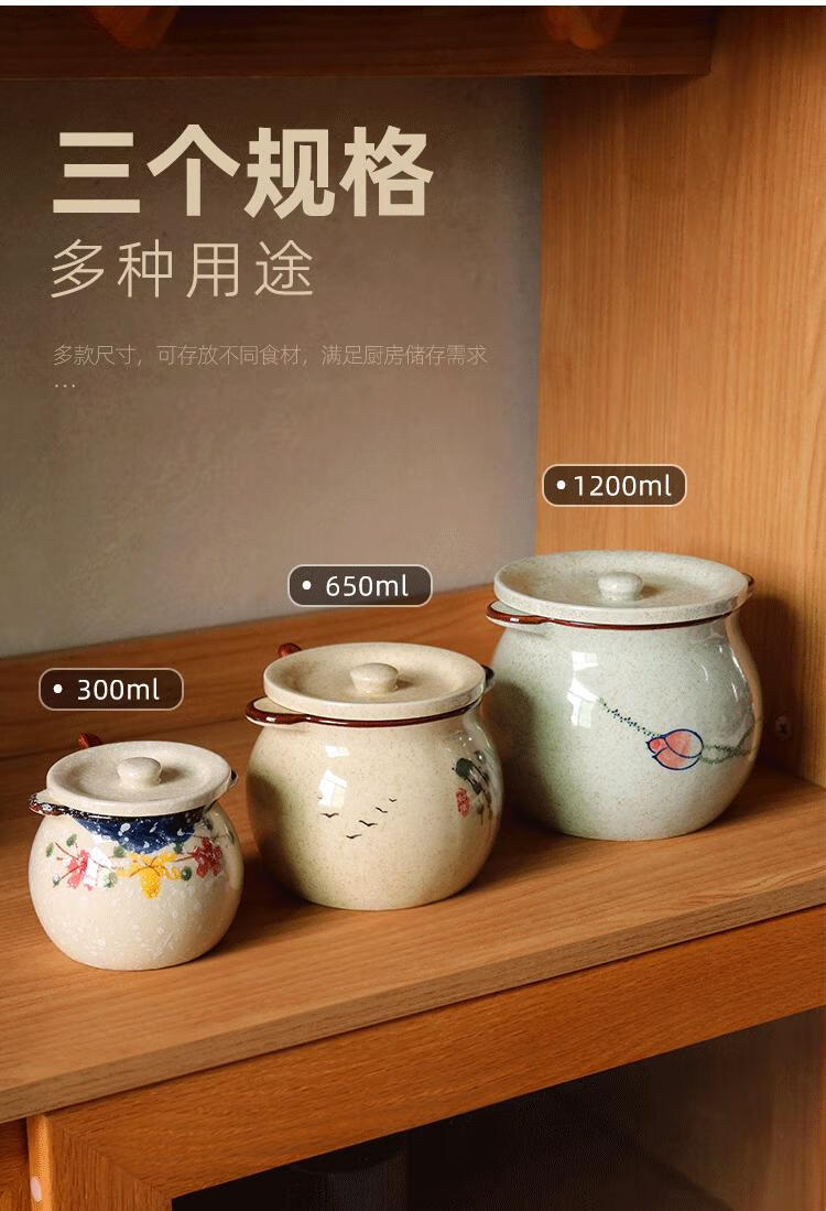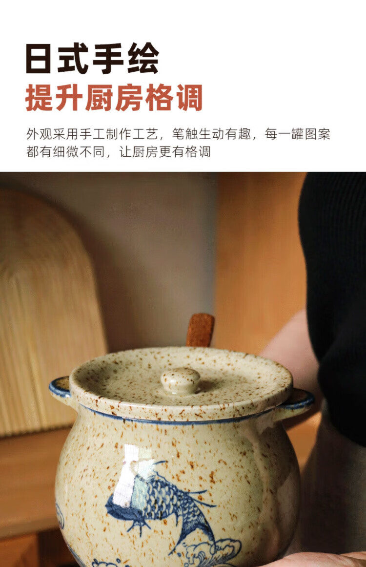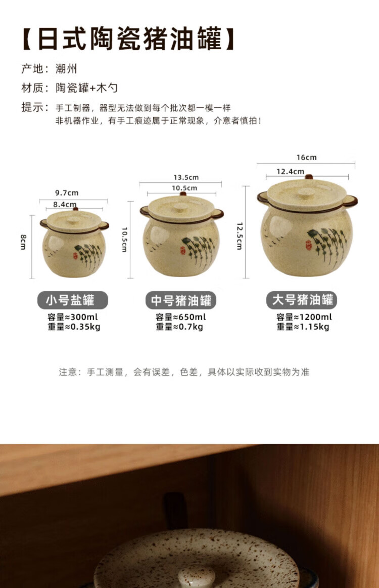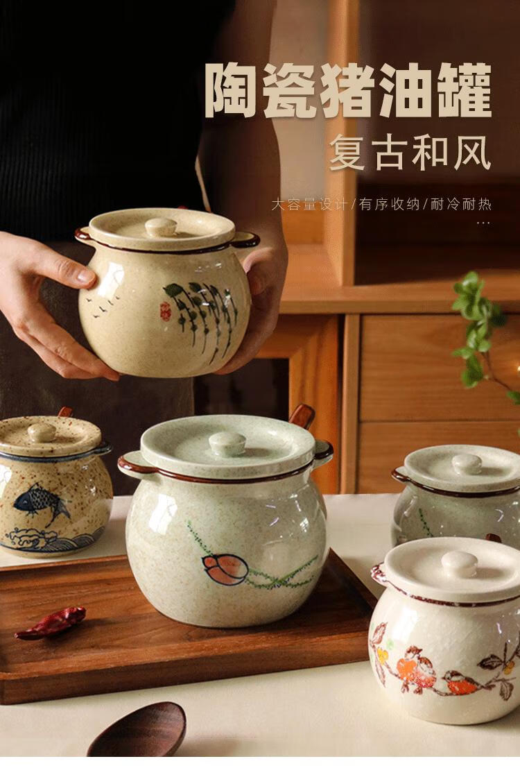 WCZ德国猪油罐陶瓷油泼辣子辣椒罐家用厨房盐罐子调味调料品罐滤网 升级款木提手-中号福鱼油罐1斤装-650ml