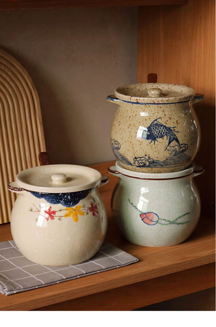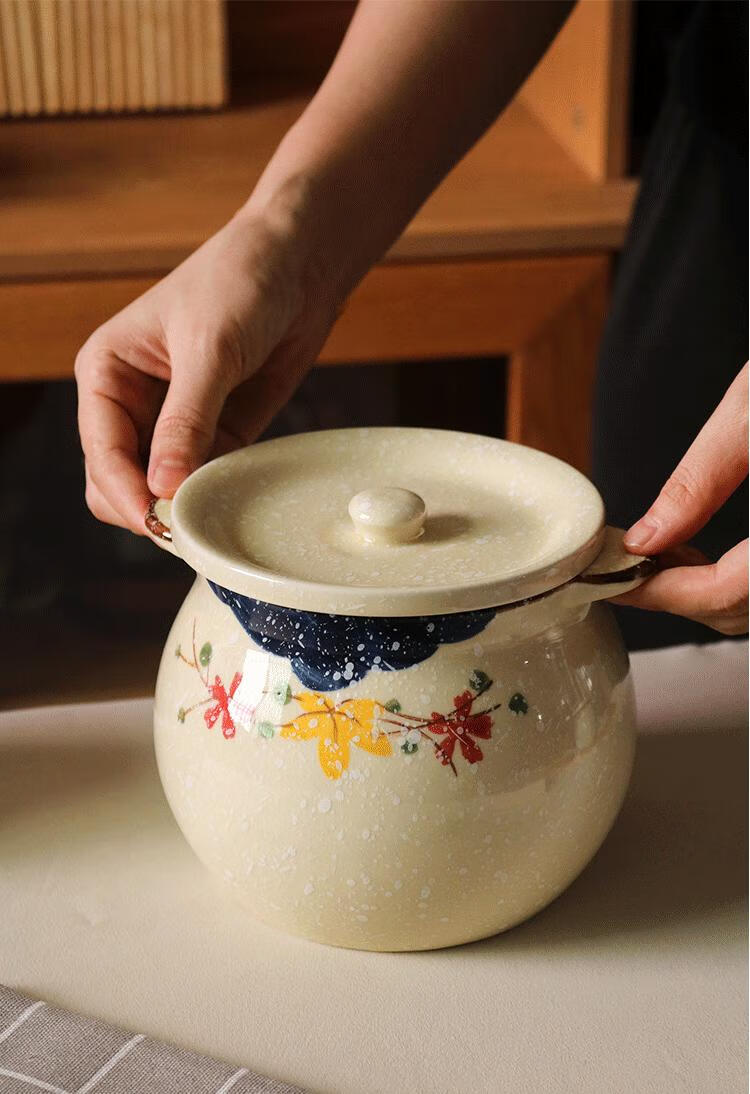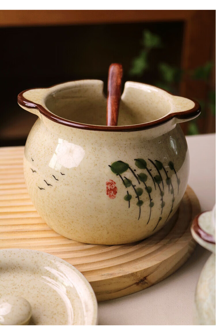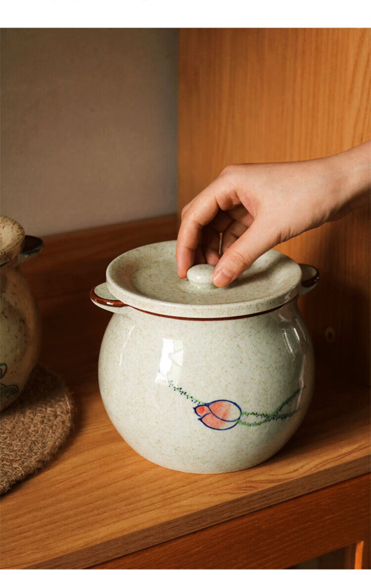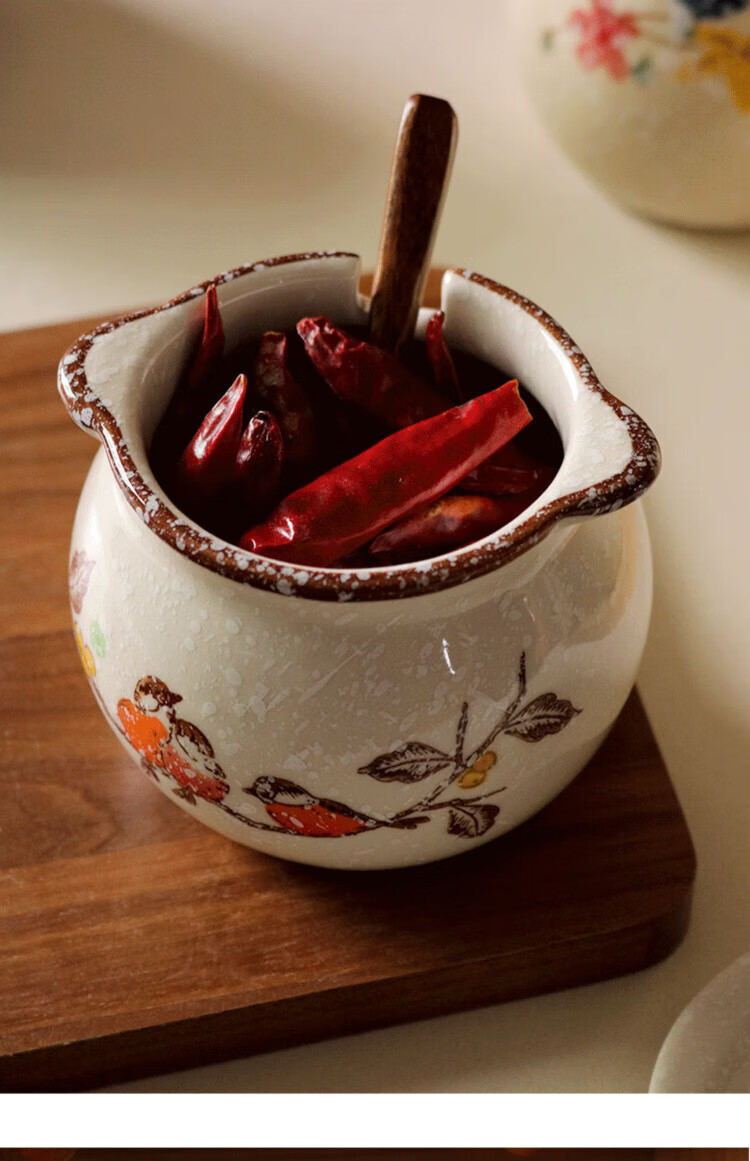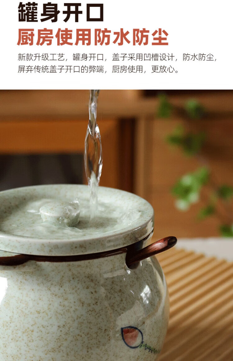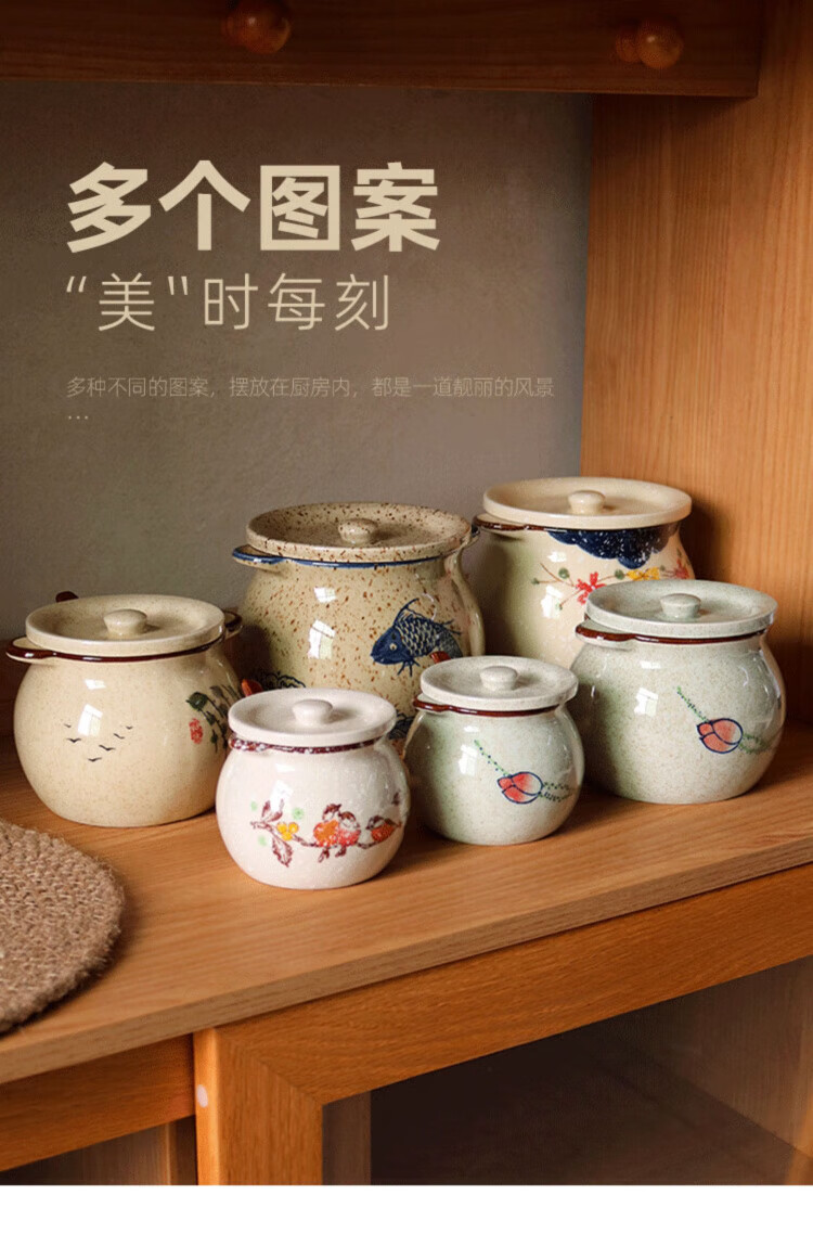 WCZ德国猪油罐陶瓷油泼辣子辣椒罐家用厨房盐罐子调味调料品罐滤网 升级款木提手-中号福鱼油罐1斤装-650ml
