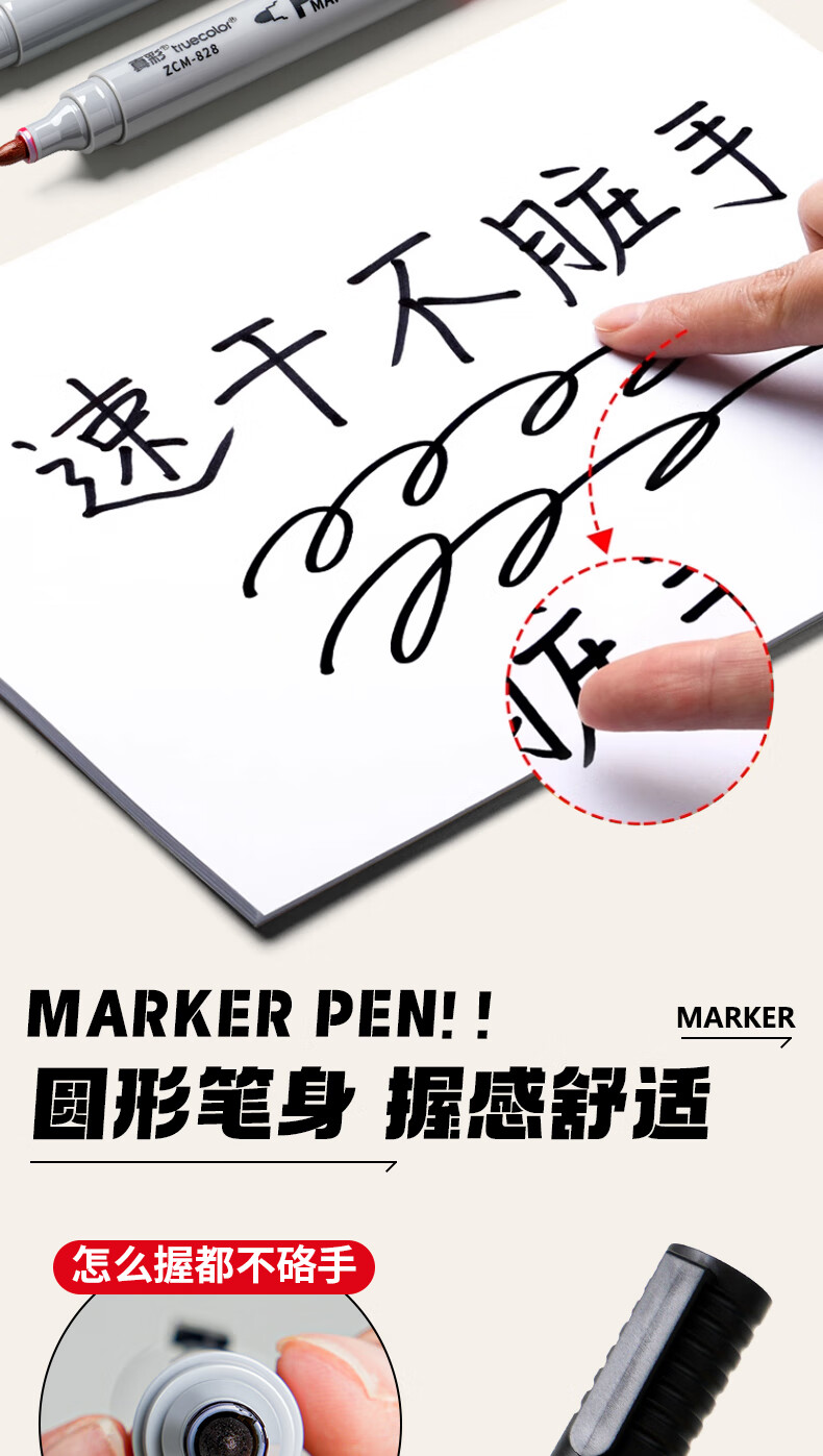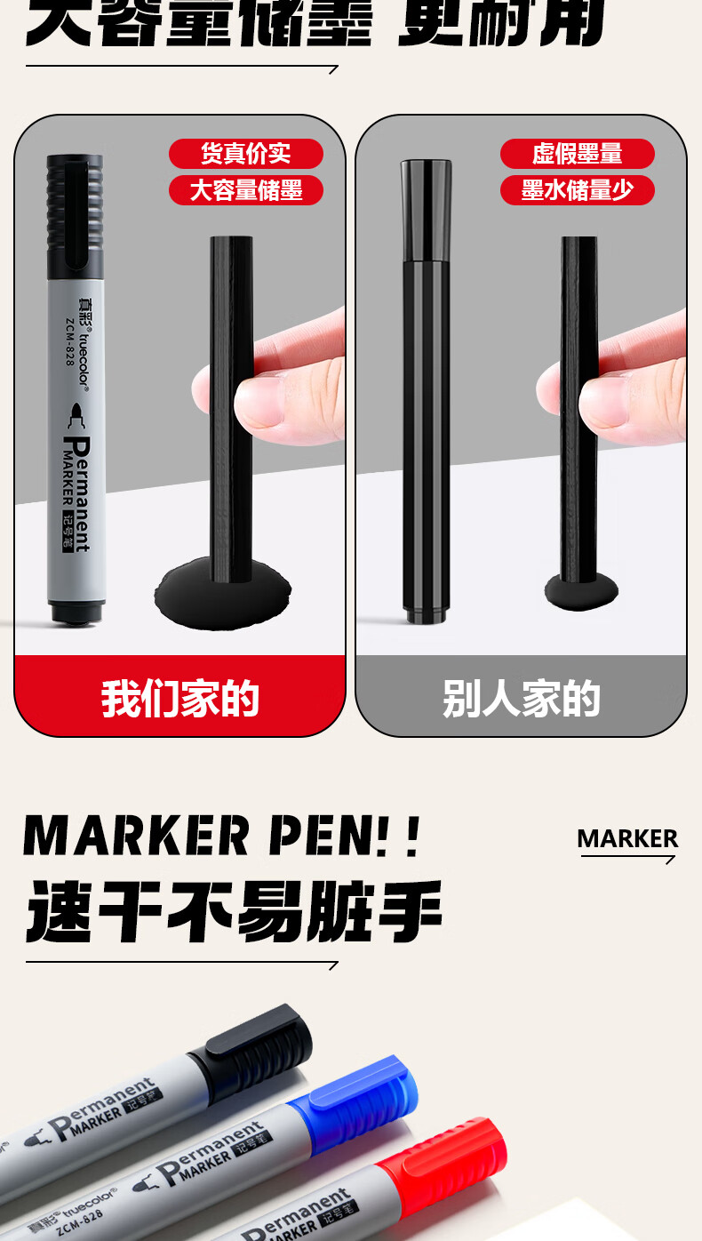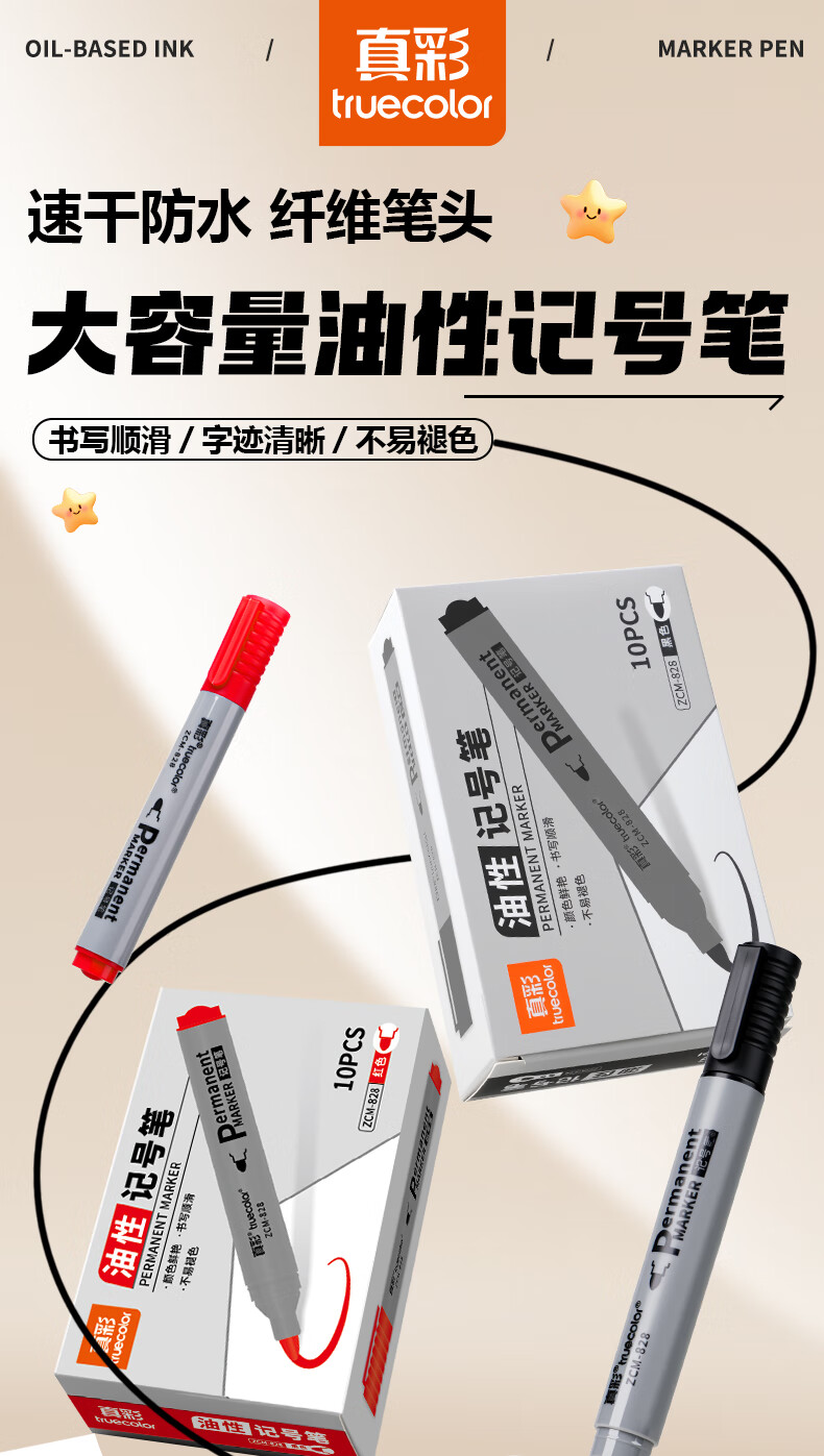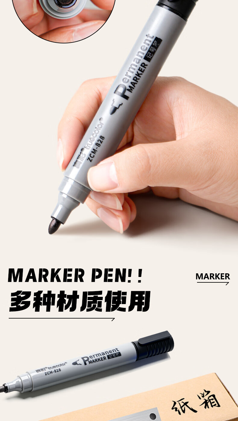 真彩(TRUECOLOR)记号笔黑色粗头大容量油性笔工地速干防水不掉色大头学生用美术快递涂码物流办公用10支装ZCM-828