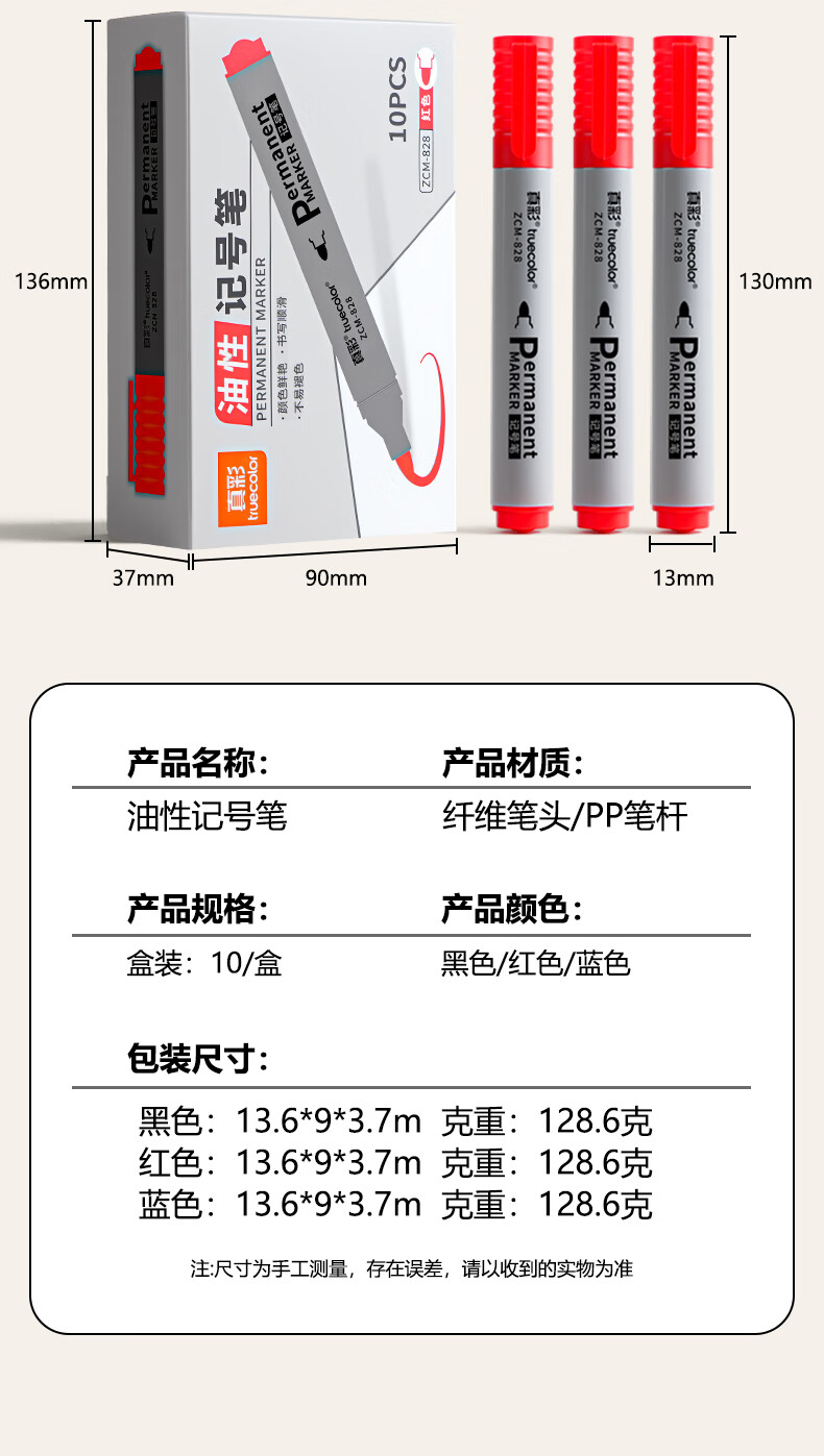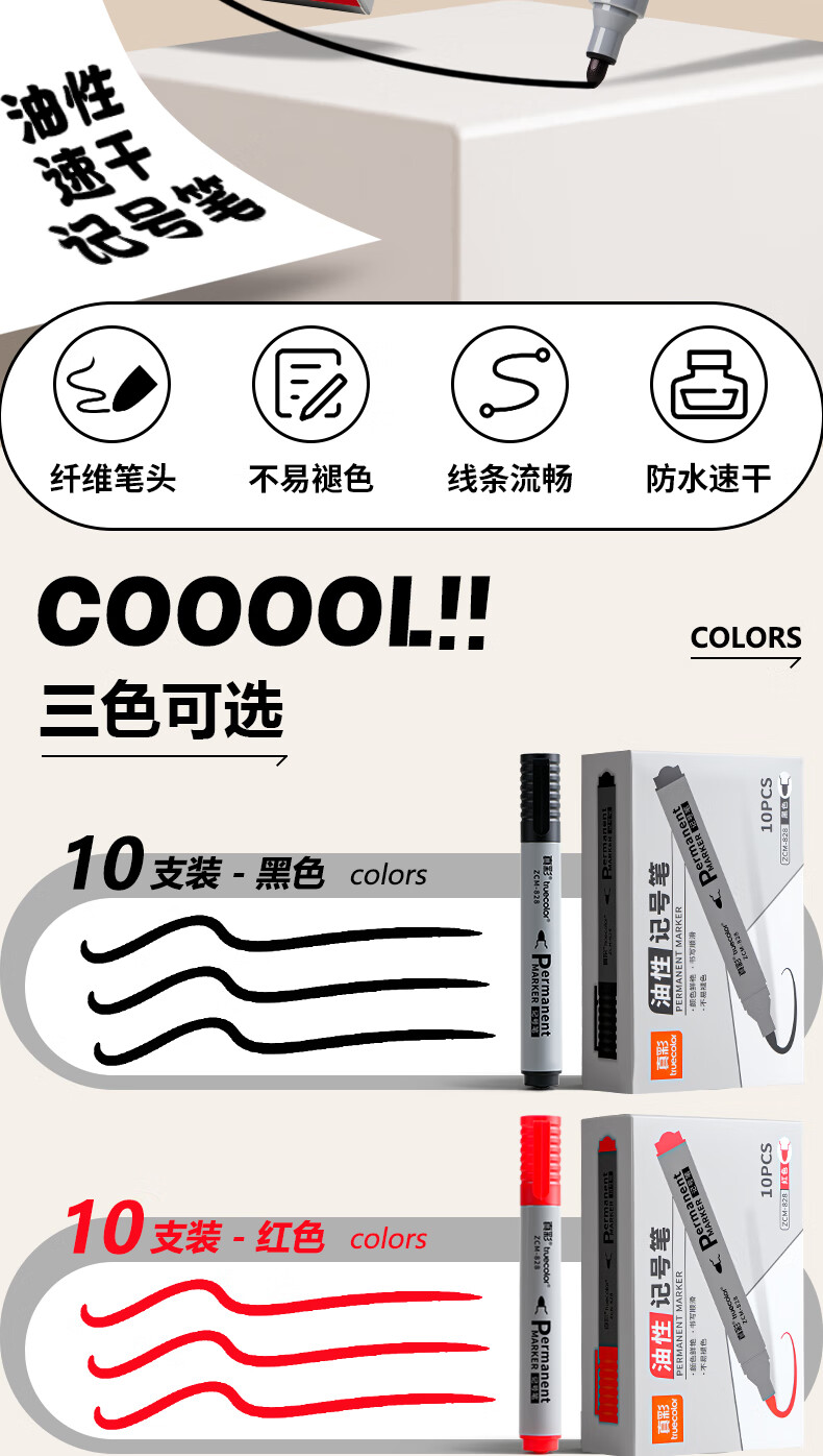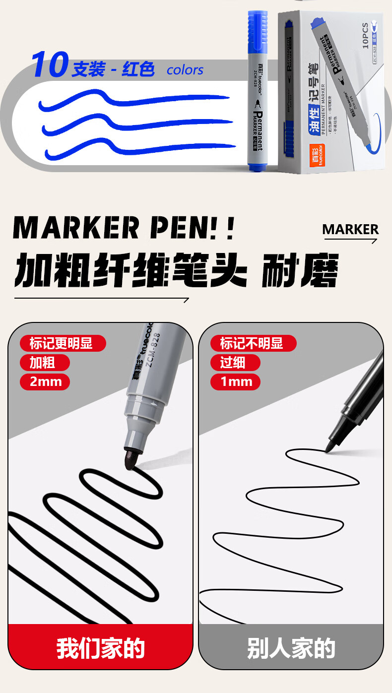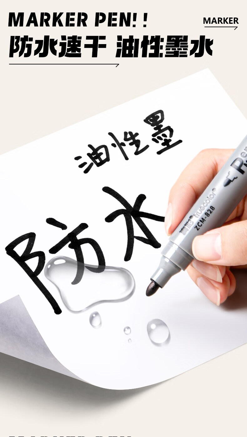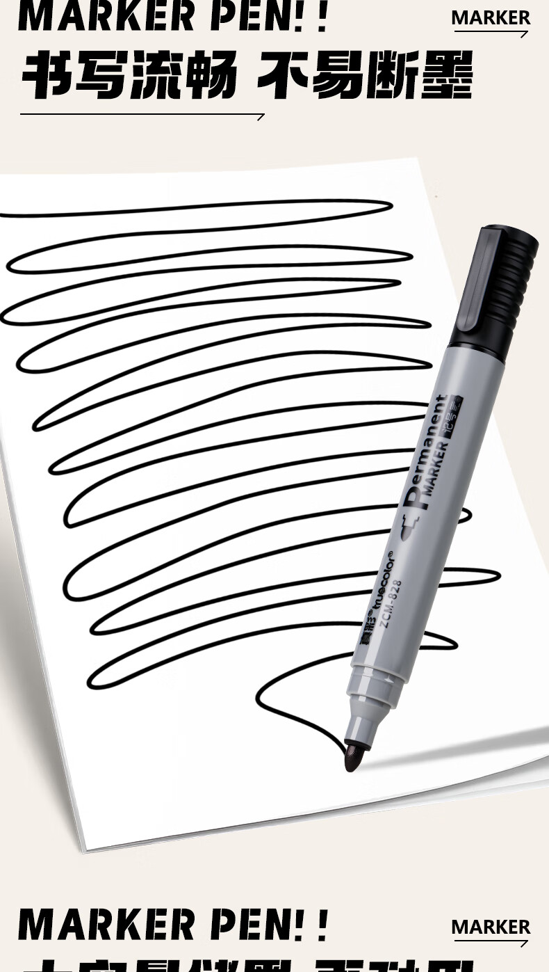 真彩(TRUECOLOR)记号笔黑色粗头大容量油性笔工地速干防水不掉色大头学生用美术快递涂码物流办公用10支装ZCM-828