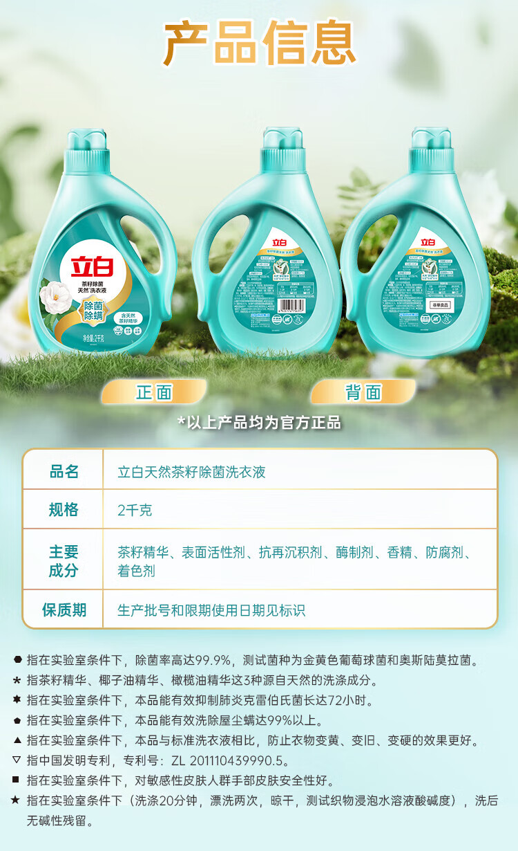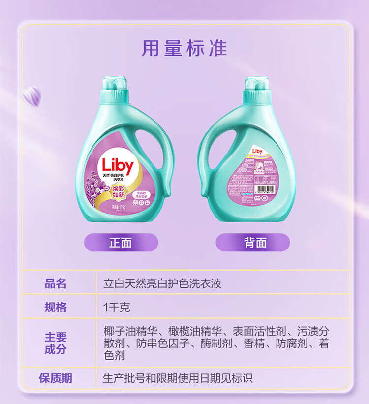 立白亮白护色天然洗衣液薰衣草香/茶籽除菌/大师香氛洗衣液 【薰衣草香2斤】1kg*1瓶