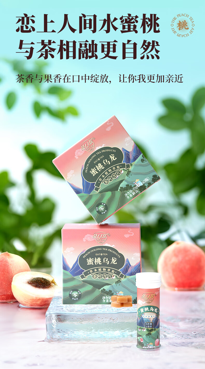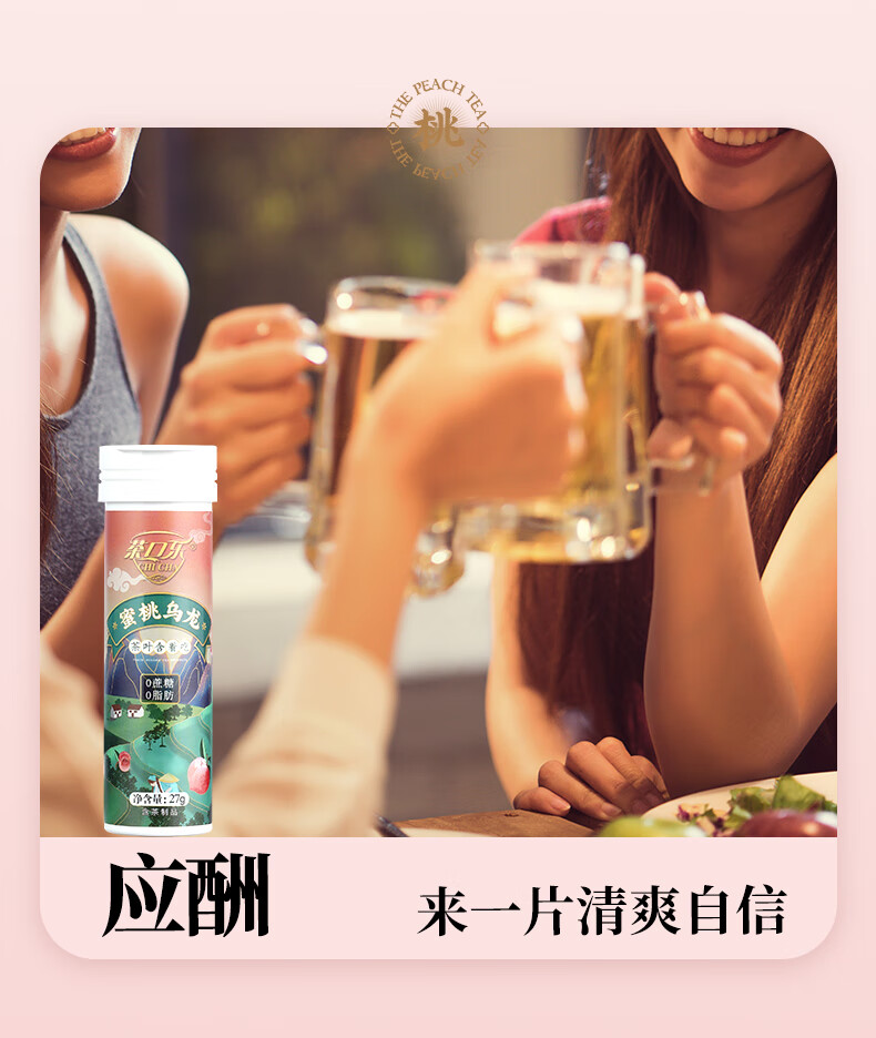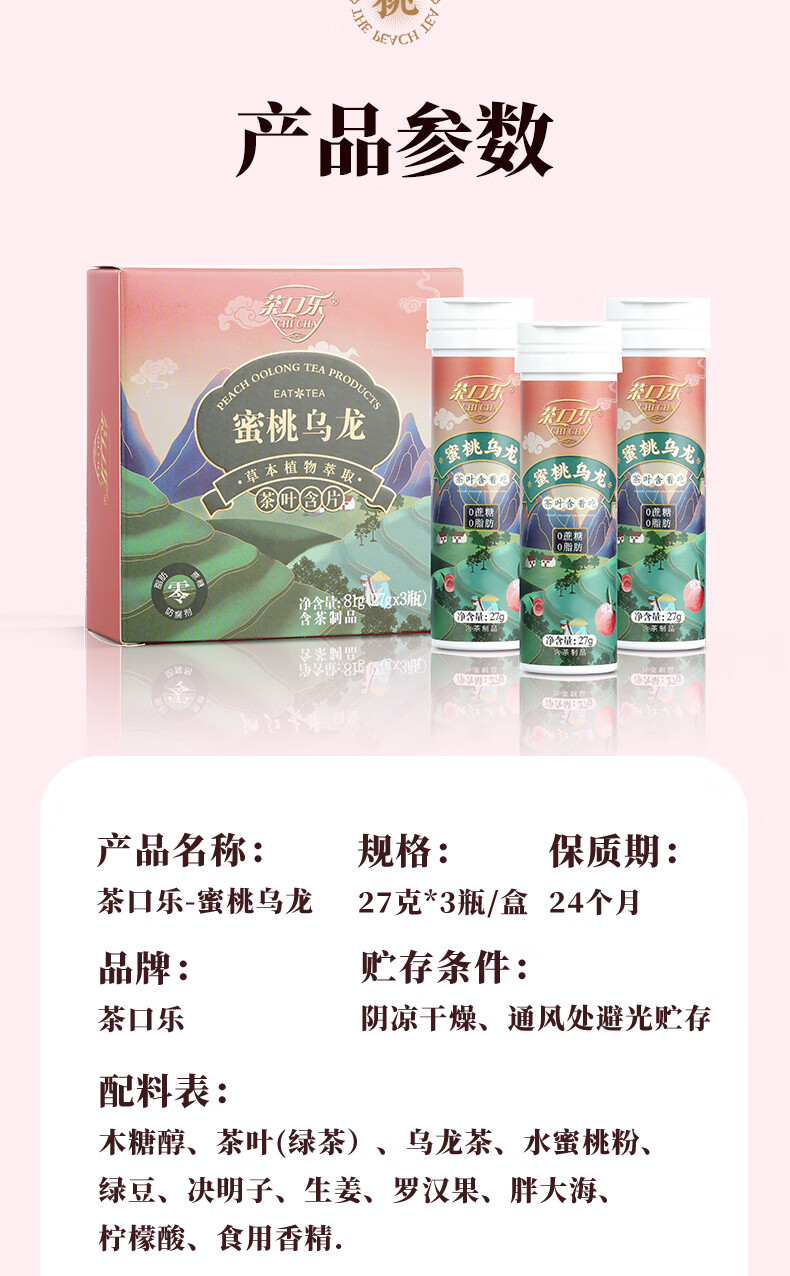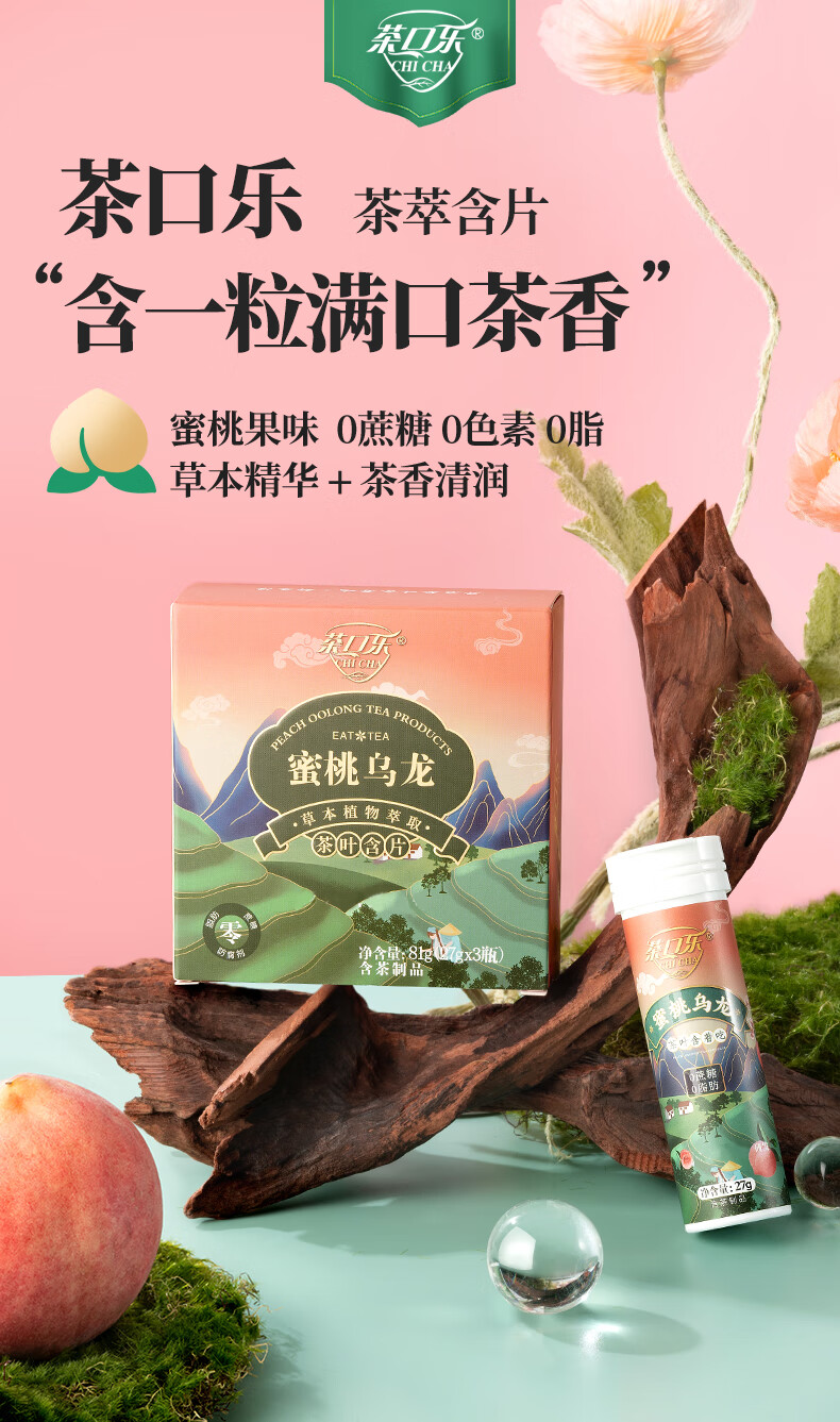 茶口乐茶含片植物萃取清新口气0糖0脂润喉糖【蜜桃乌龙】27g/瓶