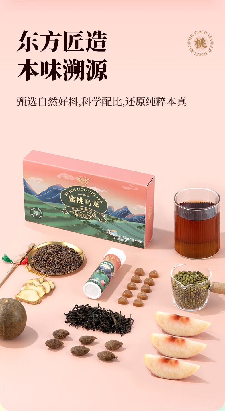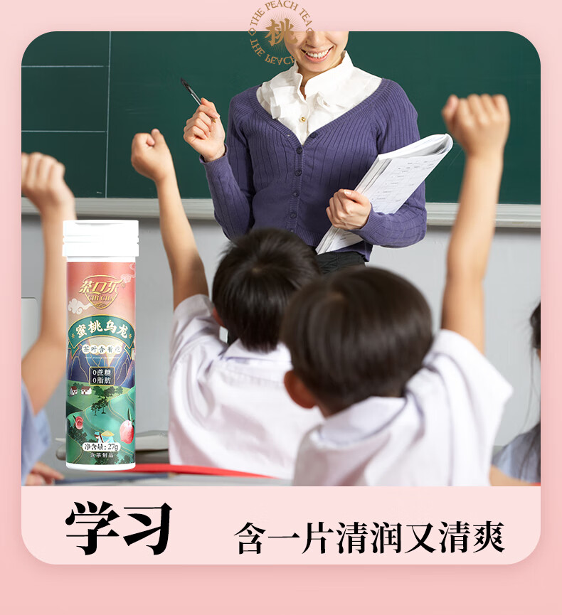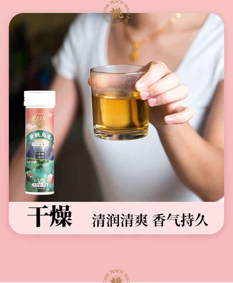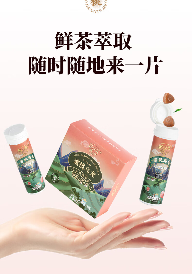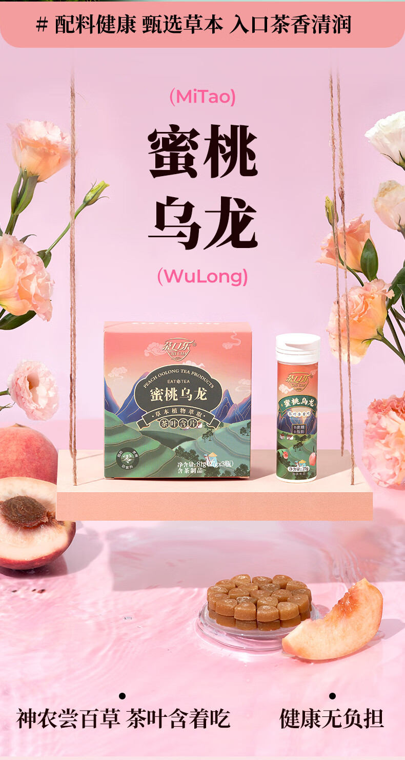 茶口乐茶含片植物萃取清新口气0糖0脂润喉糖【蜜桃乌龙】27g/瓶
