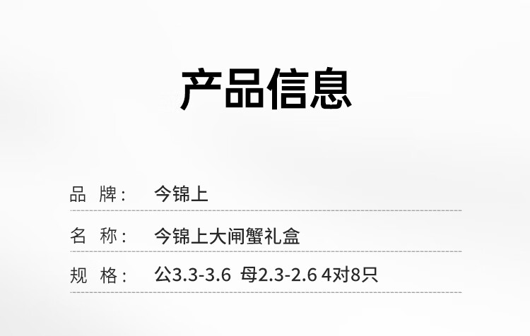 【活蟹】今锦上大闸蟹鲜活螃蟹礼盒公3.3-3.6两母2.3-2.6两4对8只精品礼盒礼品去绳足重