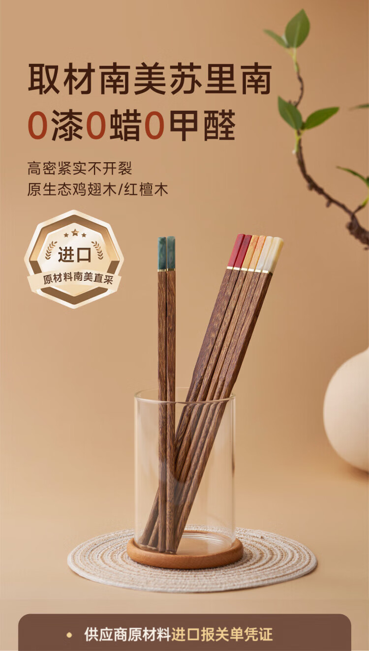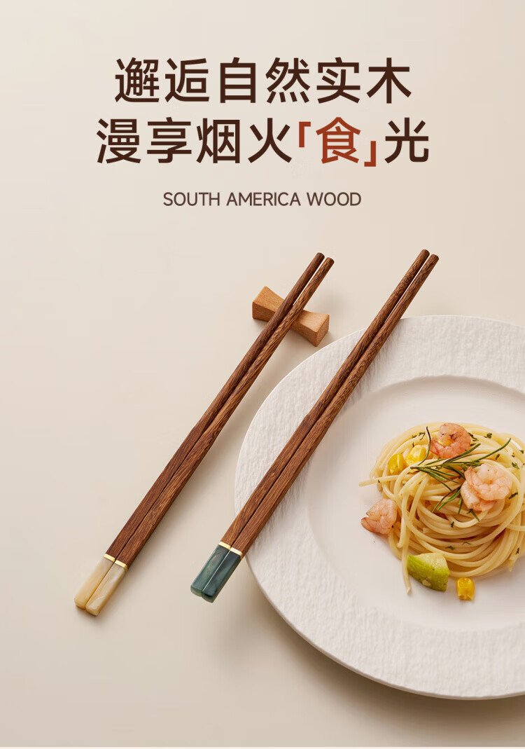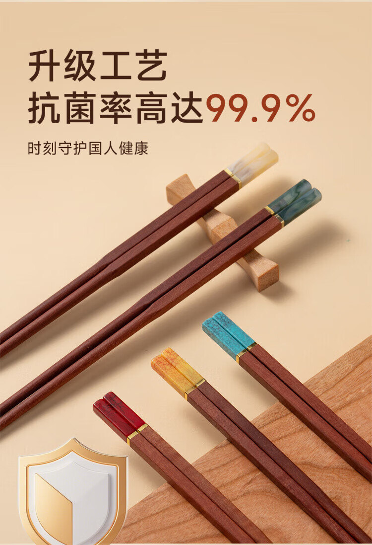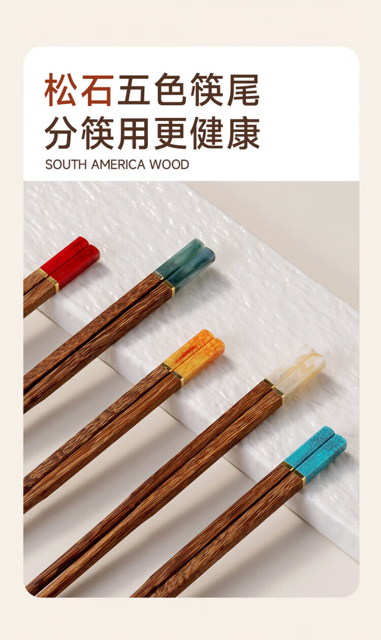 WCZ德国高端鸡翅木筷子家用无漆无蜡红檀木防滑实木快子套装 鸡翅木五色松石1盒 5双
