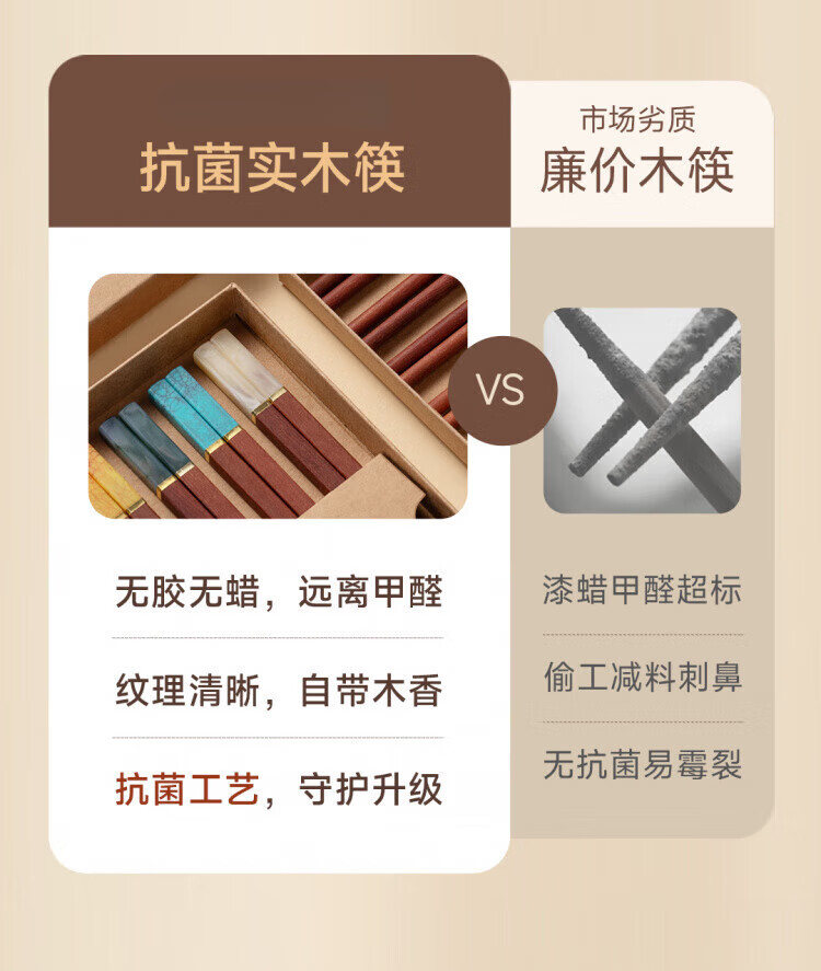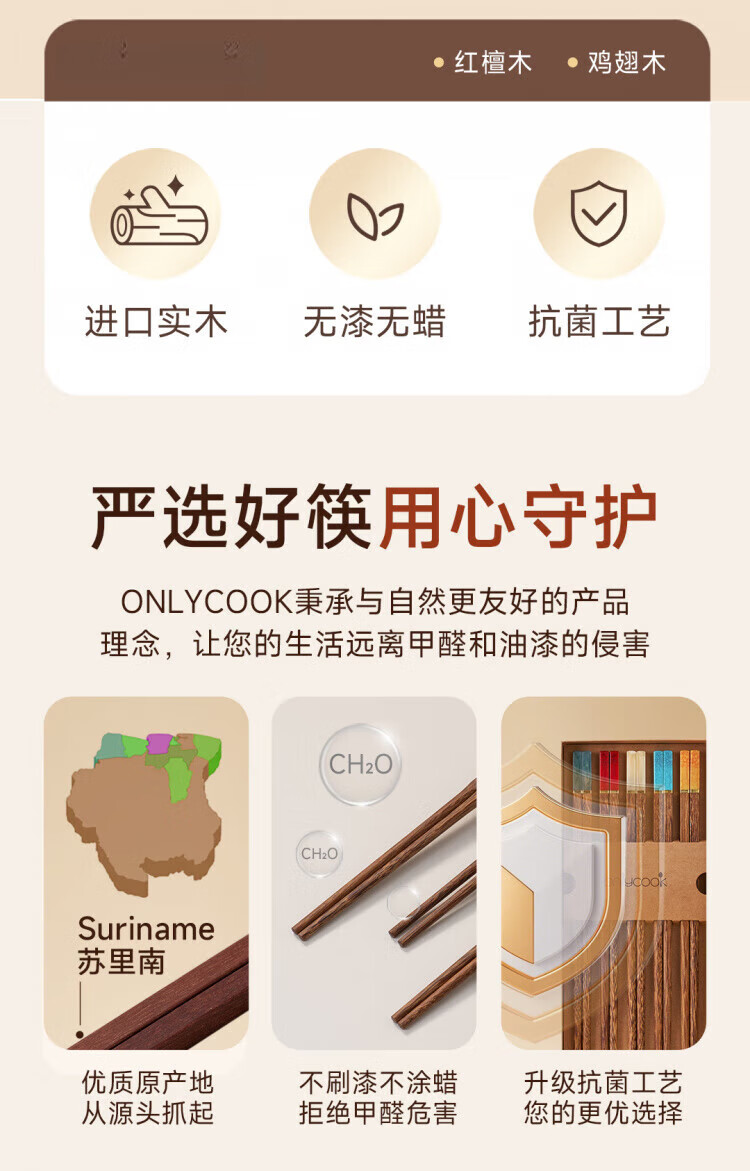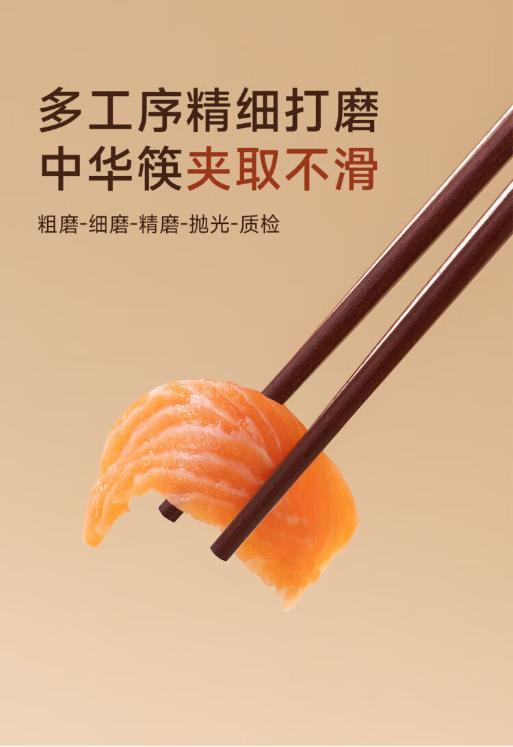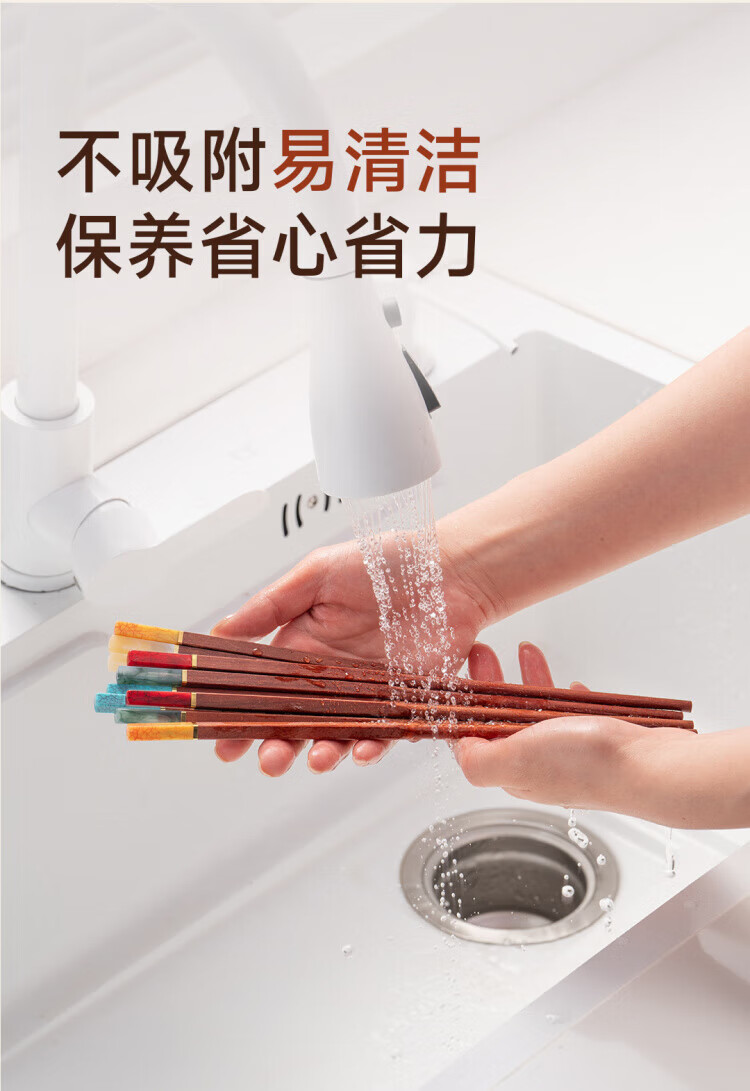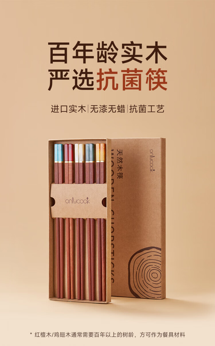 WCZ德国高端鸡翅木筷子家用无漆无蜡红檀木防滑实木快子套装 鸡翅木五色松石1盒 5双