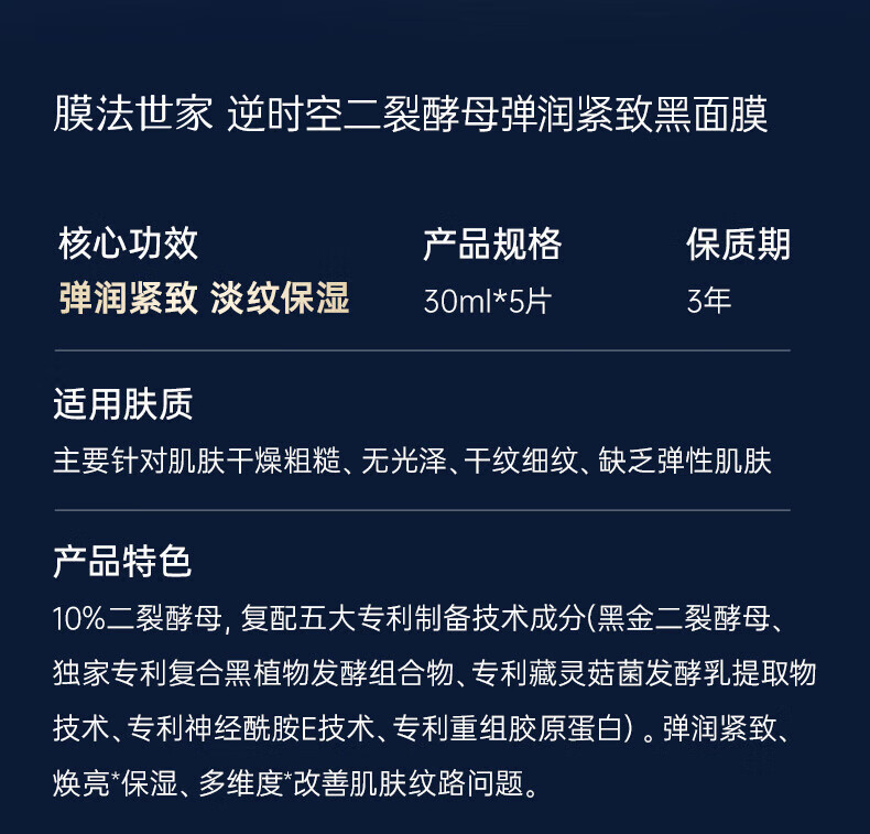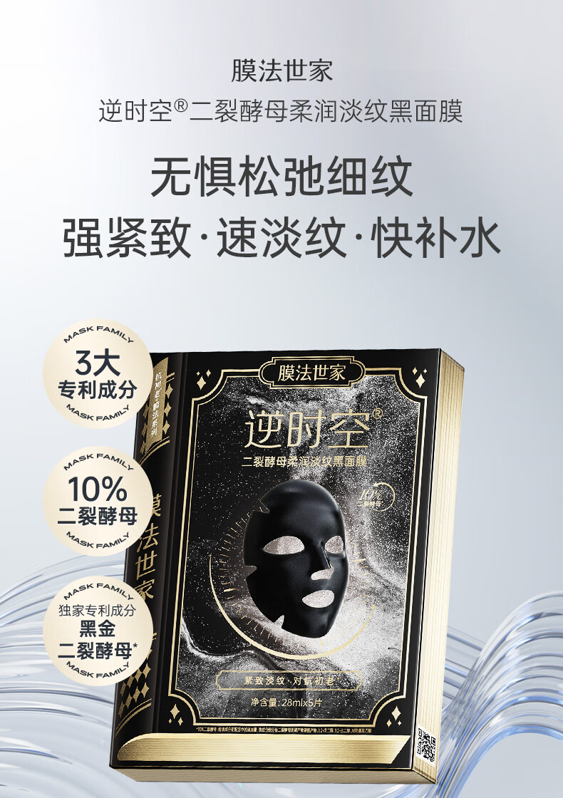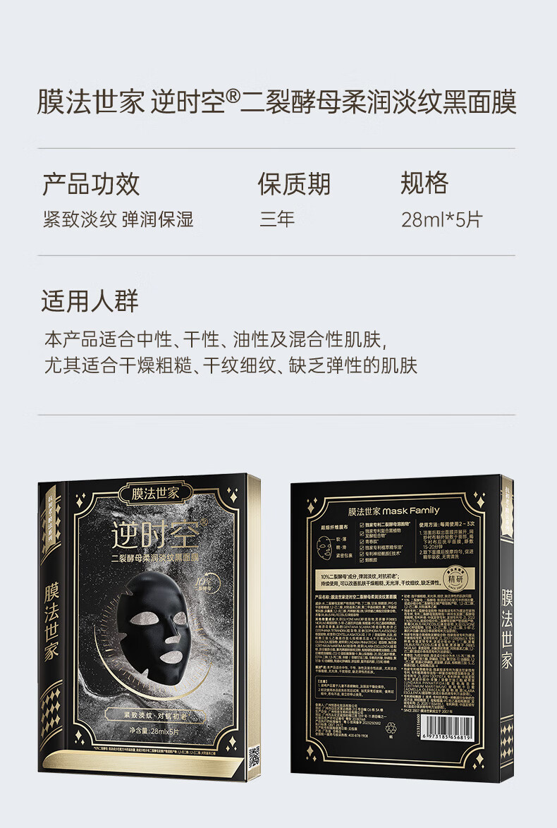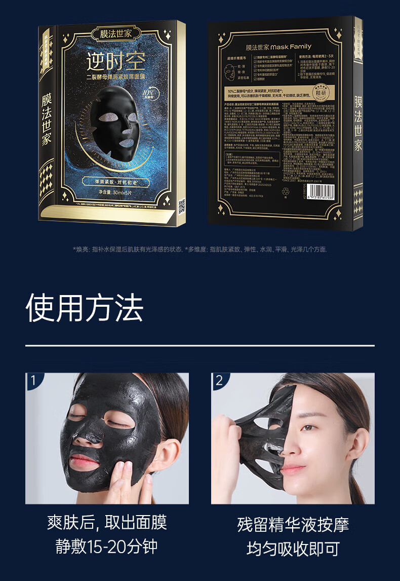 膜法世家面膜二裂酵母抗皱紧致淡纹提亮熬夜补水保湿逆时空魔法世家黑面膜 10%二裂酵母面膜15片