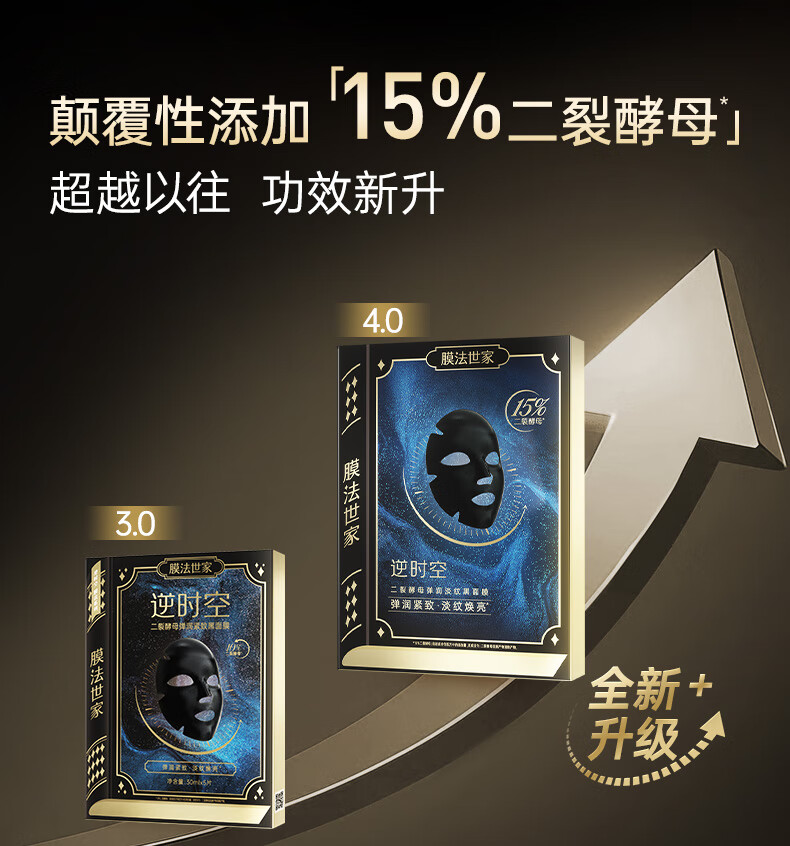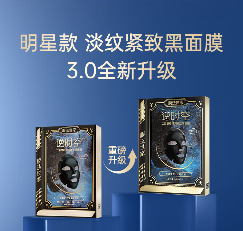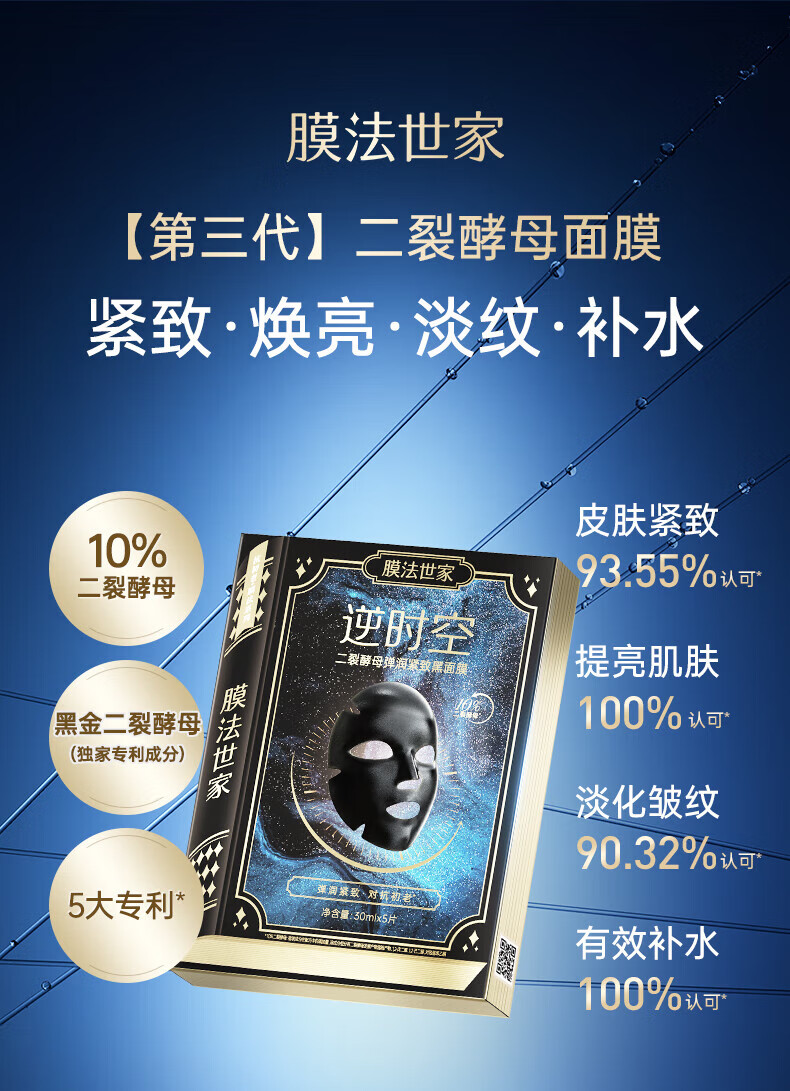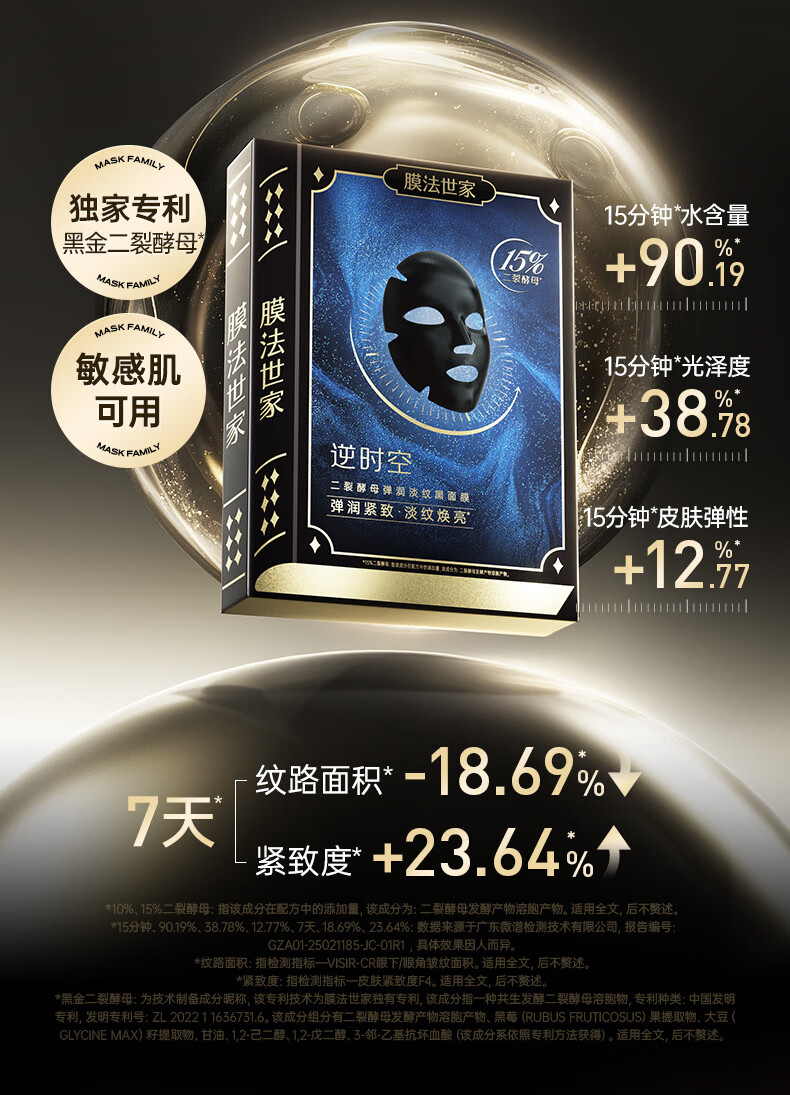 膜法世家面膜二裂酵母抗皱紧致淡纹提亮熬夜补水保湿逆时空魔法世家黑面膜 10%二裂酵母面膜15片