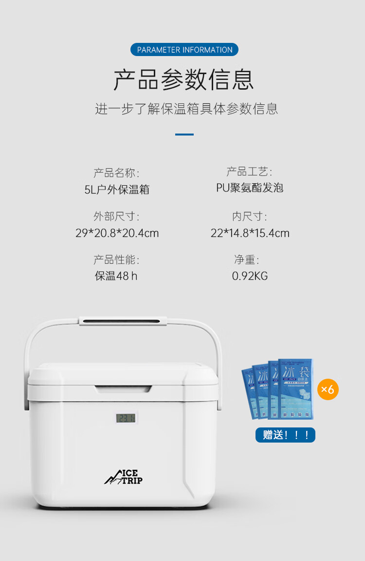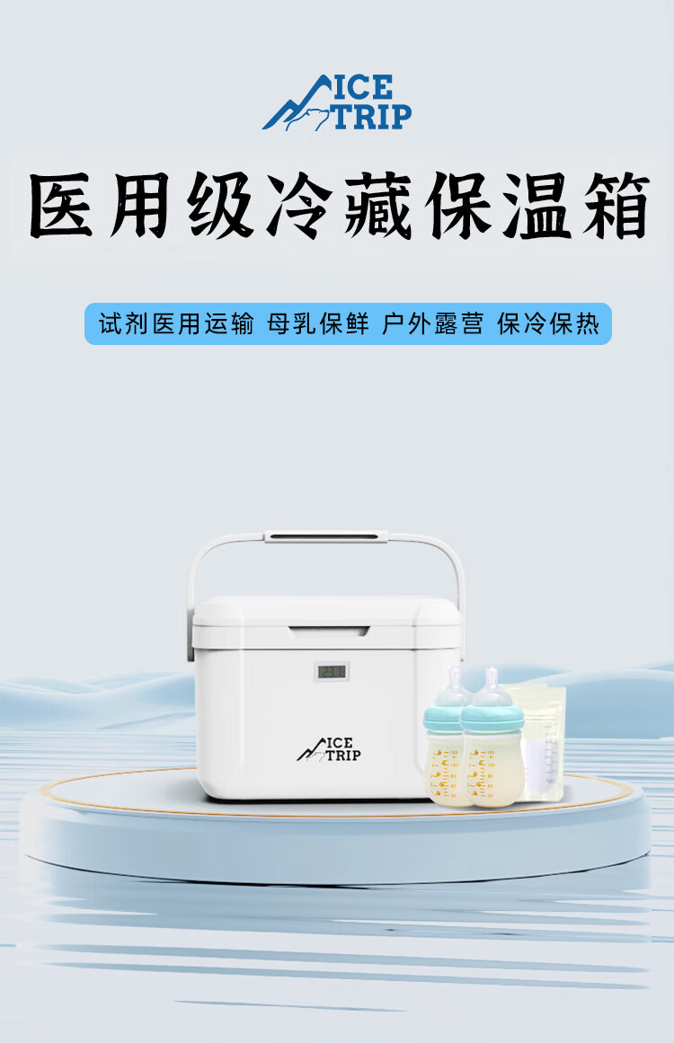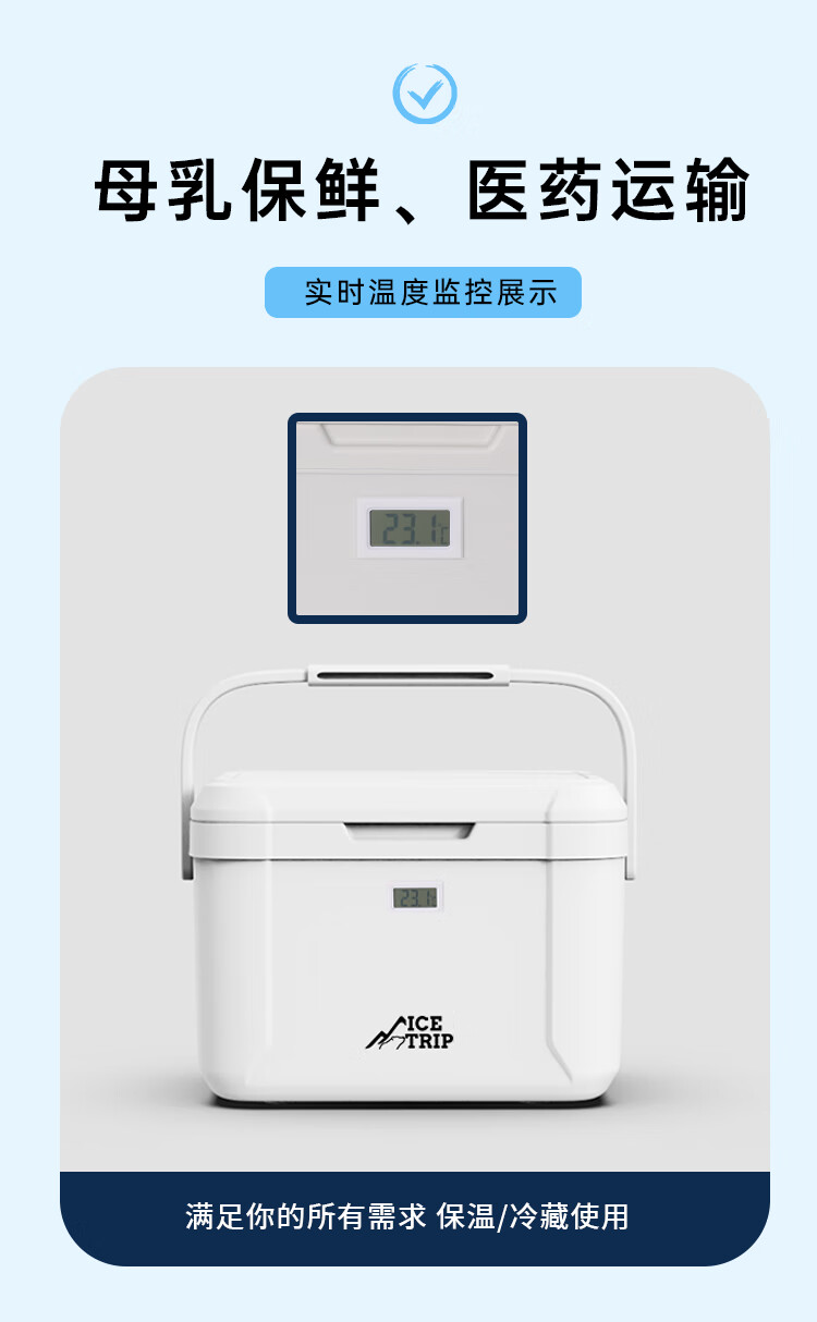 Ice trip医用保温箱冷藏母乳恒温药品转运箱户外露营箱房车用品温显5L