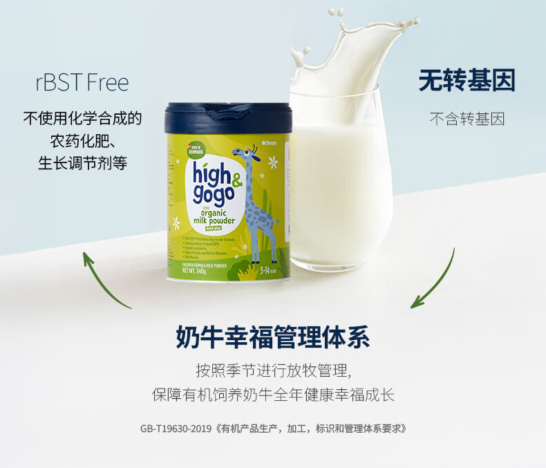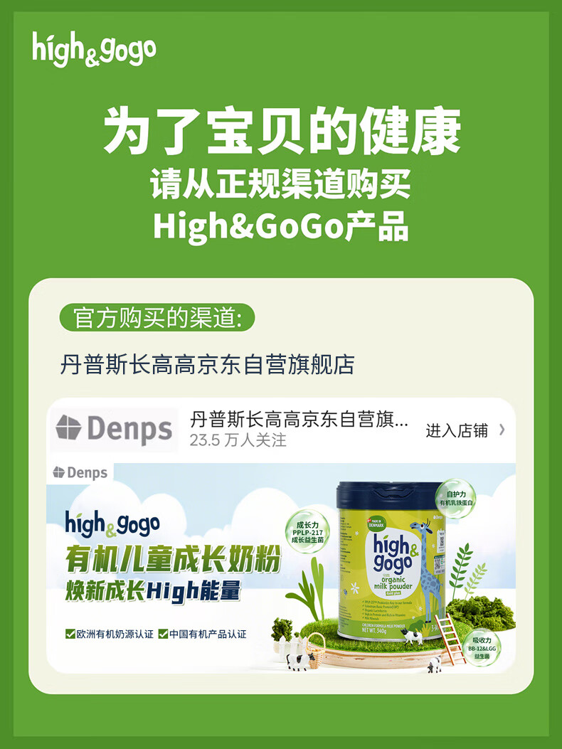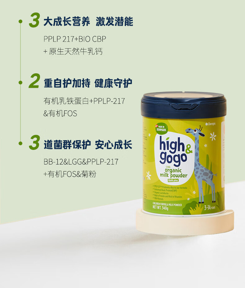 DENPS丹普斯长高高 有机儿童奶粉(3-14岁)乳铁蛋白 骨骼发育 340g/罐