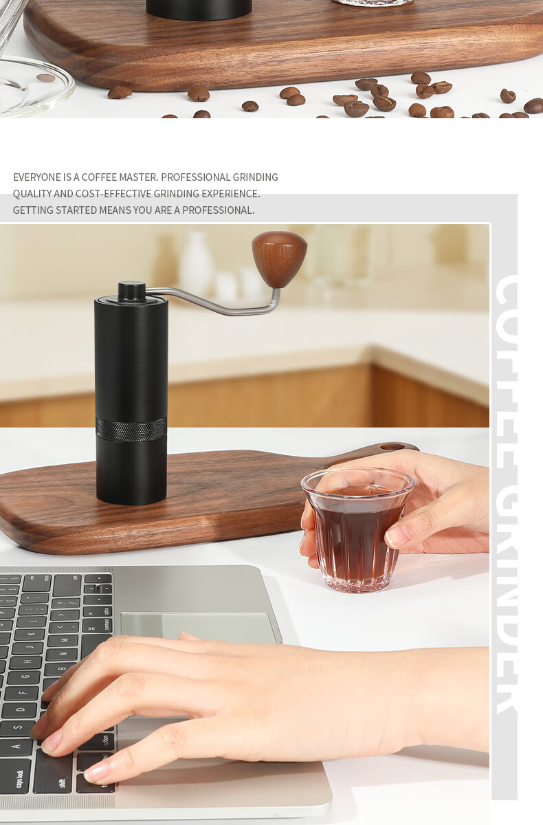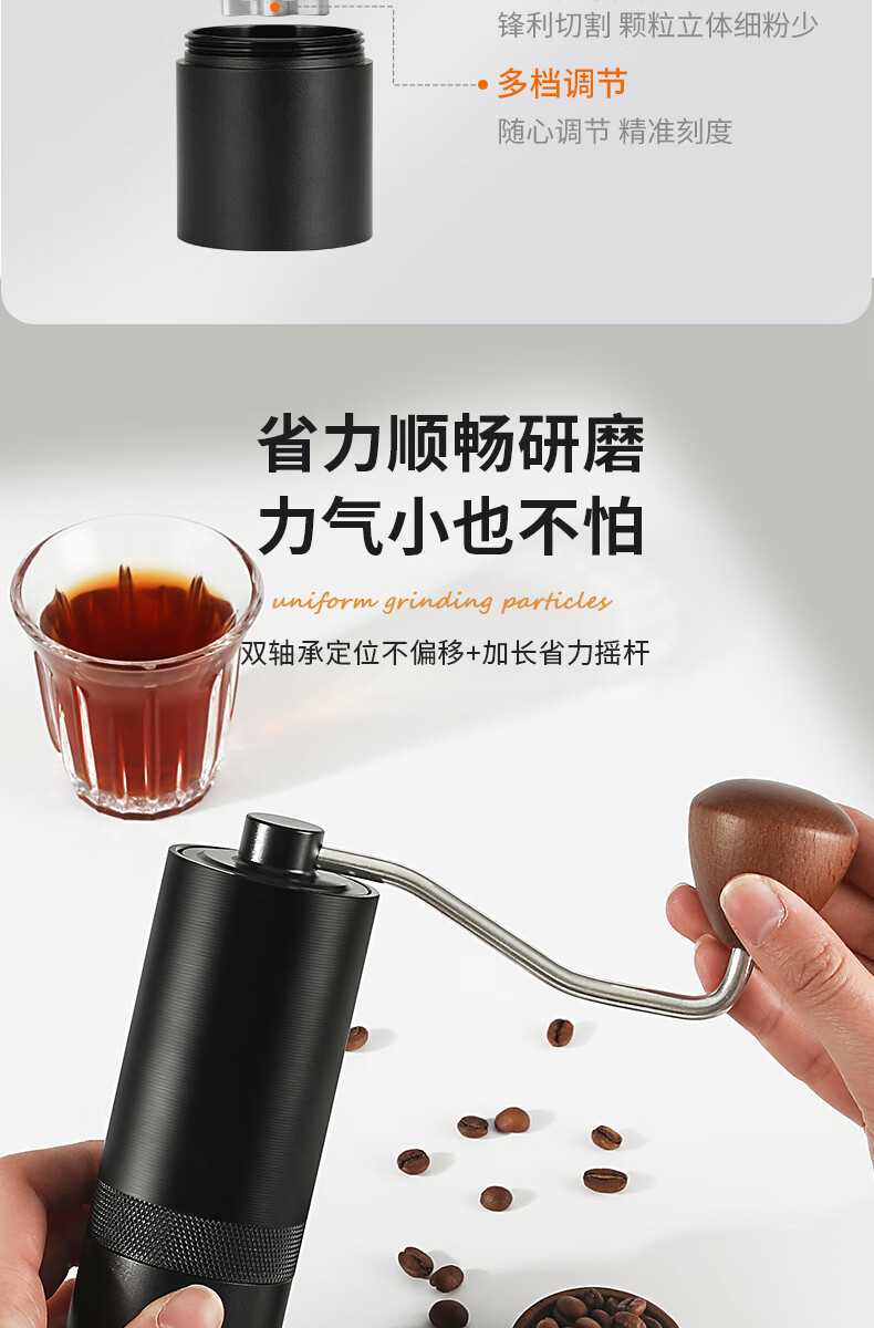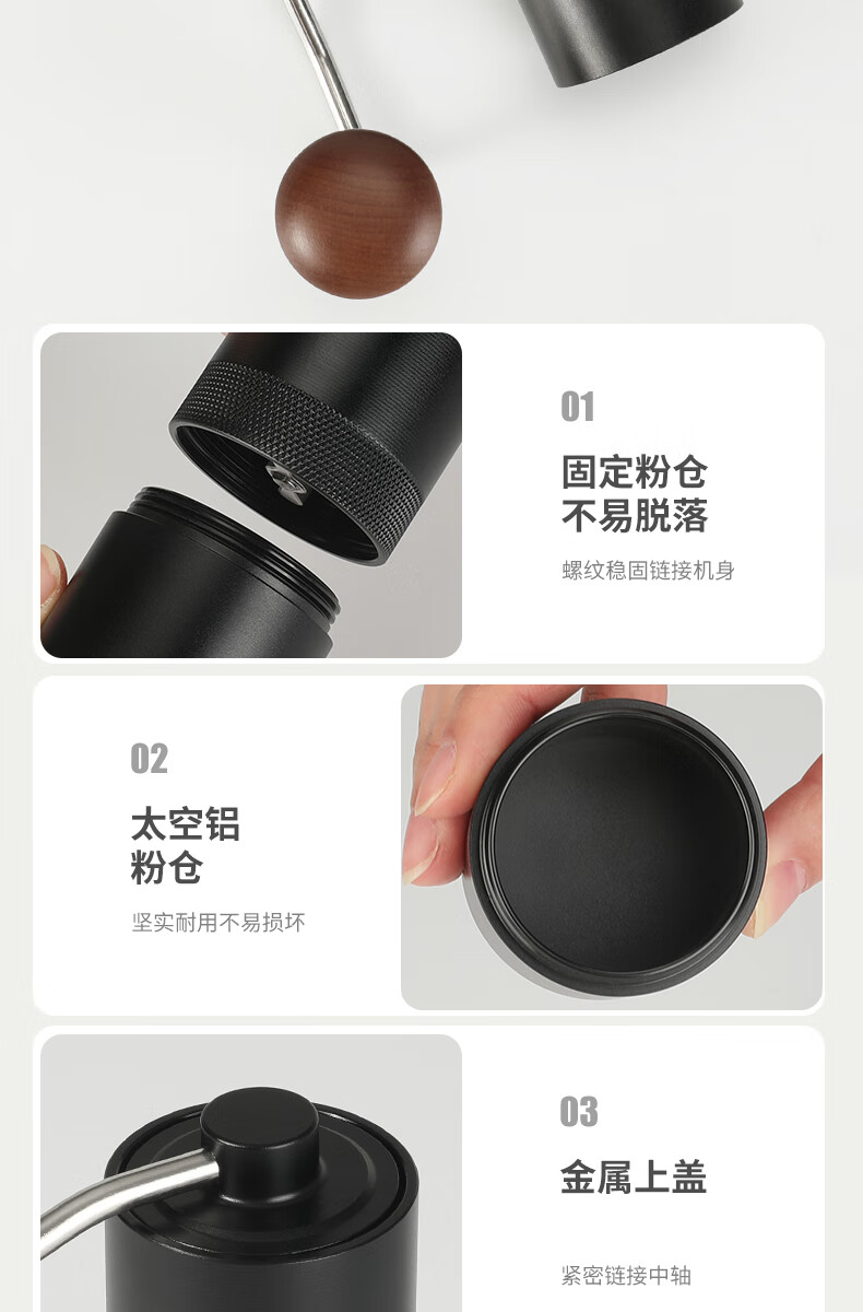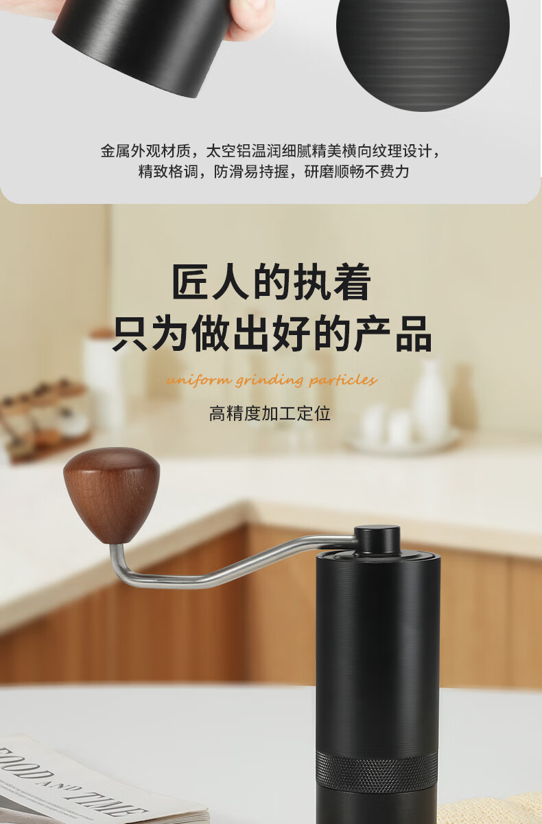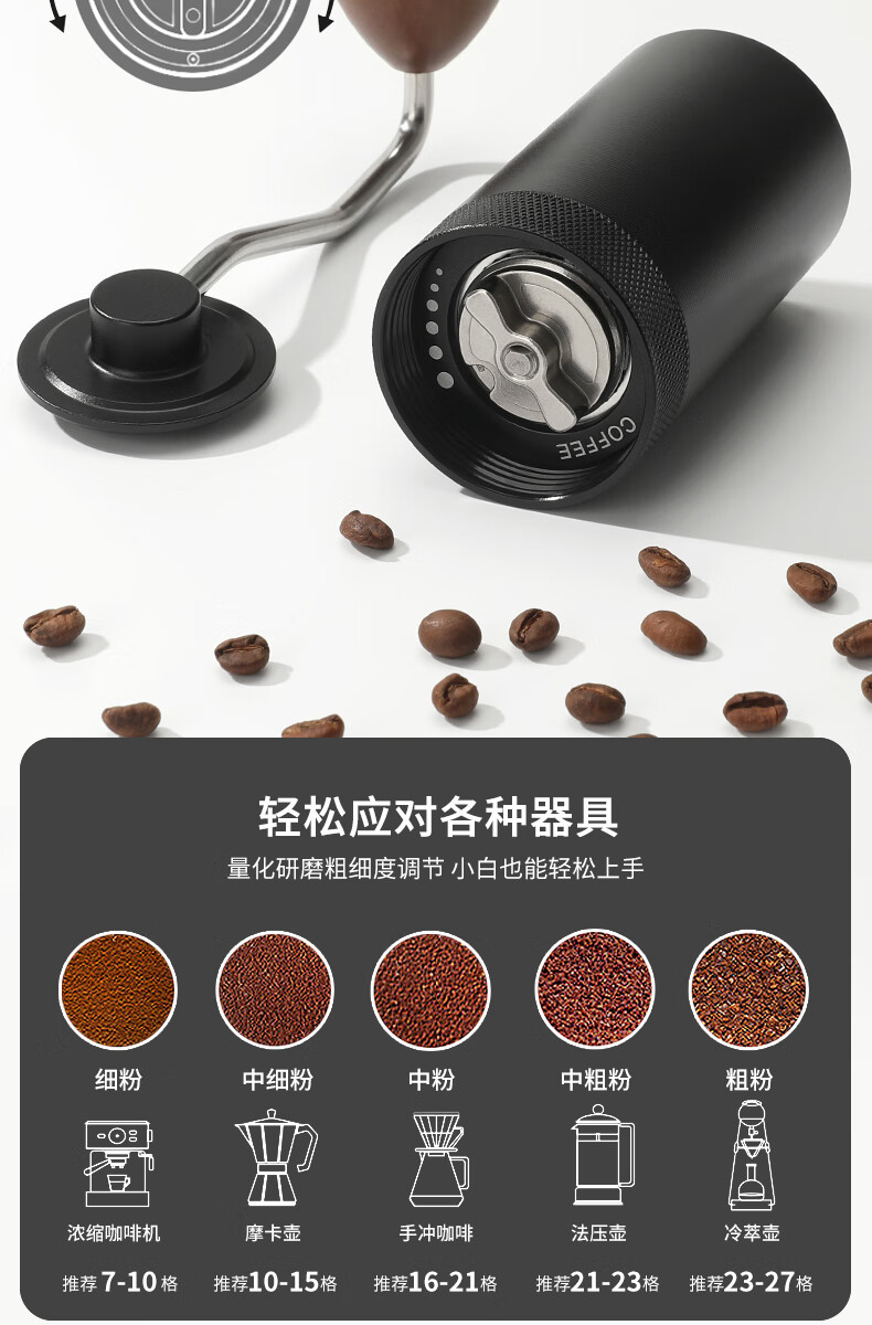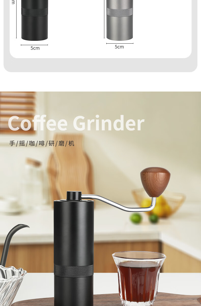 WCZ德国手摇磨豆机手磨咖啡机便携式咖啡豆研磨机咖啡磨豆器手动 【星空灰】五角CNC精钢磨芯