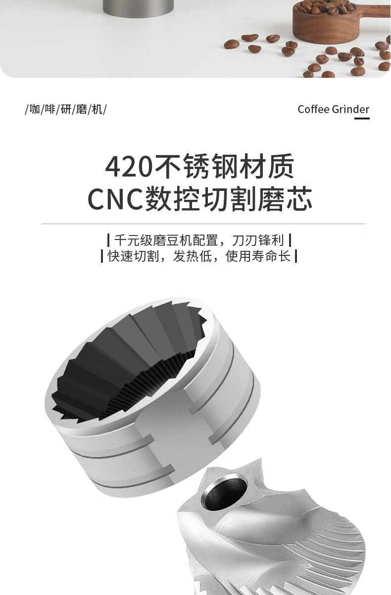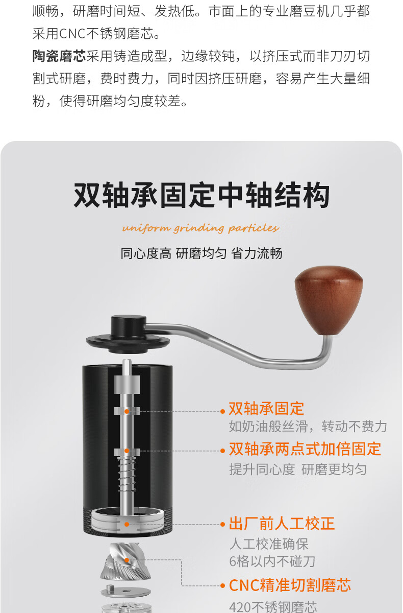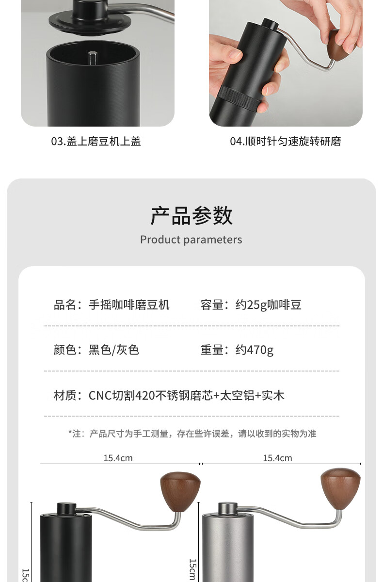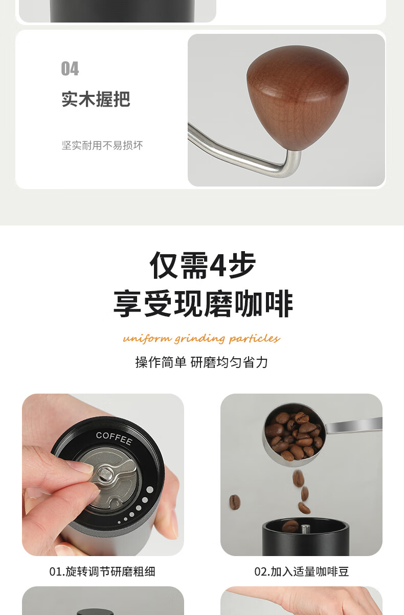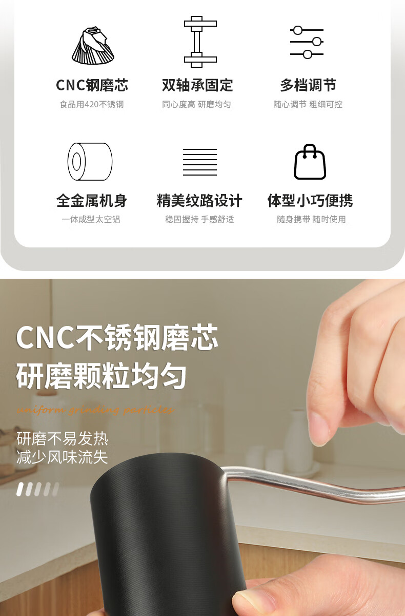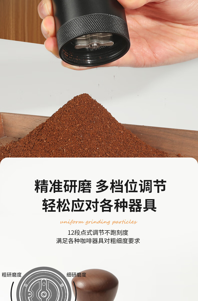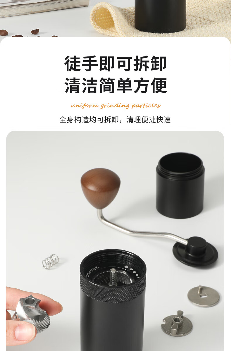 WCZ德国手摇磨豆机手磨咖啡机便携式咖啡豆研磨机咖啡磨豆器手动 【星空灰】五角CNC精钢磨芯