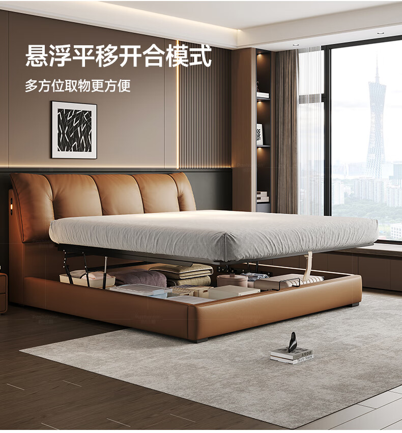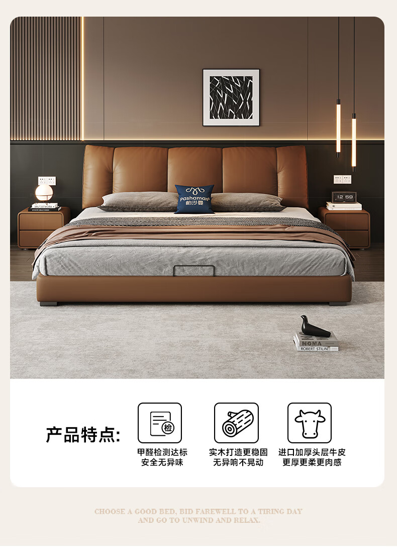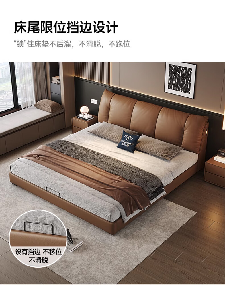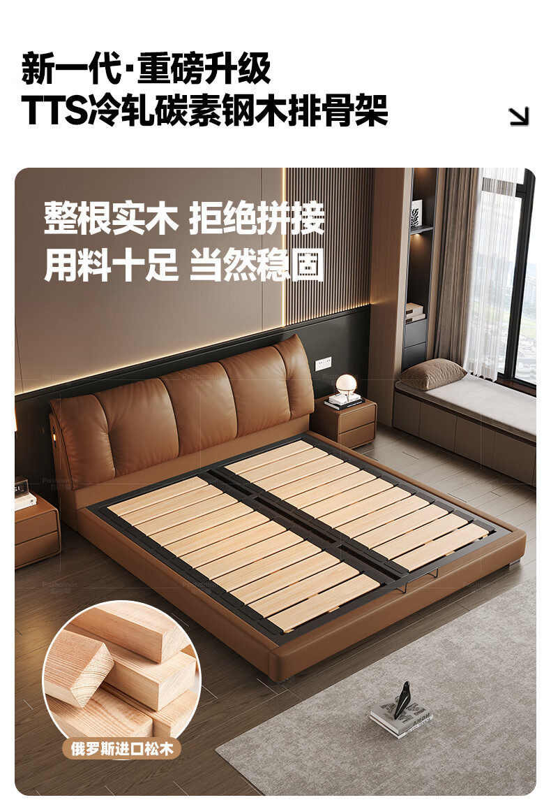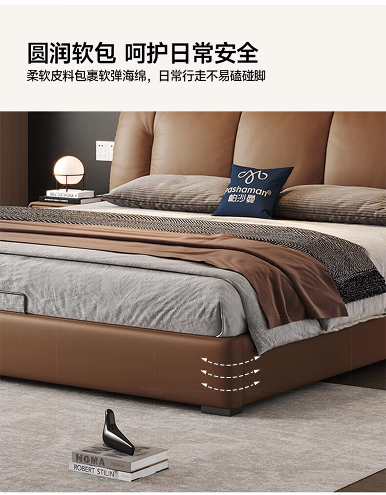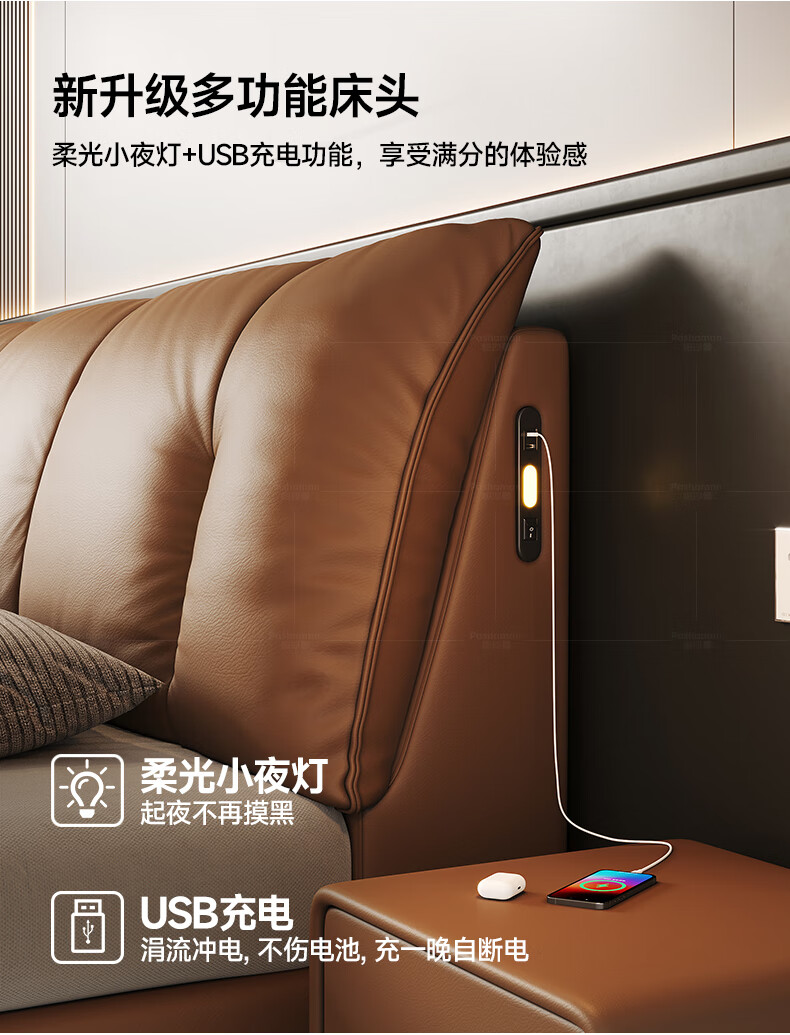 帕沙曼(pashaman)真皮床头层牛皮意式风可充电框架主卧大床双人床1.8米x2米 8004CP