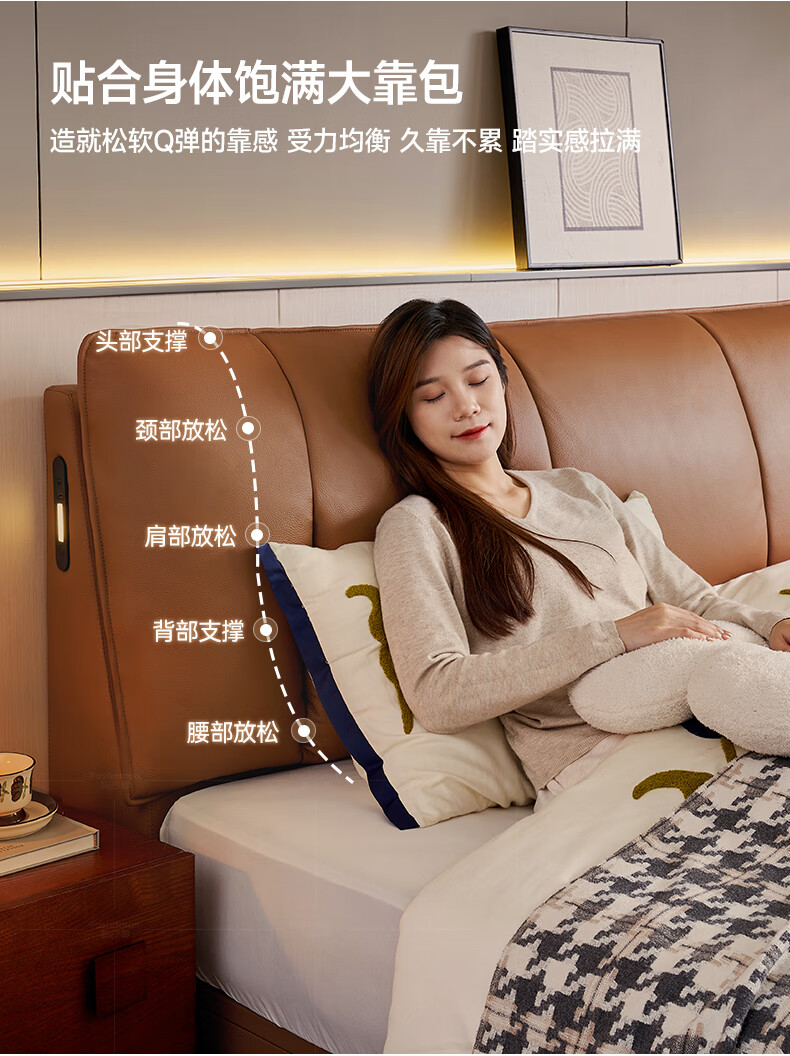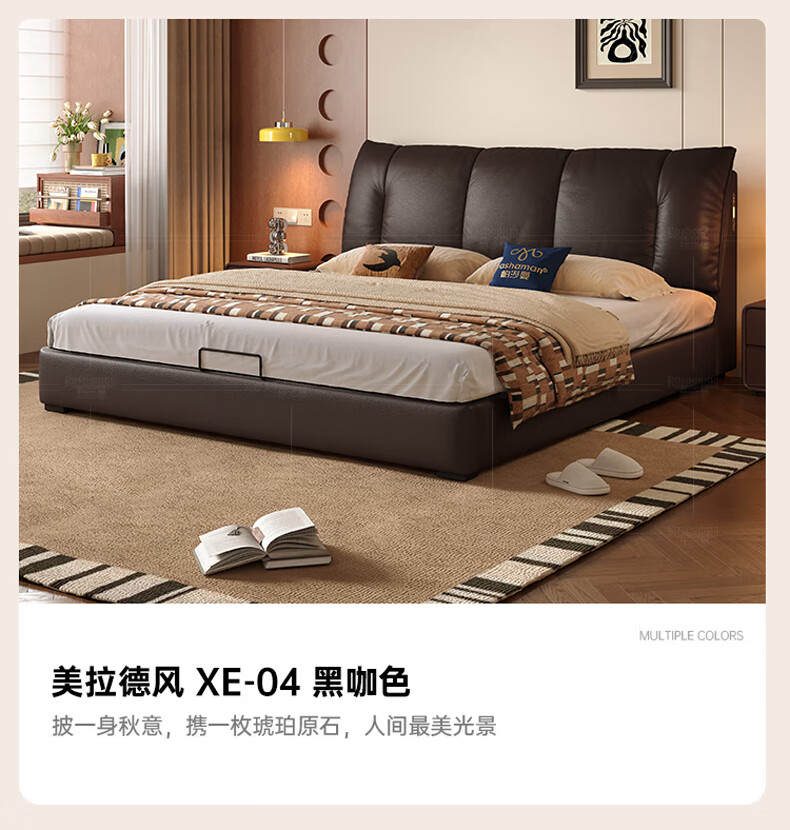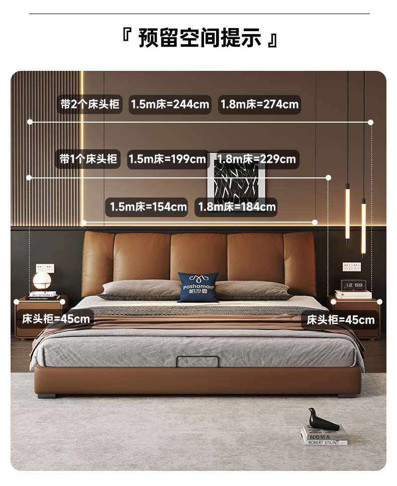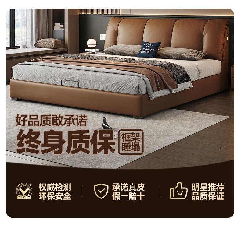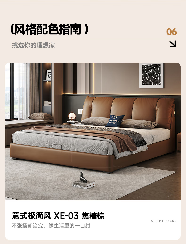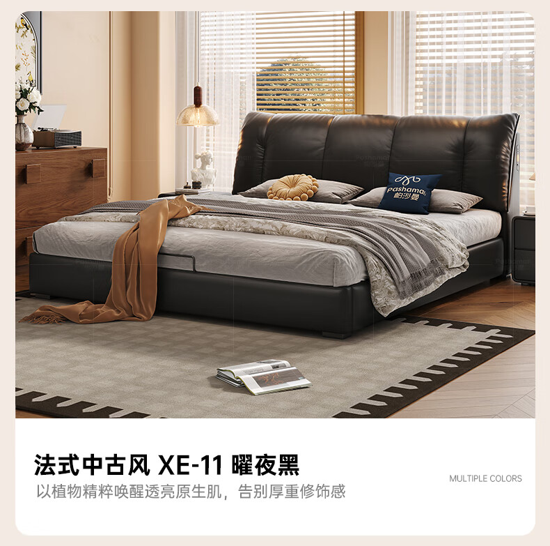 帕沙曼(pashaman)真皮床头层牛皮意式风可充电框架主卧大床双人床1.8米x2米 8004CP