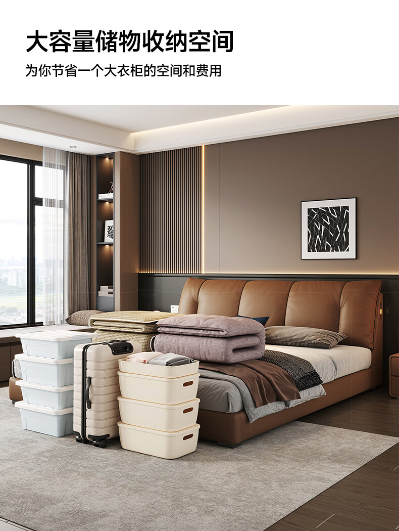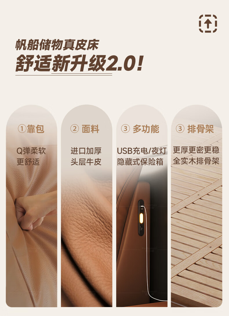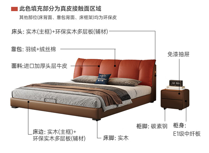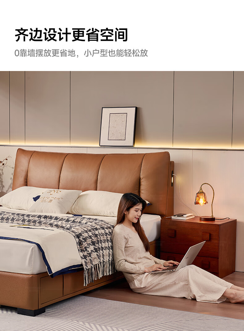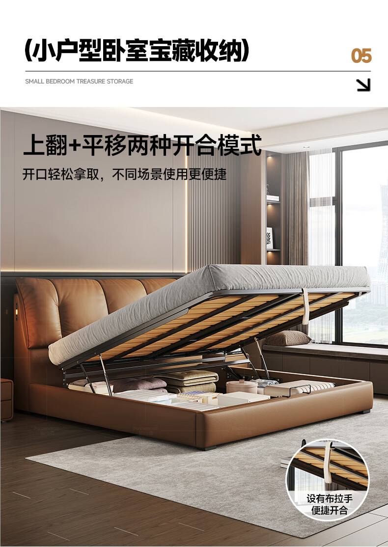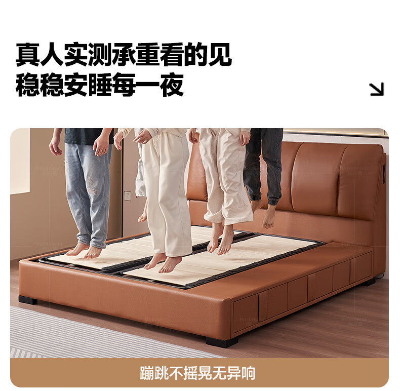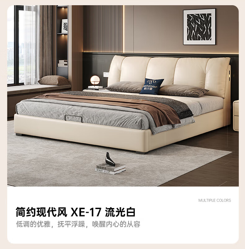 帕沙曼(pashaman)真皮床头层牛皮意式风可充电框架主卧大床双人床1.8米x2米 8004CP