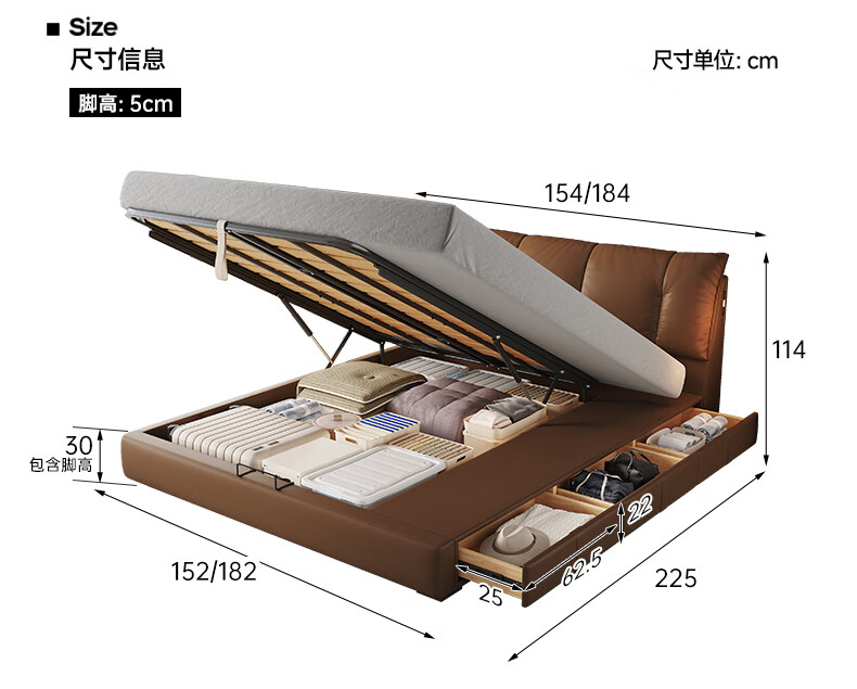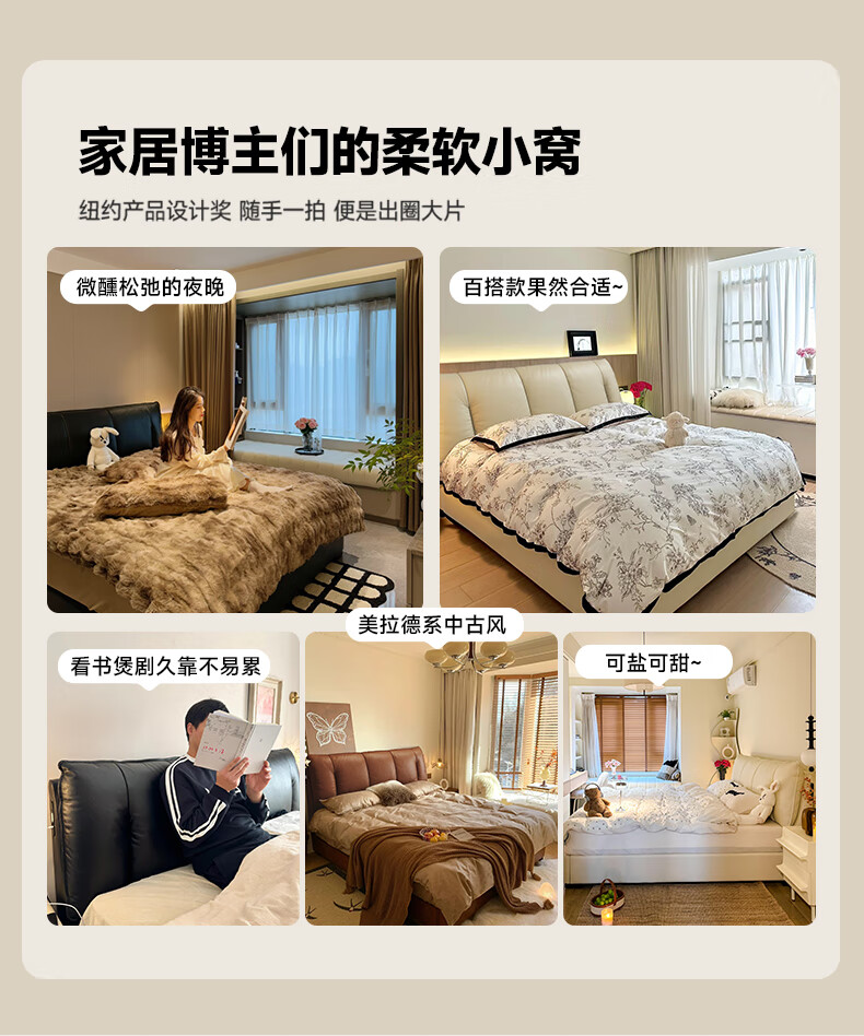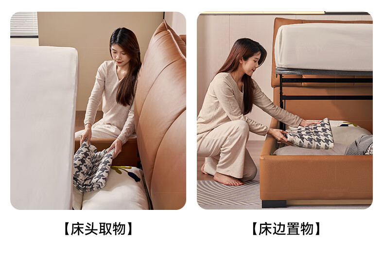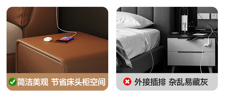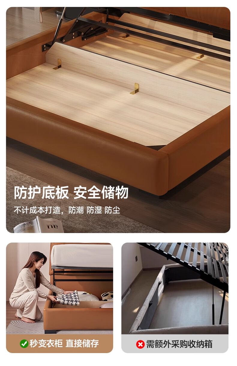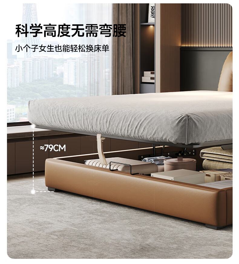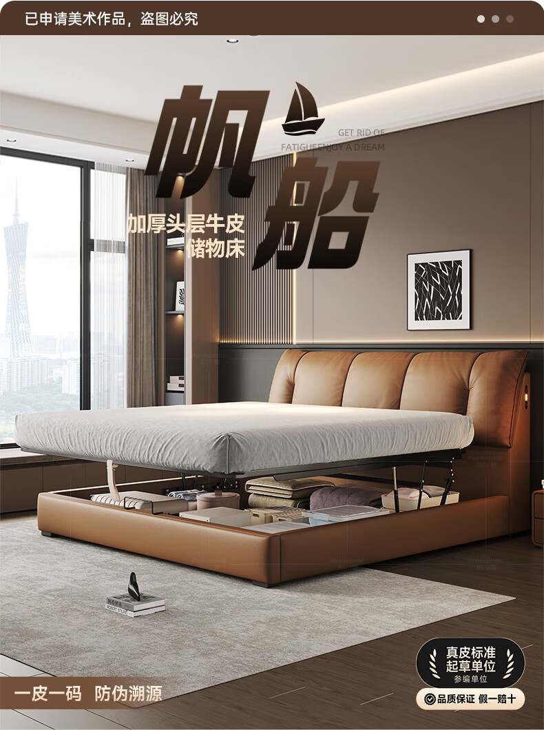 帕沙曼(pashaman)真皮床头层牛皮意式风可充电框架主卧大床双人床1.8米x2米 8004CP
