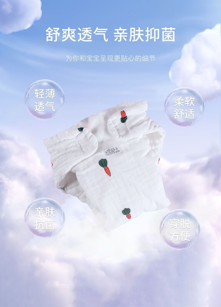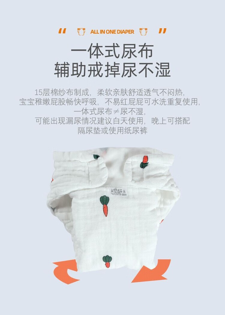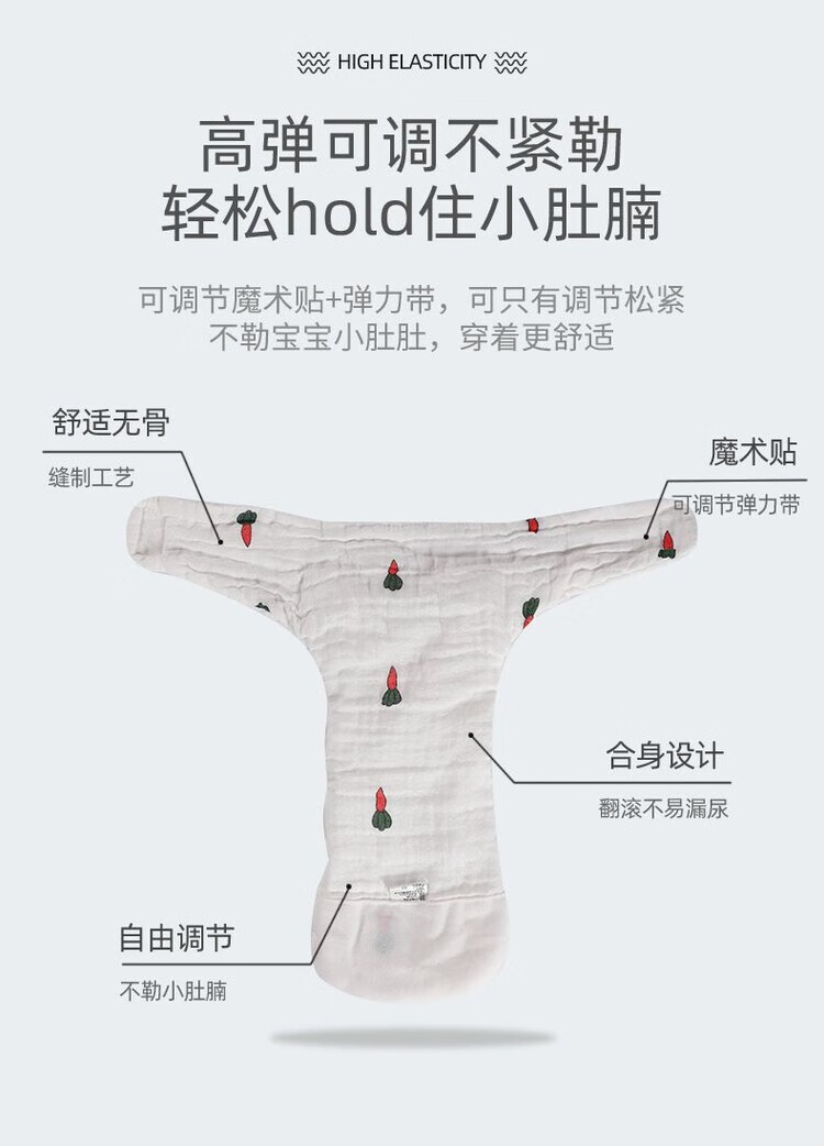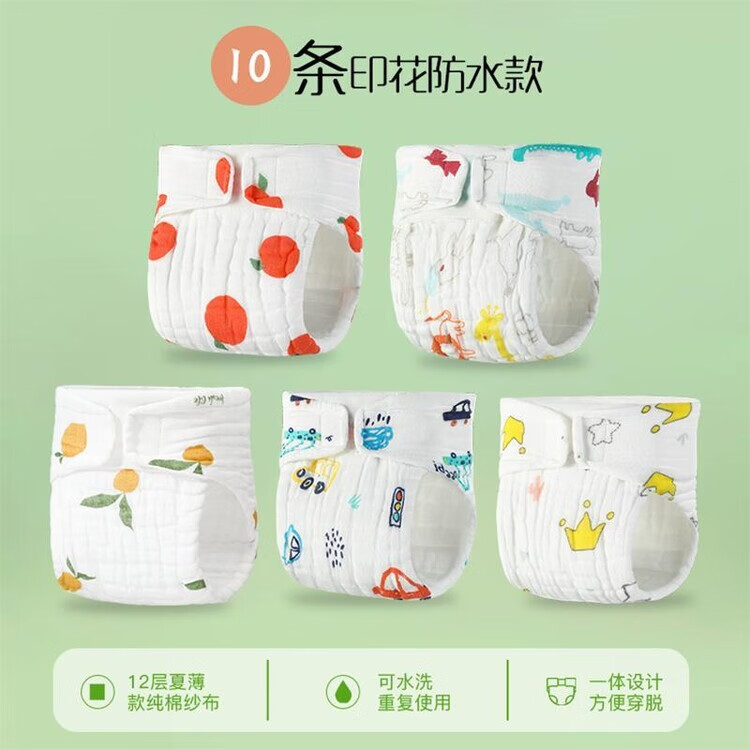 AILUKI10条新生婴儿尿布纯棉可水洗重复使用全棉纱布透气尿布裤兜尿介子 M码【体重0斤-8斤宝宝】 抗菌很透气【远离红屁屁】一体式5条