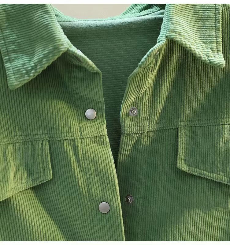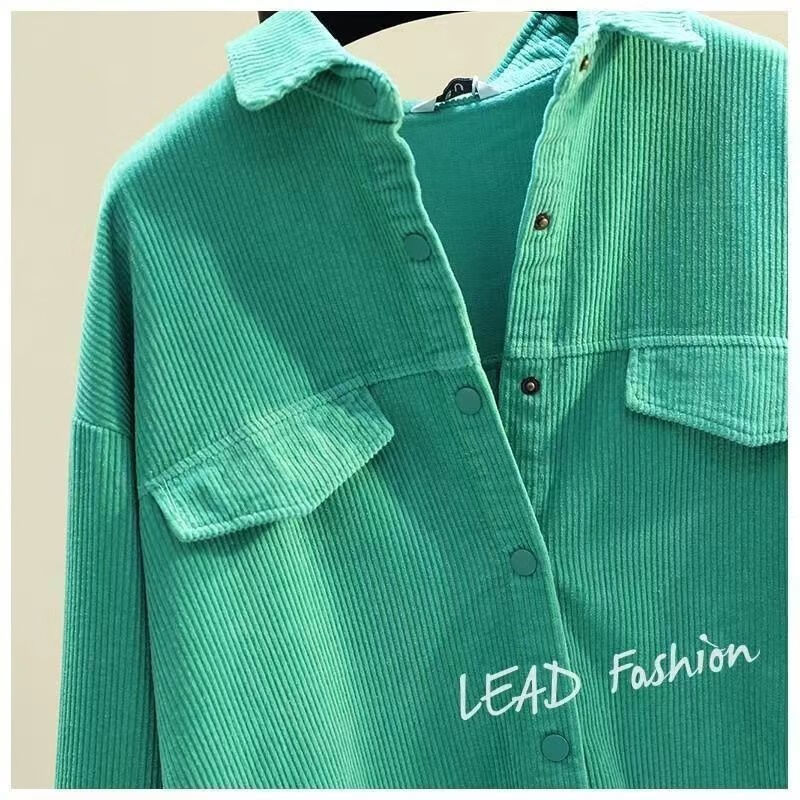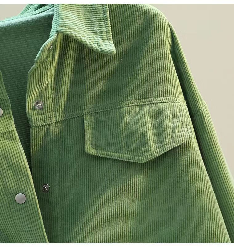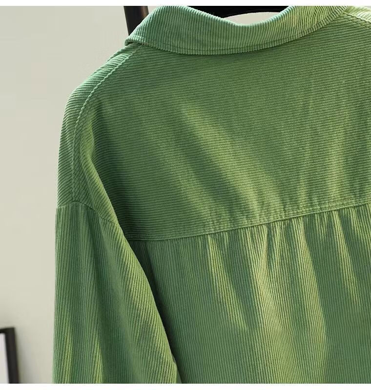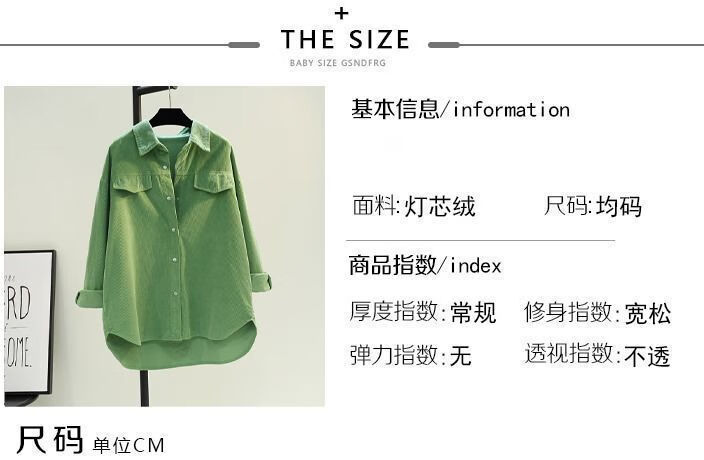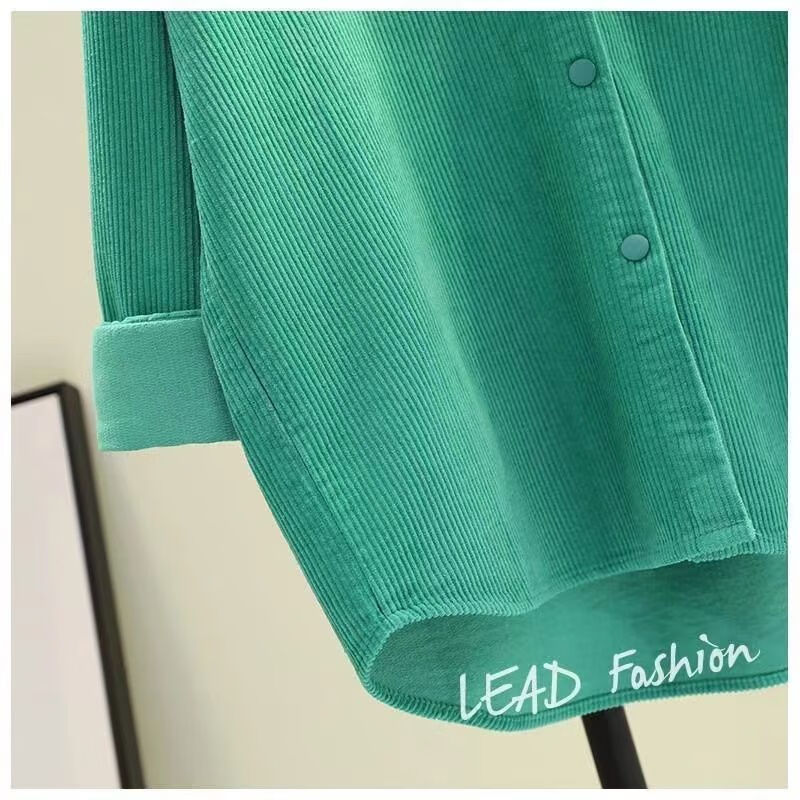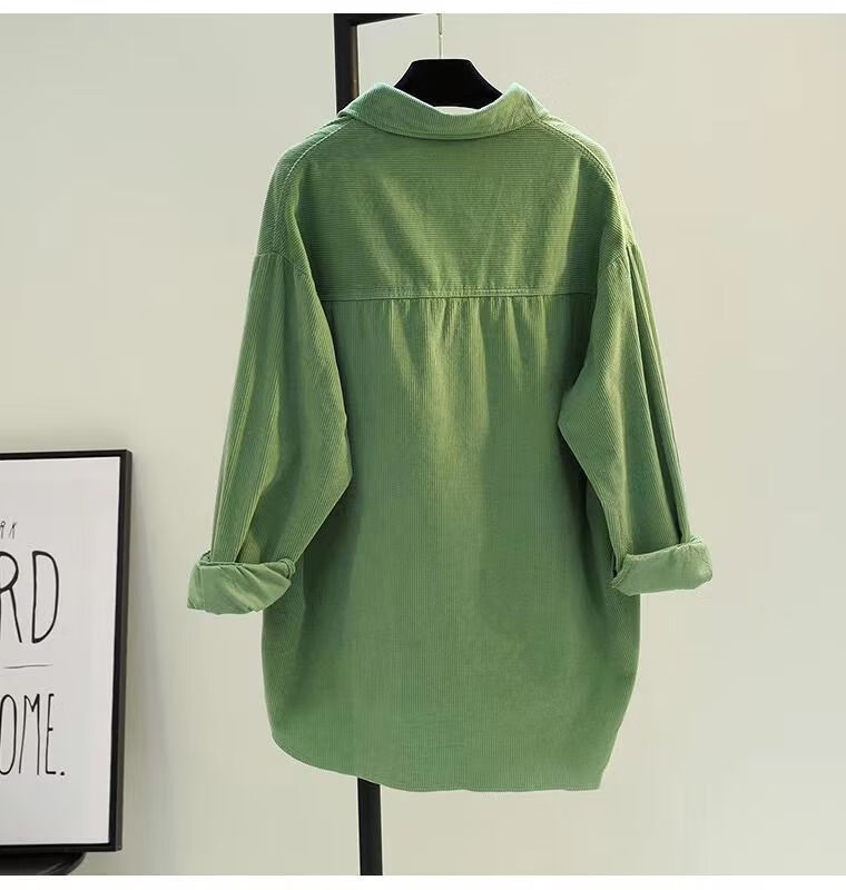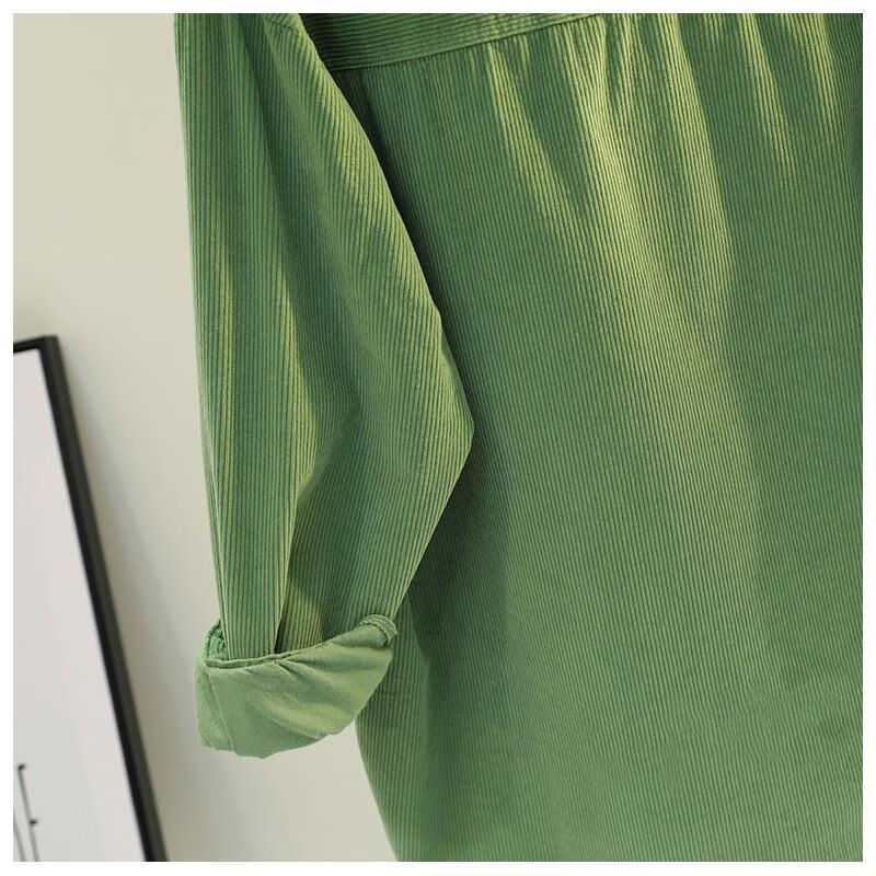 时尚中长款灯芯绒衬衫女春季新款韩版宽松衬衣外可穿300斤大胖码 牛油果绿 S 建议【80-95斤】