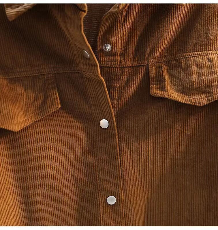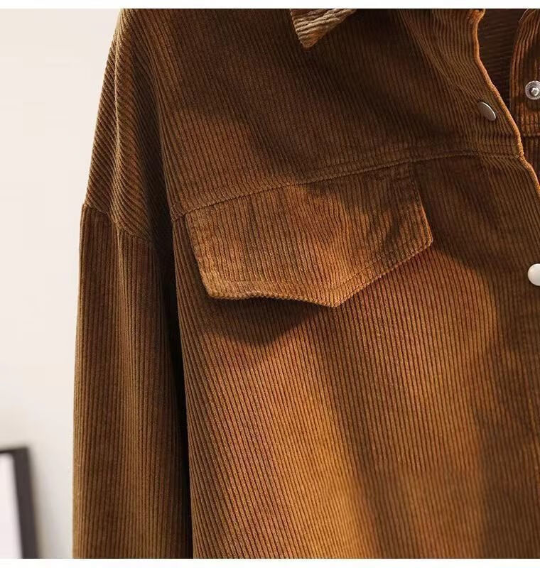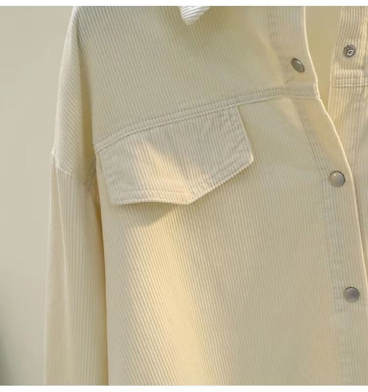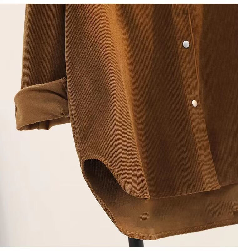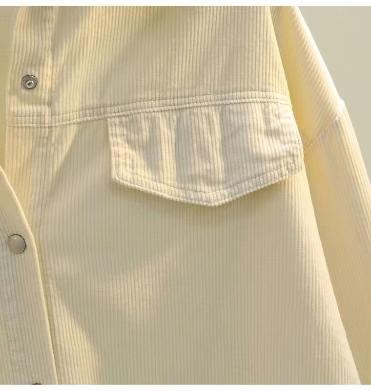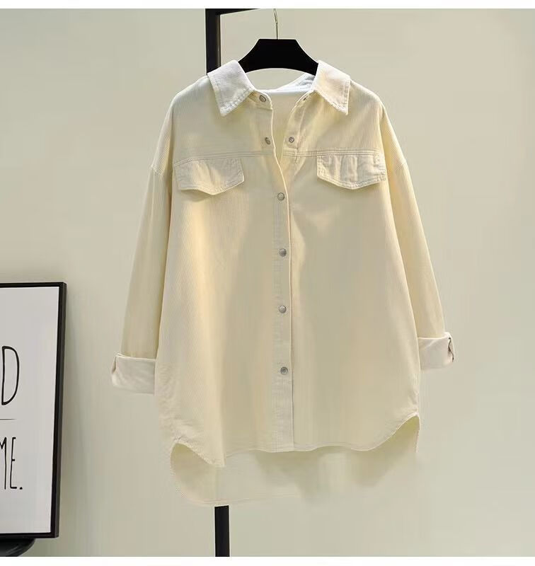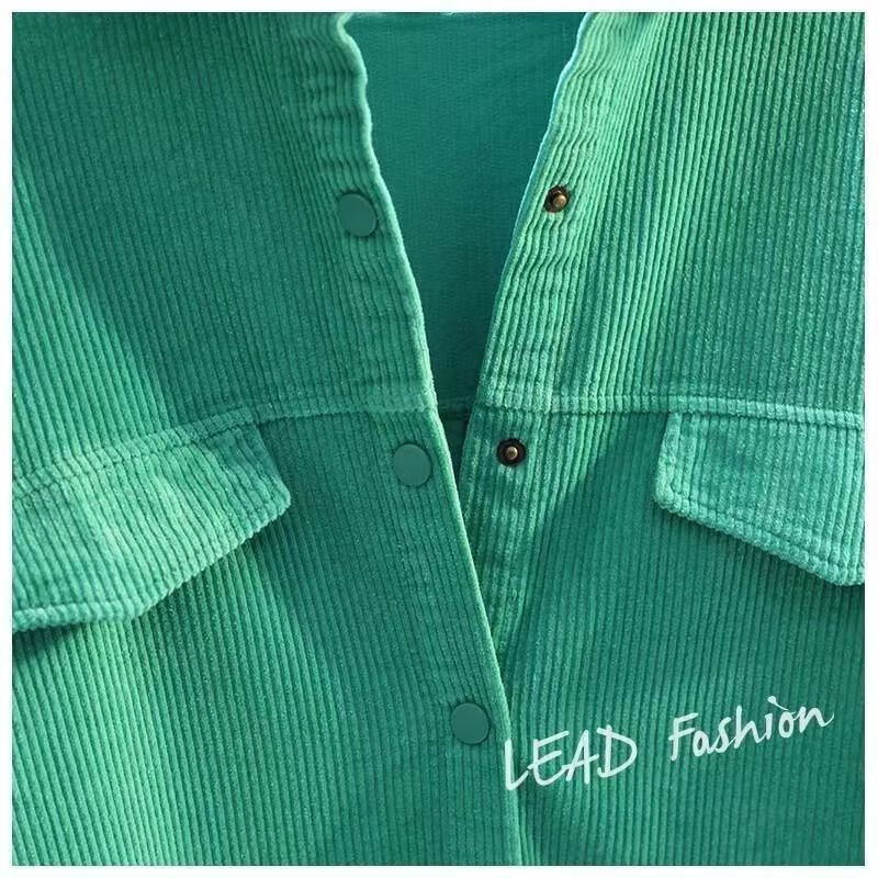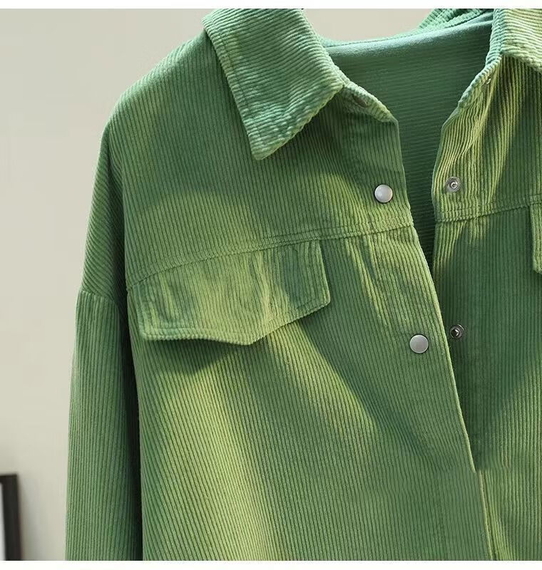 时尚中长款灯芯绒衬衫女春季新款韩版宽松衬衣外可穿300斤大胖码 牛油果绿 S 建议【80-95斤】