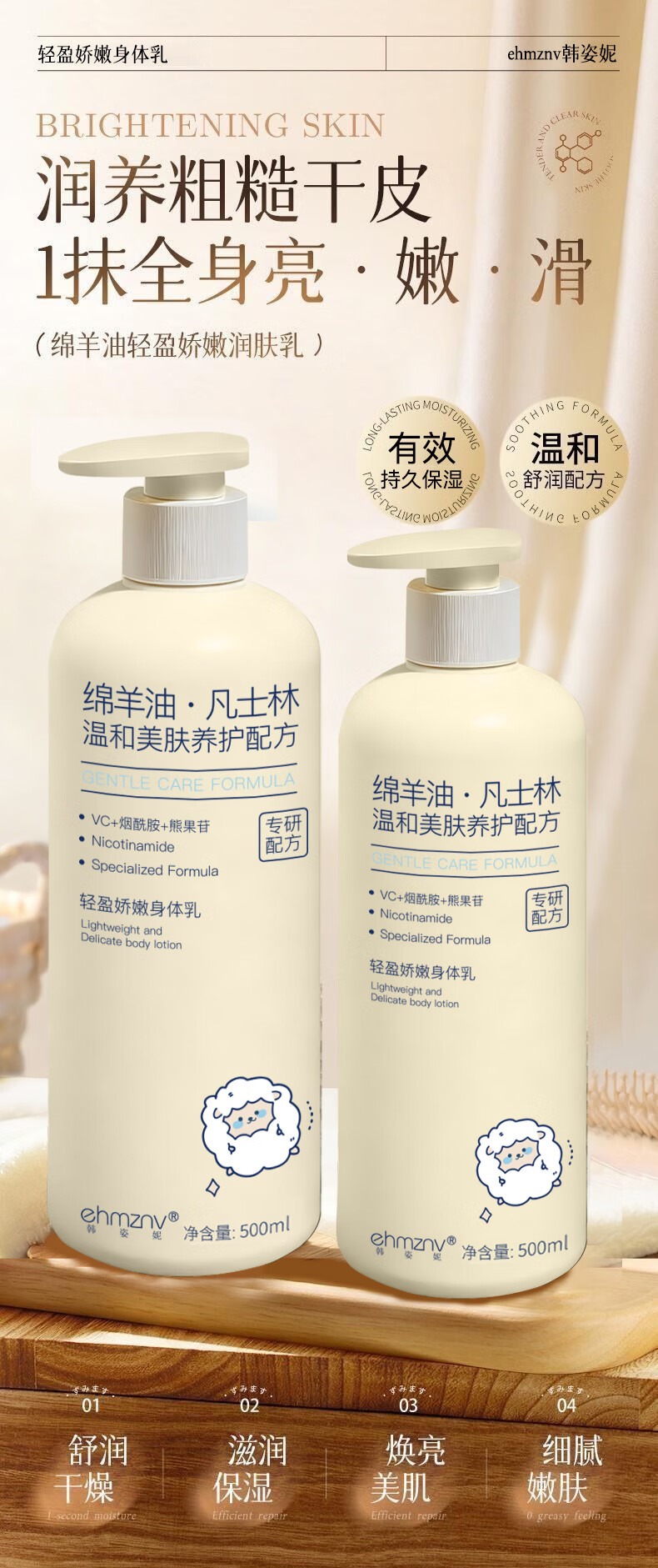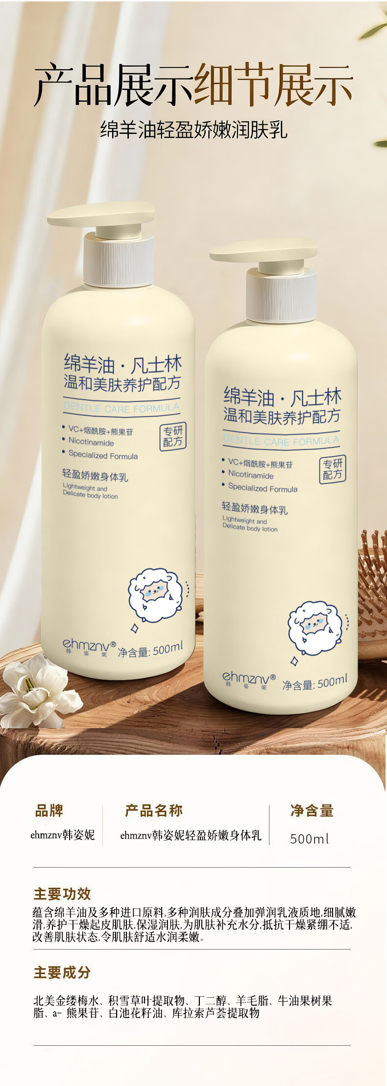 ehmznv绵羊油凡士林身体乳高保湿滋润肌肤补水不油腻防裂改善干燥粗糙 绵羊油凡士林身体乳* 500ml 1瓶