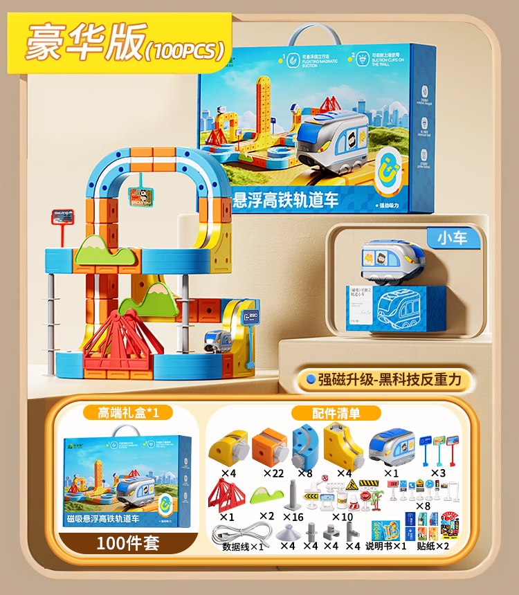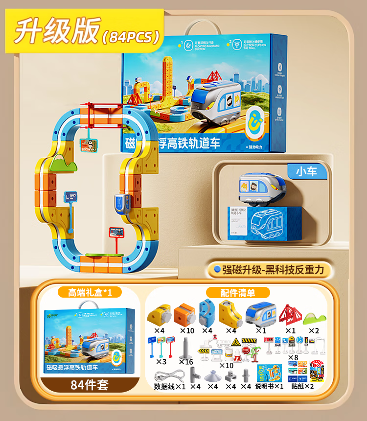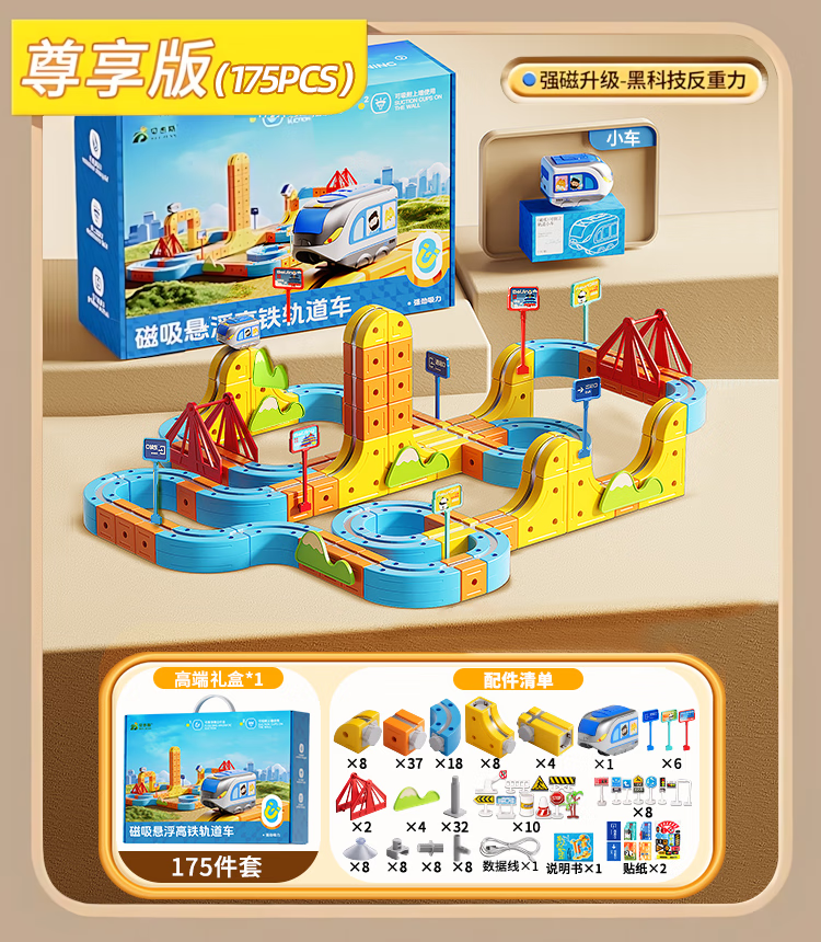 贝初众反重力魔幻磁力轨道车玩具车磁吸小火车积木儿童玩具男孩8-12高档 店长推荐【至尊版175pcs】礼盒装DIY轨道车 7-14小学生男童益智电动拼装女孩生日礼物9圣诞礼物